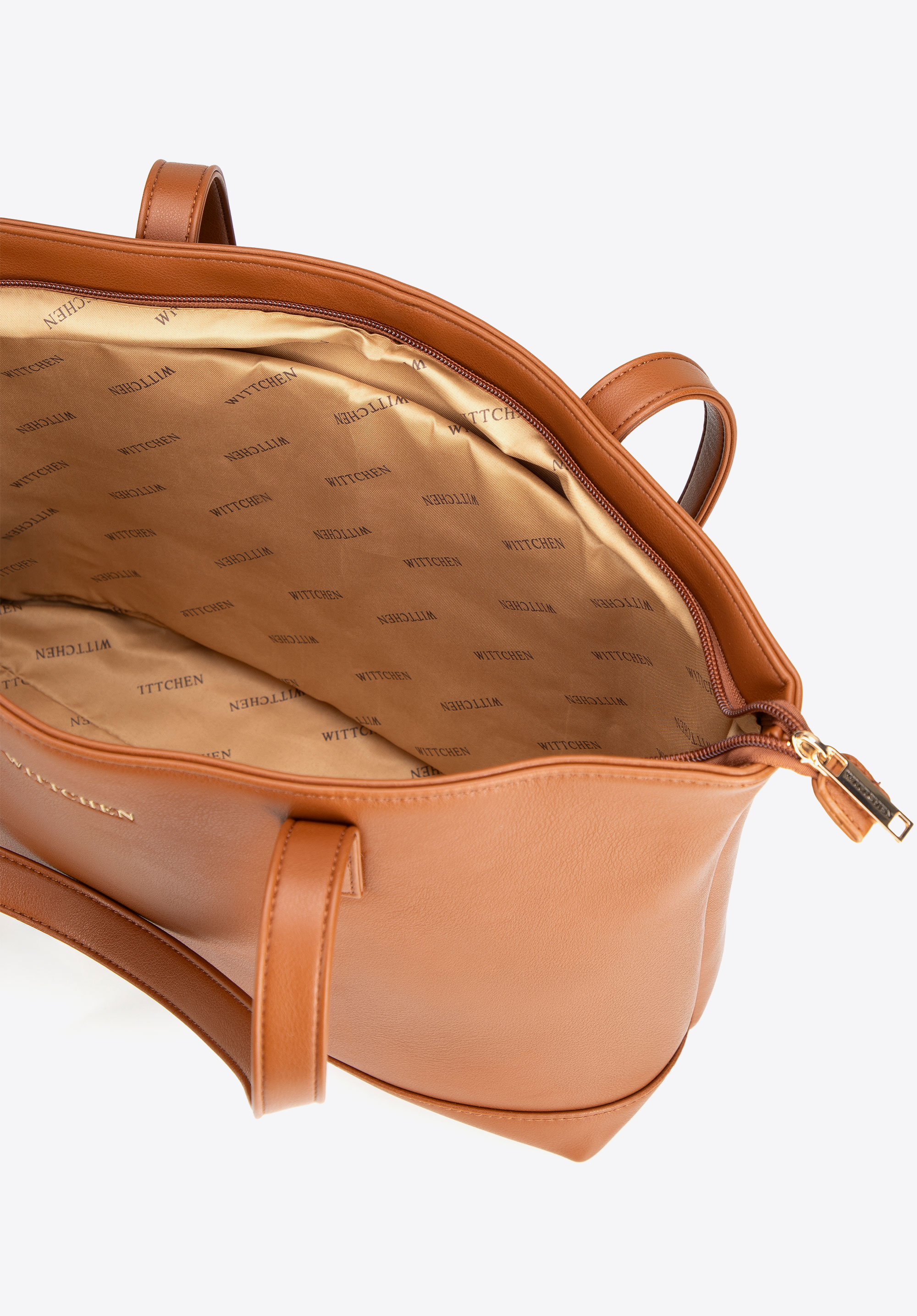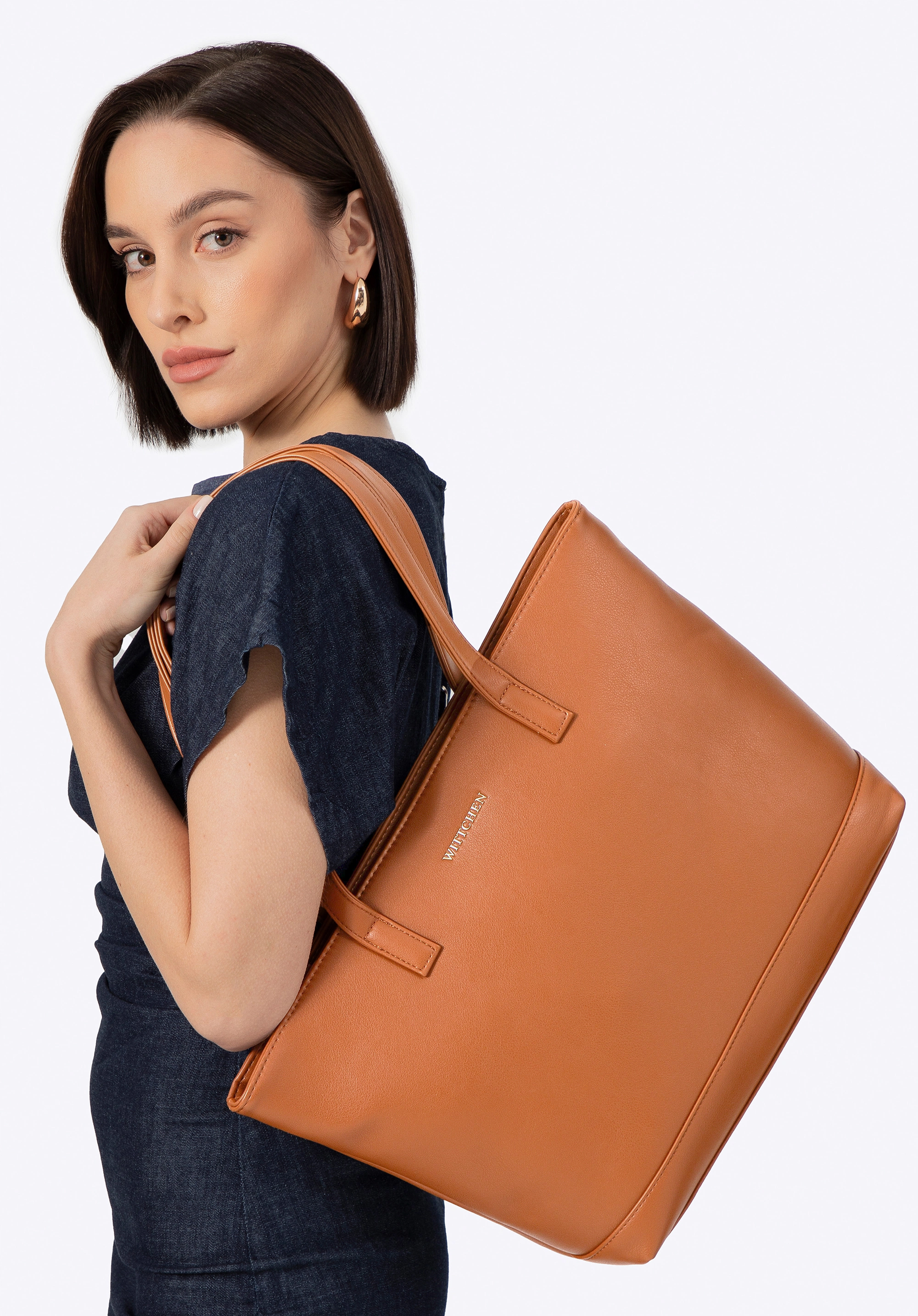 Die elegante 15,6"-Laptoptasche ist die perfekte Kombination aus Funktionalität und Stil. Sie ist aus ökologischem Leder gefertigt und zeichnet sich durch ein dezentes, aber unverwechselbares Design aus. Auf der Vorderseite befindet sich ein dezentes Herstellerlogo, das ihre Klasse und Eleganz unterstreicht. Die Tasche wird mit einem robusten Reißverschluss geschlossen, der die Sicherheit Ihrer Sachen gewährleistet. Im Inneren finden Sie ein geräumiges Fach, das Platz für einen Laptop mit einer maximalen Größe von 23 × 36 cm (15,6") bietet, sowie zwei offene Taschen, ideal für kleine Accessoires.
