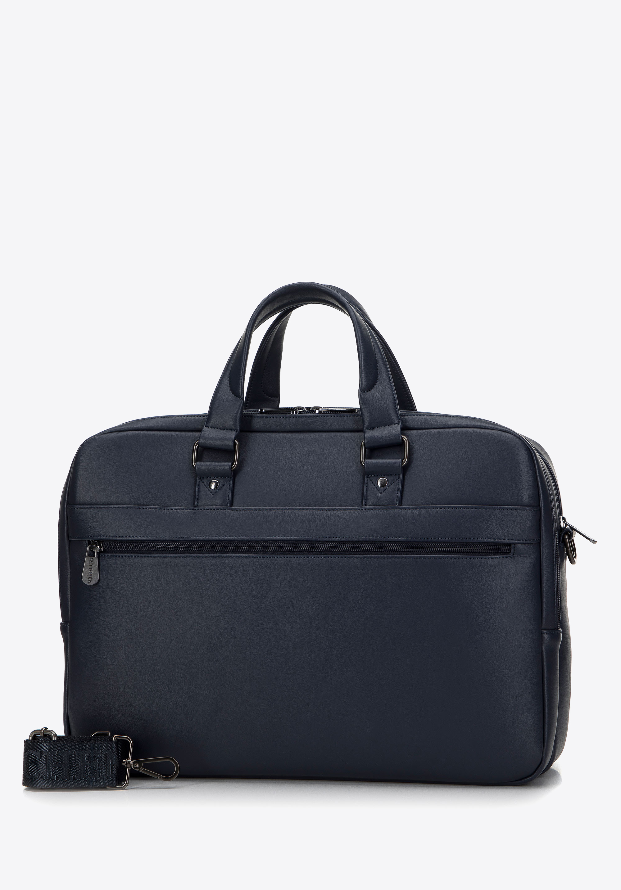 Diese große Herren-Laptoptasche ist ein praktisches und stilvolles Accessoire für jeden Mann. Es ist aus angenehm anzufassendem Kunstleder gefertigt. Dank zweier Fächer können Sie für Ordnung im Inneren sorgen.