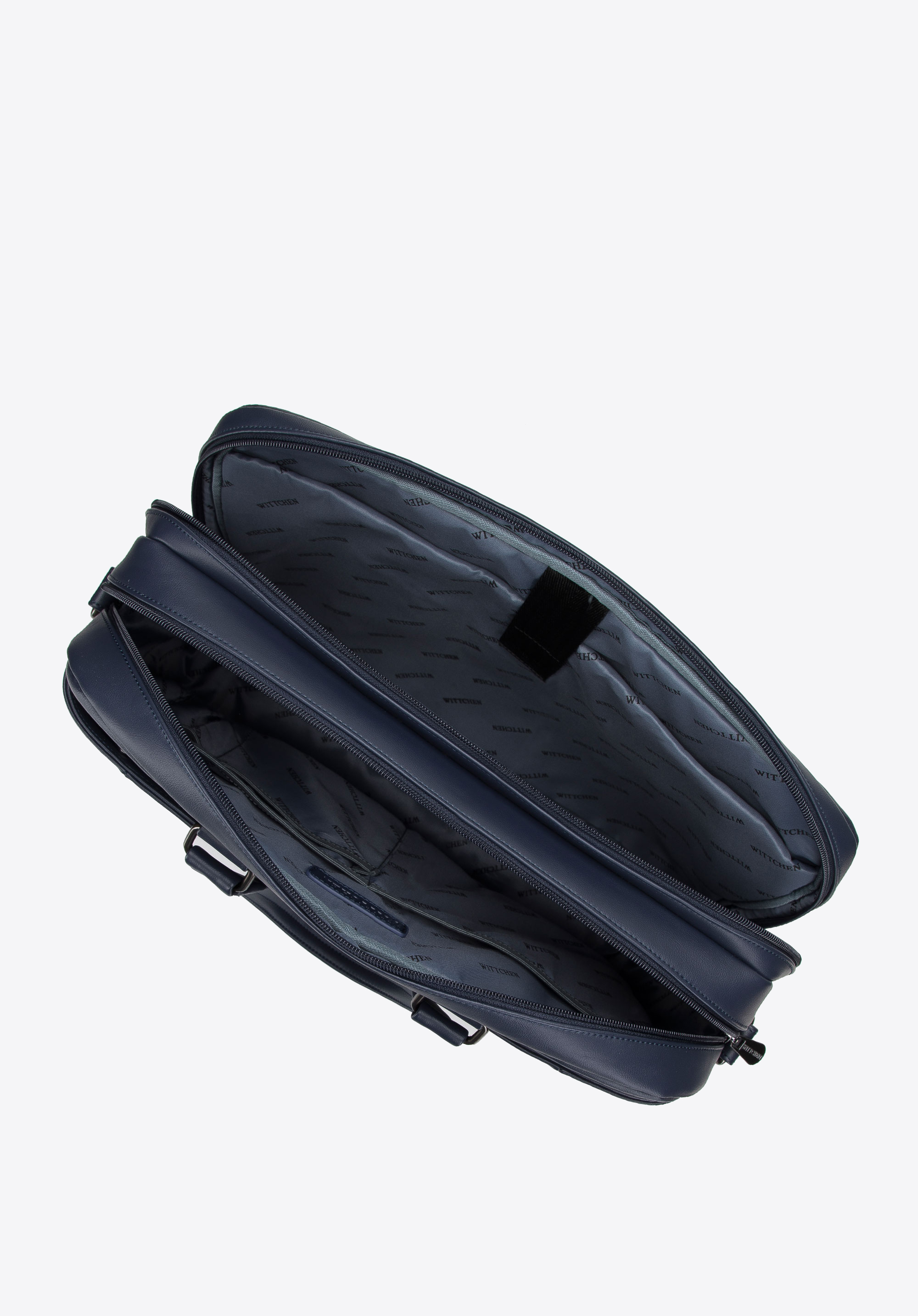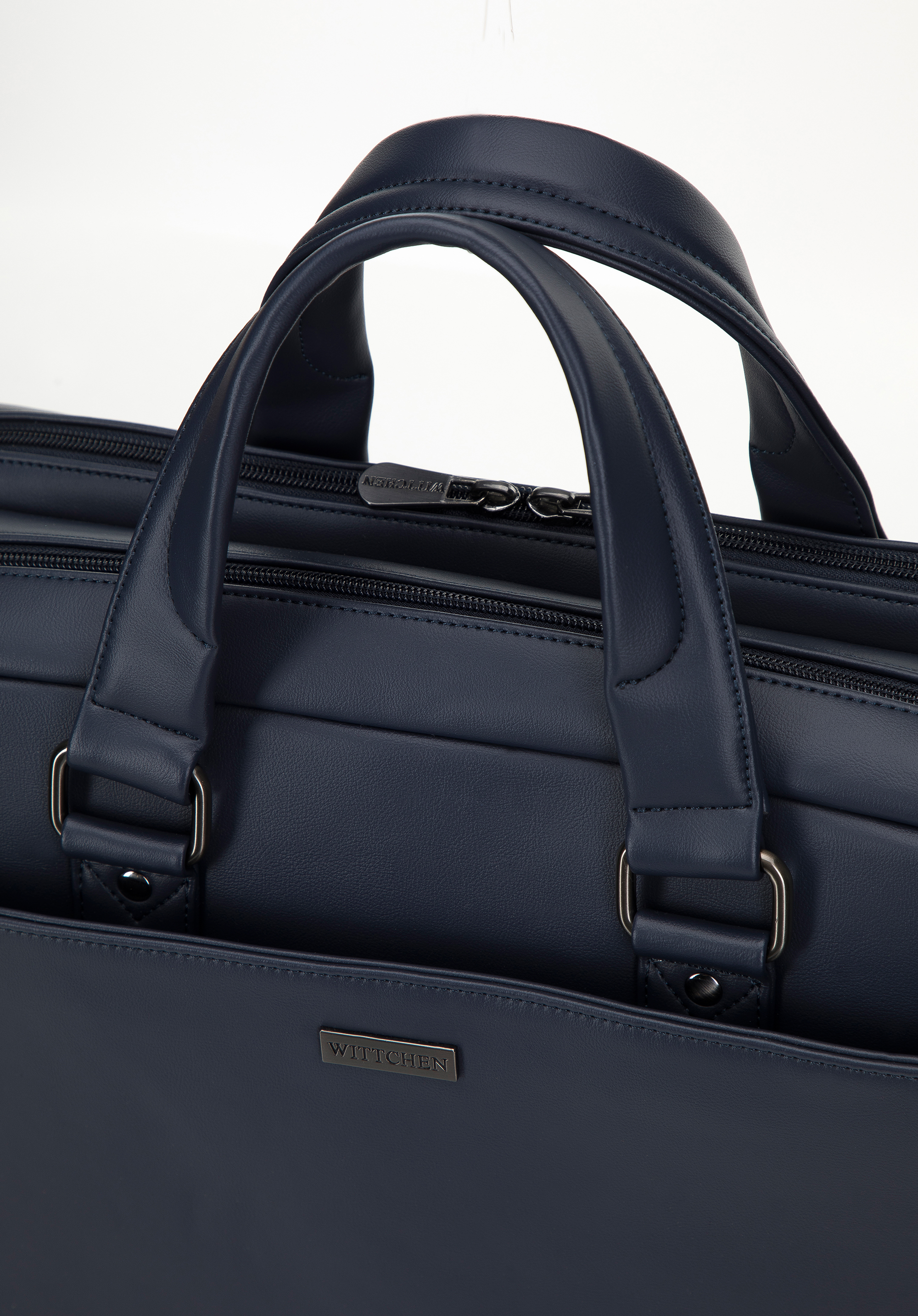 In einem der Fächer befindet sich eine gepolsterte Tasche für einen Laptop mit den maximalen Maßen 37 cm x 27 cm . Die 15,6-Zoll-Laptoptasche für Herren aus Kunstleder mit zwei Fächern ist eine gute Wahl sowohl für den Arbeitsalltag als auch für eine kurze Geschäftsreise.