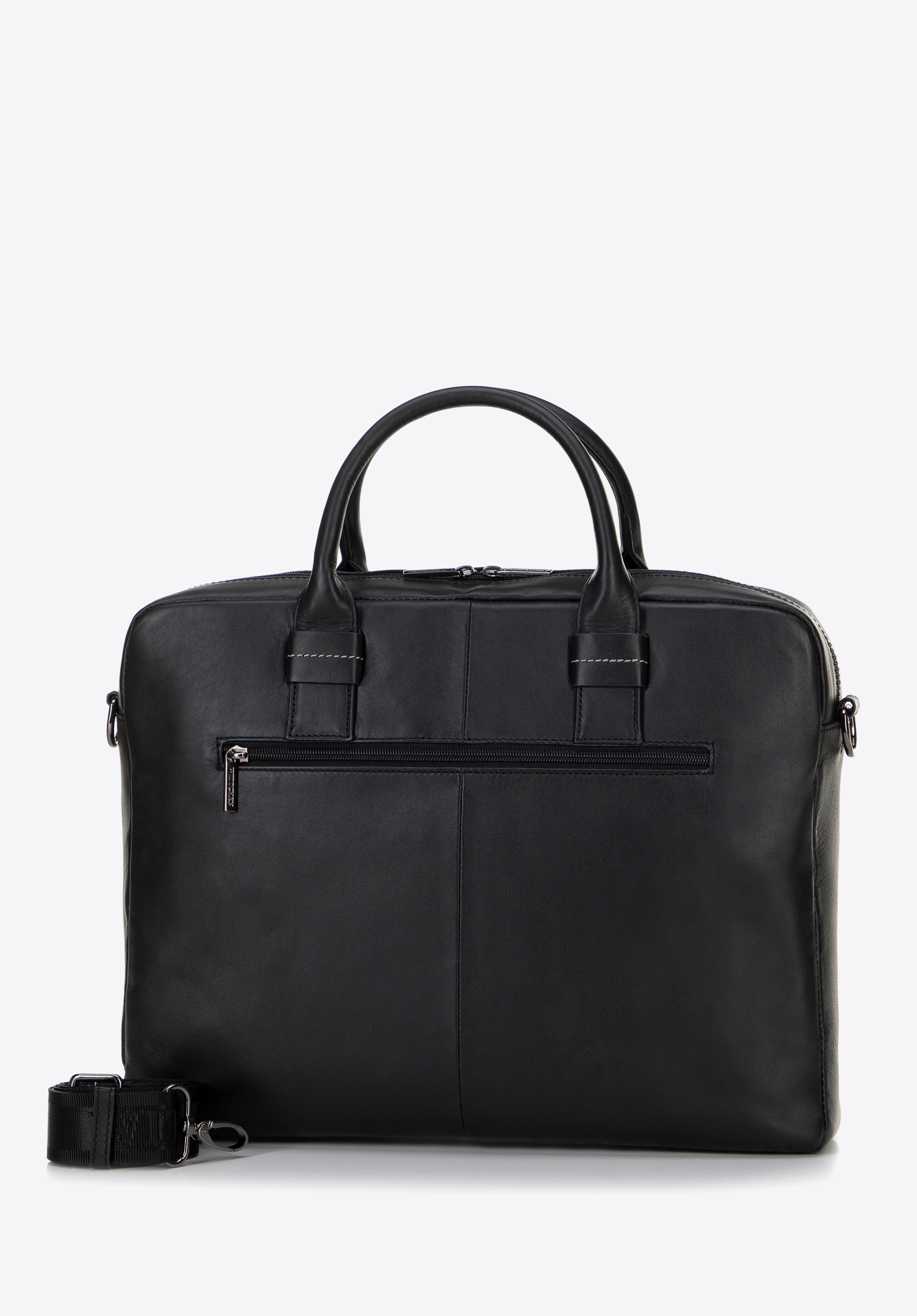 Entdecken Sie unsere 15,6-Zoll-Laptoptasche , die klassischen Stil mit moderner Funktionalität verbindet. Sie ist aus mattem Naturleder gefertigt, strahlt Professionalität aus und ergänzt jedes Business-Outfit. Sie ist für einen Laptop mit maximalen Abmessungen von 26 × 38 cm ausgelegt und verfügt über bequeme Griffe und einen abnehmbaren, verstellbaren Riemen mit dem Logo der Marke, sodass Sie sie bequem in der Hand oder über der Schulter tragen können.