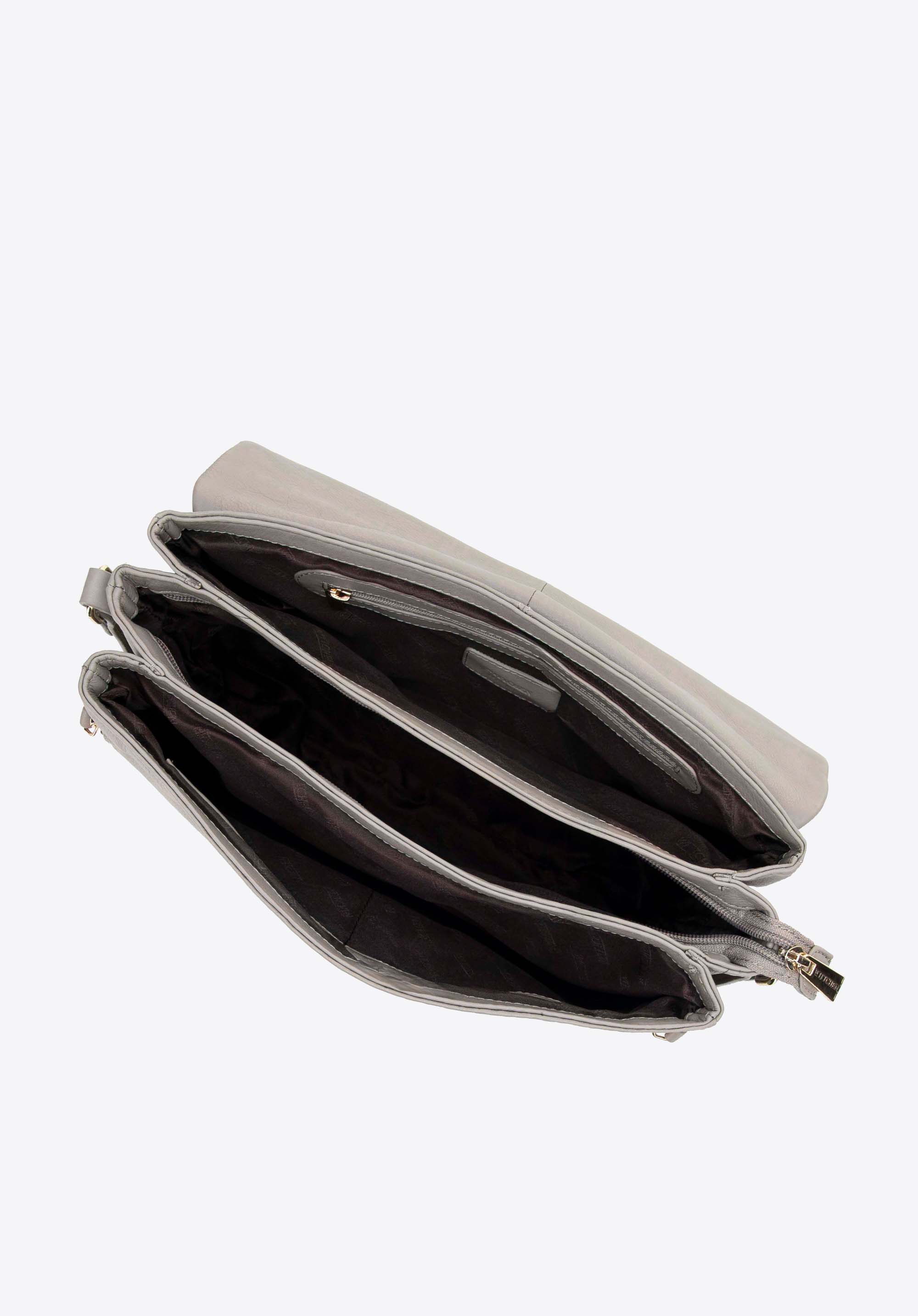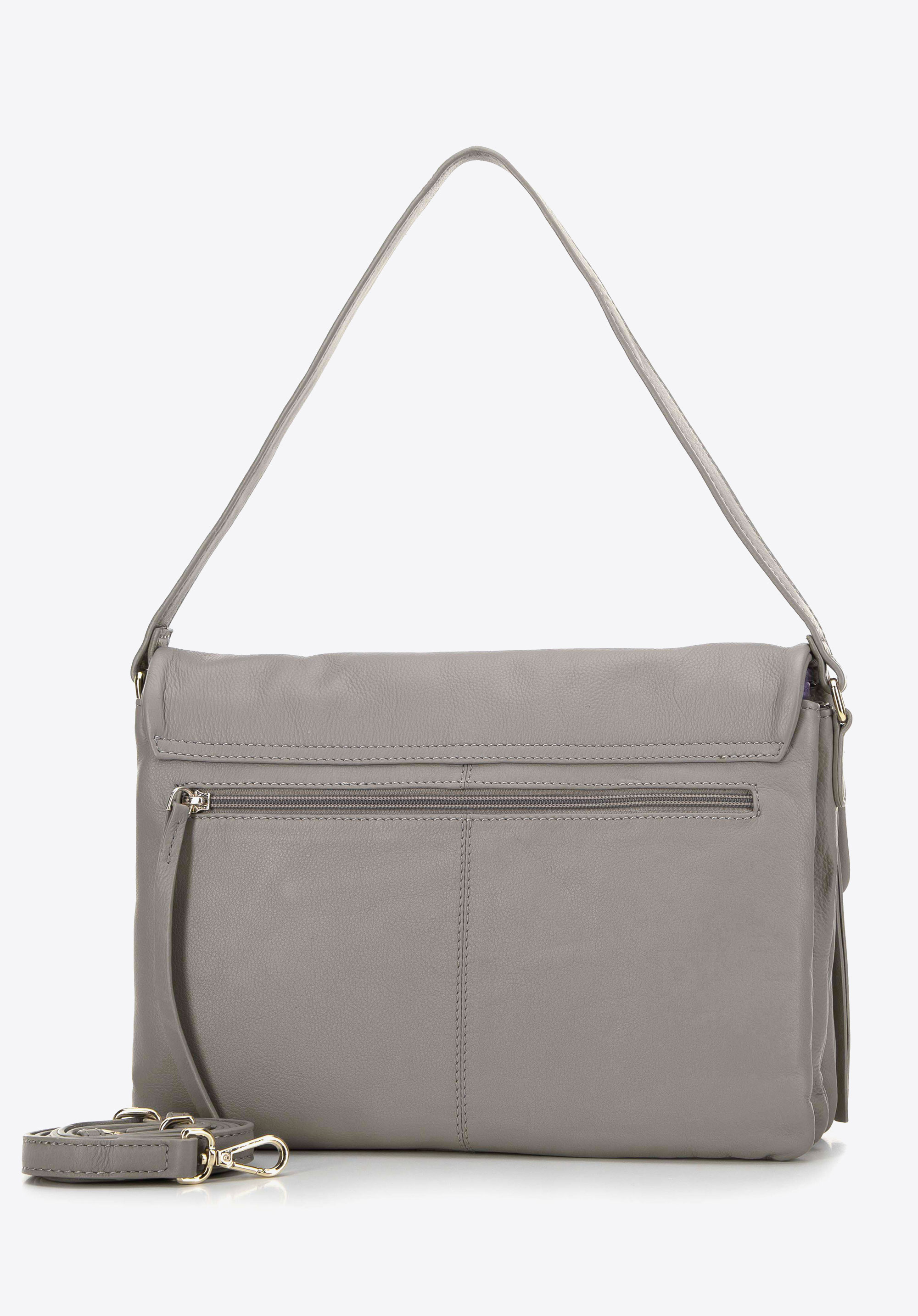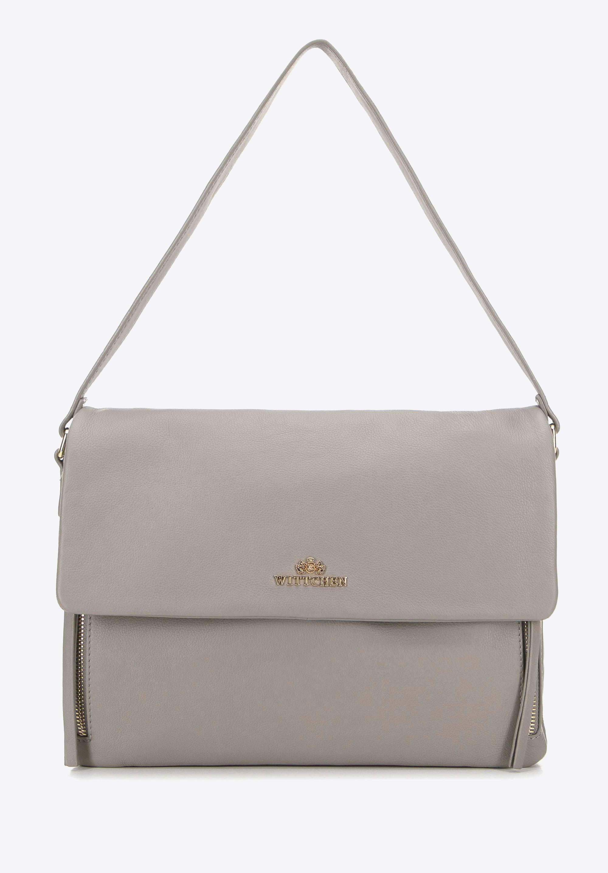 Die elegante Lederhandtasche ist eine Kombination aus Stil und Komfort! Dank des abnehmbaren, verstellbaren Riemens können Sie sie als Brieftasche oder - dank des Henkels - in der Hand oder über der Schulter tragen. Sie besticht durch ihr geräumiges Innenleben mit drei separaten Fächern für eine perfekte Organisation Ihrer Habseligkeiten. Außerdem verleihen die dekorativen Reißverschlüsse mit den Anhängern der Tasche Charakter und unterstreichen ihr modernes Design. Ideal für den Alltag, aber auch für formelle Anlässe geeignet.