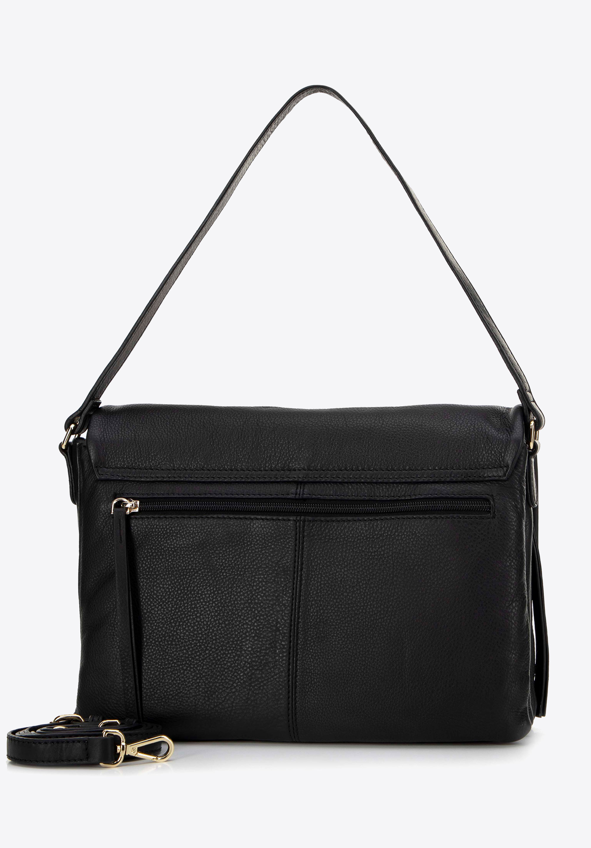 Die elegante Lederhandtasche ist eine Kombination aus Stil und Komfort! Dank des abnehmbaren, verstellbaren Riemens können Sie sie als Brieftasche oder - dank des Henkels - in der Hand oder über der Schulter tragen. Sie besticht durch ihr geräumiges Innenleben mit drei separaten Fächern für eine perfekte Organisation Ihrer Habseligkeiten. Außerdem verleihen die dekorativen Reißverschlüsse mit den Anhängern der Tasche Charakter und unterstreichen ihr modernes Design. Ideal für den Alltag, aber auch für formelle Anlässe geeignet.