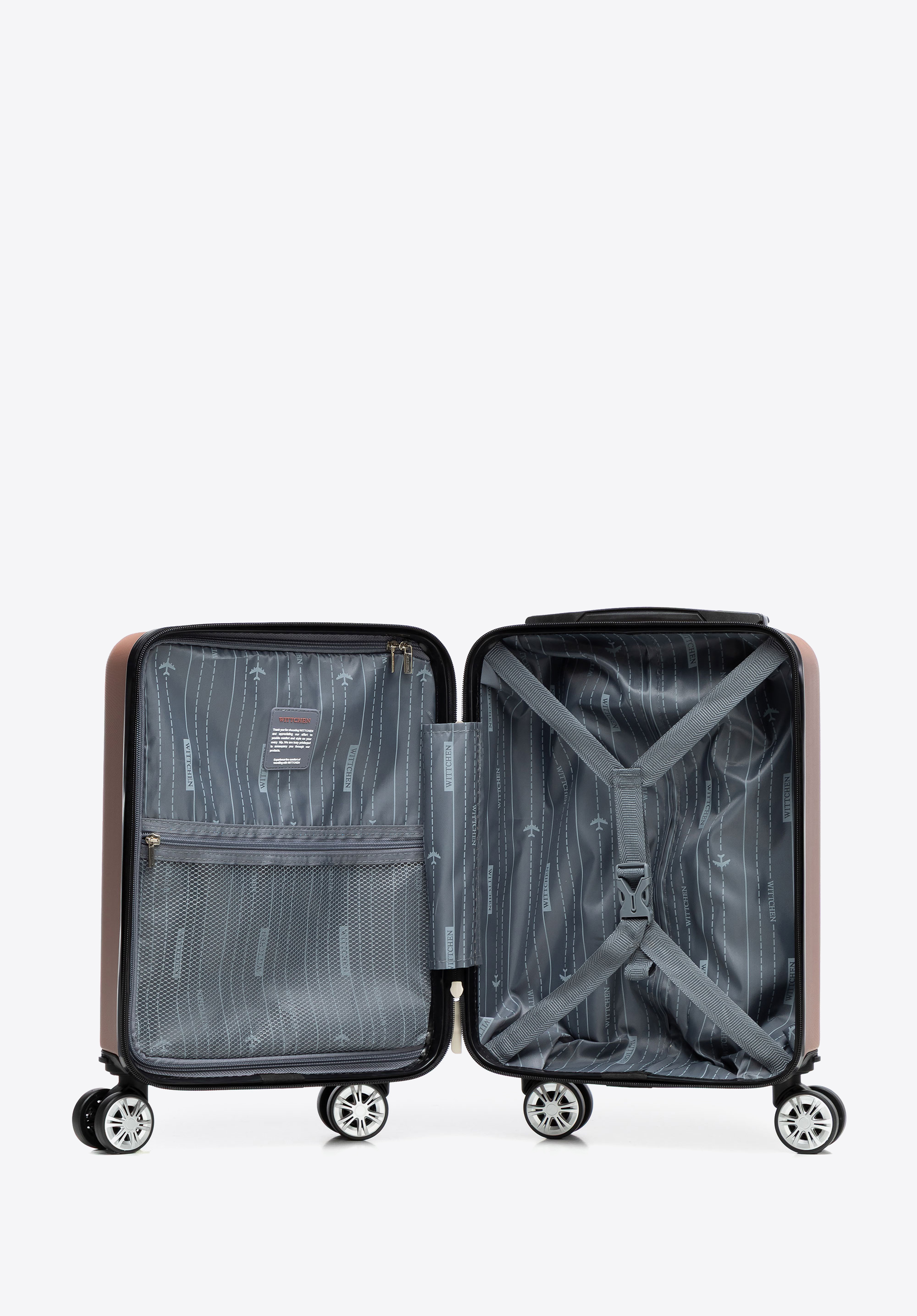 Reisen Sie komfortabel und stilvoll mit dem Free on Board Koffer aus ABS . Seine robuste Konstruktion schützt Ihr Gepäck vor Stößen, und dank seiner kompakten Größe mit abnehmbaren Rollen eignet er sich perfekt als Handgepäck (40 × 30 × 20 cm) für gängige Fluggesellschaften wie Ryanair und Wizz Air . Ideal für Kurztrips und Wochenendausflüge: Der Koffer verfügt über einen sicheren Reißverschluss und ein durchdachtes Innenleben, damit Ihre Sachen stets ordentlich verstaut sind.
