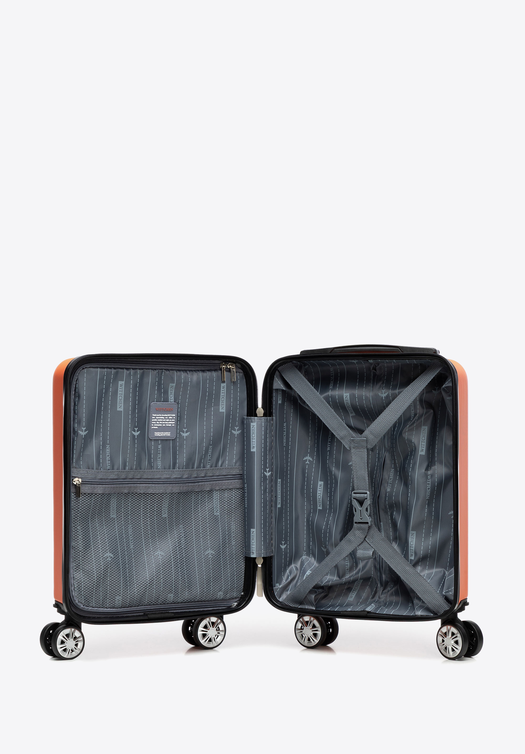 Reisen Sie komfortabel und stilvoll mit dem Free on Board Koffer aus ABS . Seine robuste Konstruktion schützt Ihr Gepäck vor Stößen, und dank seiner kompakten Größe mit abnehmbaren Rollen eignet er sich perfekt als Handgepäck (40 × 30 × 20 cm) für gängige Fluggesellschaften wie Ryanair und Wizz Air . Ideal für Kurztrips und Wochenendausflüge: Der Koffer verfügt über einen sicheren Reißverschluss und ein durchdachtes Innenleben, damit Ihre Sachen stets ordentlich verstaut sind.