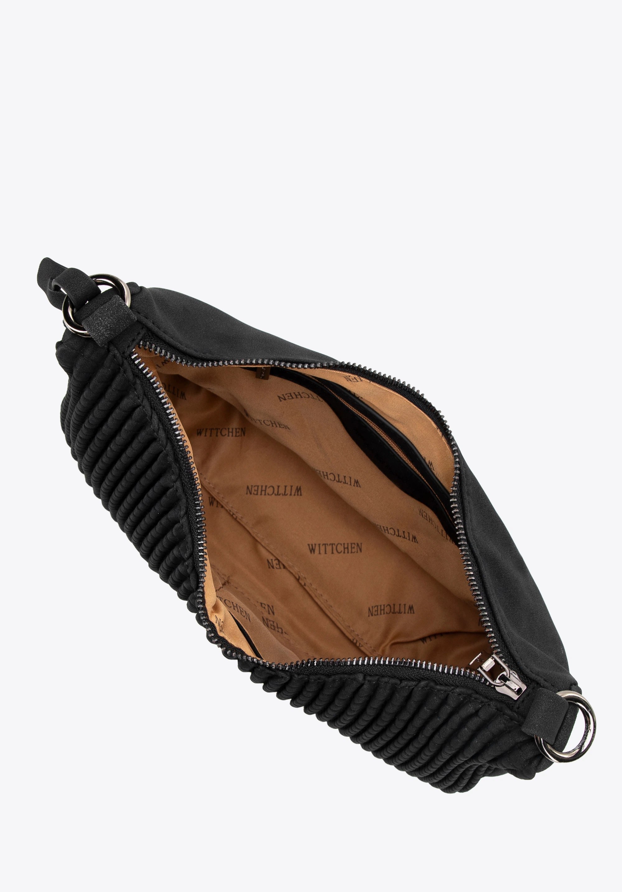 Entdecken Sie unsere außergewöhnliche Damenhandtasche aus Kunstleder in der eleganten Baguette-Form. Mit ihrem verstellbaren und austauschbaren Tragegurt und einer zusätzlichen Gesäßtasche ist sie nicht nur praktisch, sondern auch äußerst stylisch. Die Handtasche verfügt über ein einzelnes Fach mit zwei offenen Taschen und einer Reißverschlusstasche , perfekt für kleine Dinge. Unsere Baguette-Tasche verfügt über eine elegante Quaste , die mit dem Logo des Herstellers verziert ist und ihr einen einzigartigen Charakter verleiht. Durch die abnehmbare Quaste können Sie das Aussehen der Tasche Ihren Vorlieben und Anlässen entsprechend anpassen. Das geometrische Steppmuster verleiht ein modernes, unverwechselbares Flair.