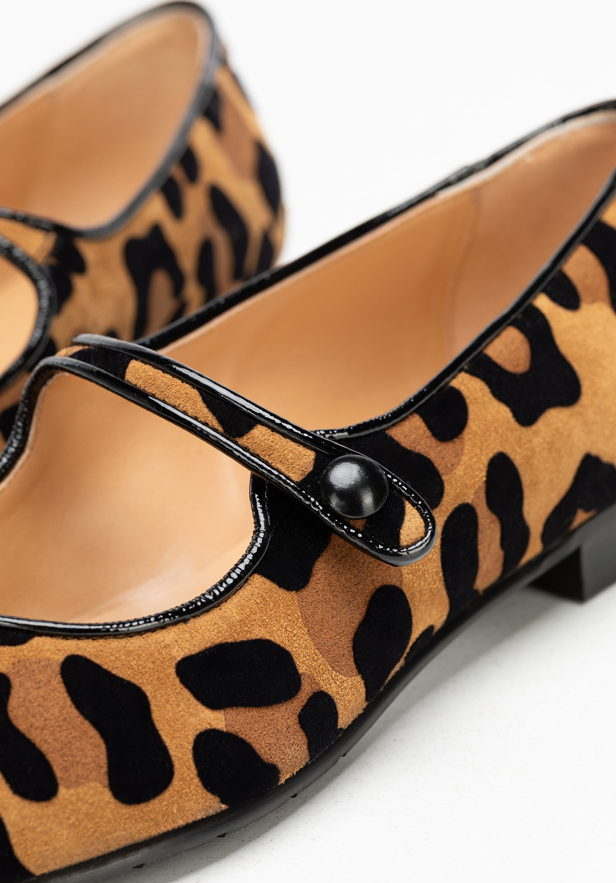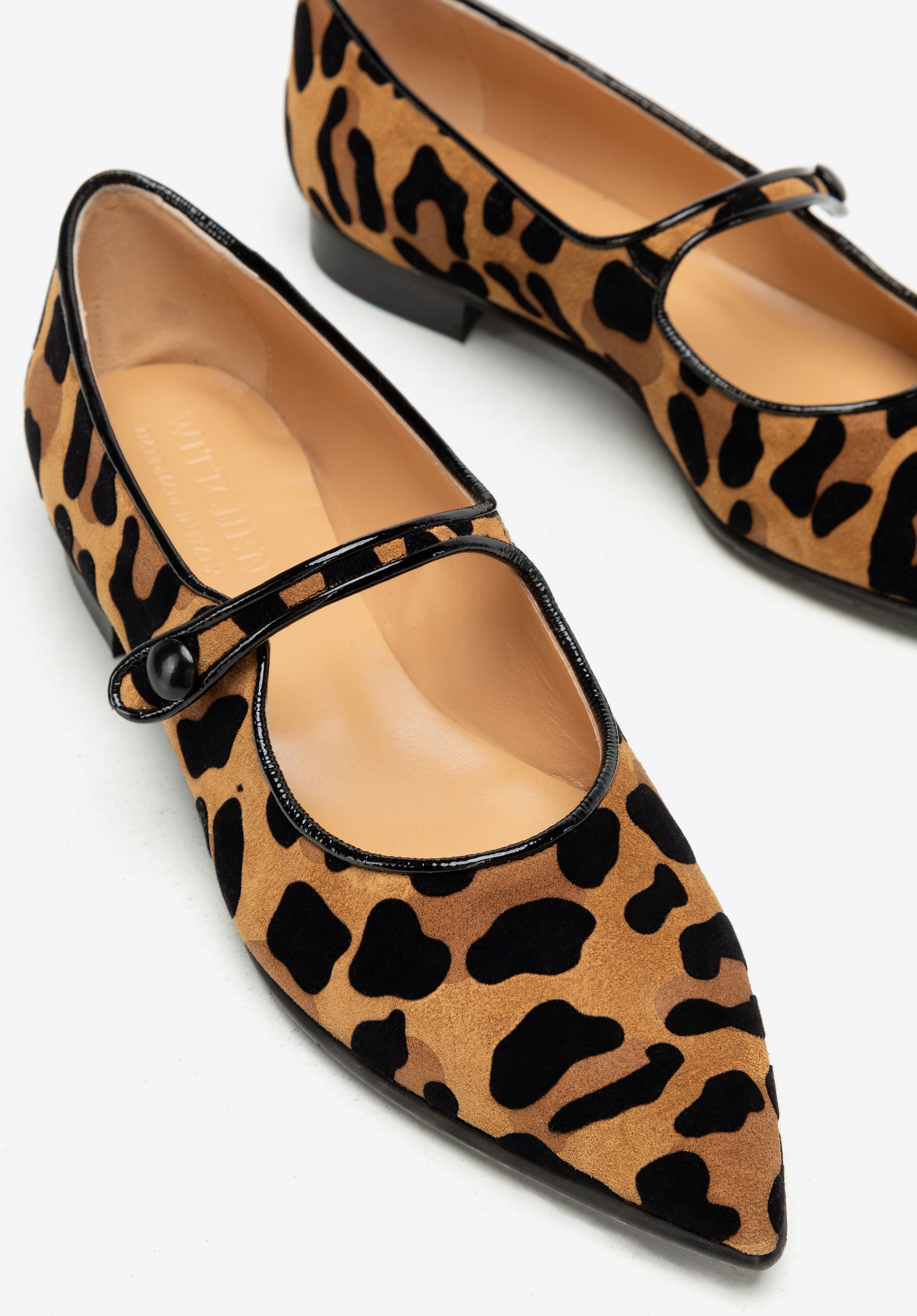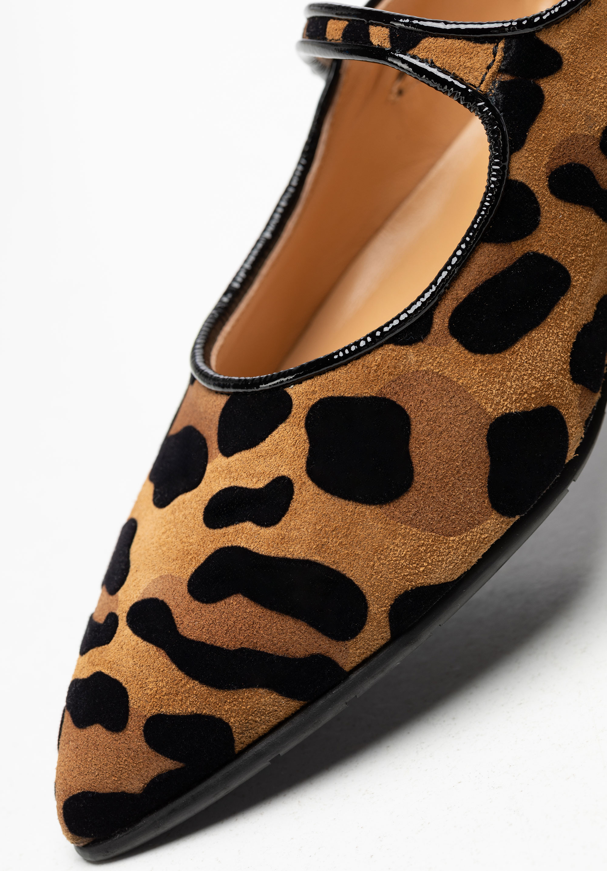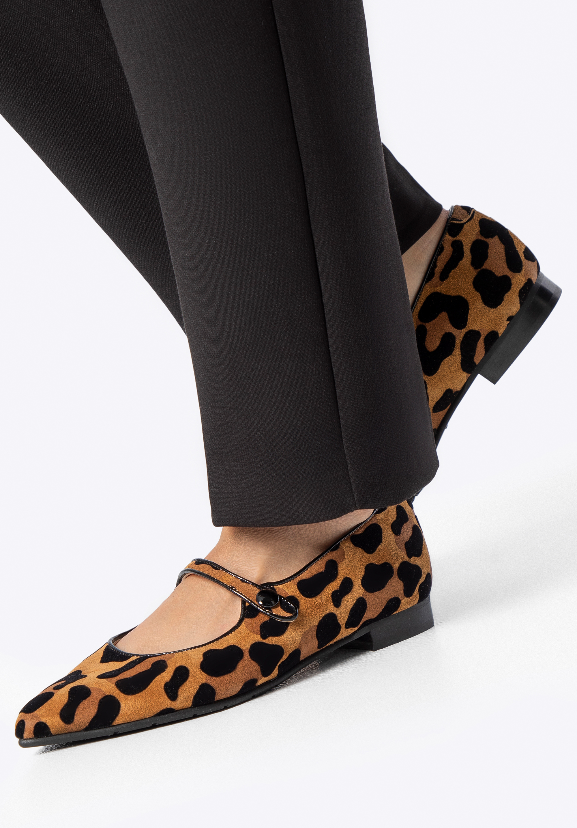 Suchen Sie Ballerinas , die Komfort und Weiblichkeit vereinen und Blicke auf sich ziehen? Dieses Design ist die perfekte Mischung aus Alltagstauglichkeit und markantem Stil. Gefertigt aus weichem , natürlichem Wildleder , bestechen sie mit einem Leopardenmuster , das jedem Outfit Charakter verleiht. Die spitze Zehenpartie streckt den Fuß optisch und verleiht Ihrer Silhouette Leichtigkeit, während der elastische Riemen über dem Spann für besseren Sitz und Stabilität sorgt. Diese Ballerinas sind nicht nur stilvoll, sondern erfüllen auch die Bedürfnisse aktiver Frauen, die Wert auf Komfort im Alltag legen.