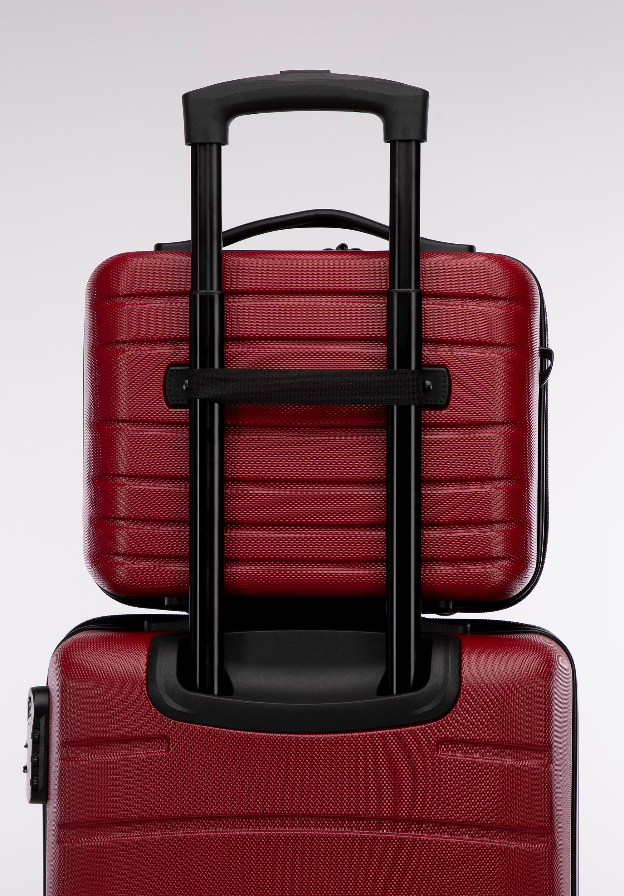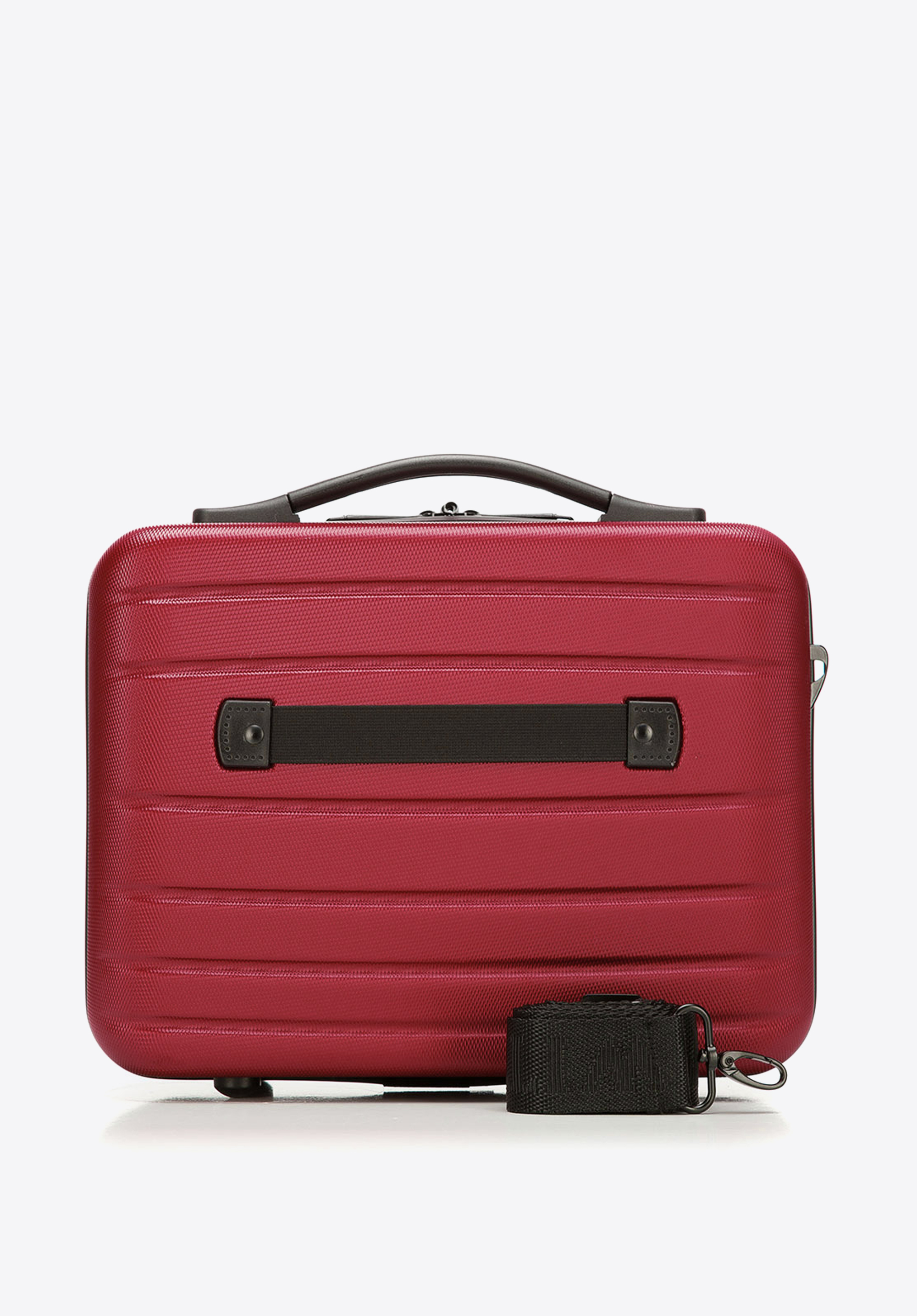 Der Kosmetikkoffer wird aus strapazierfähigem und kratzfestem ABS gefertigt. Das funktionale Modell verfügt über einen Tragegriff für einfaches Anheben, einen abnehmbaren, verstellbaren Schultergurt und ein elastisches Gummiband, das die Befestigung am Koffergriff ermöglicht. Die horizontale Prägung verleiht dem modernen Beautycase eine hinreißende Optik. Erhältlich in vielen Farbvarianten: Dunkelblau, Rosa, Champagner, Grau oder Schwarz.