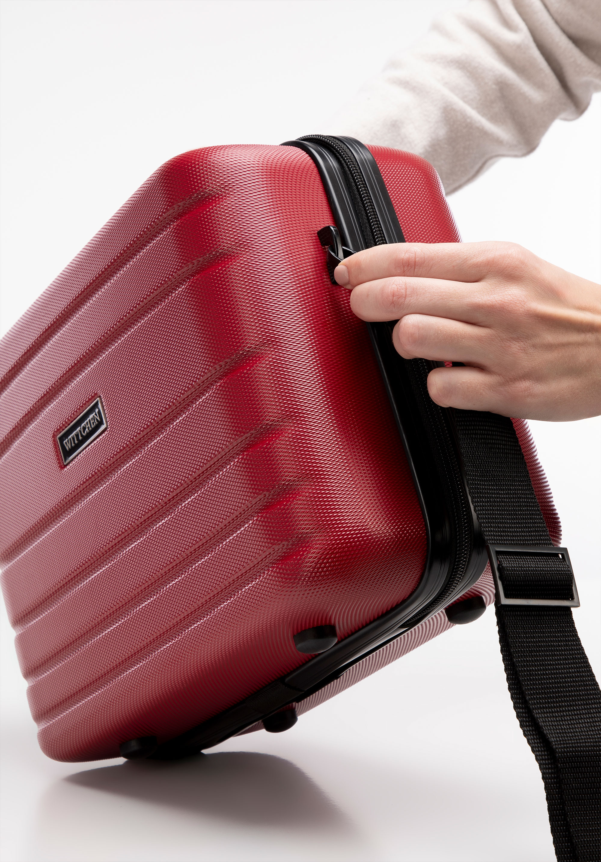 - ein elastisches Gummiband auf der Rückseite zur Befestigung am Koffer;