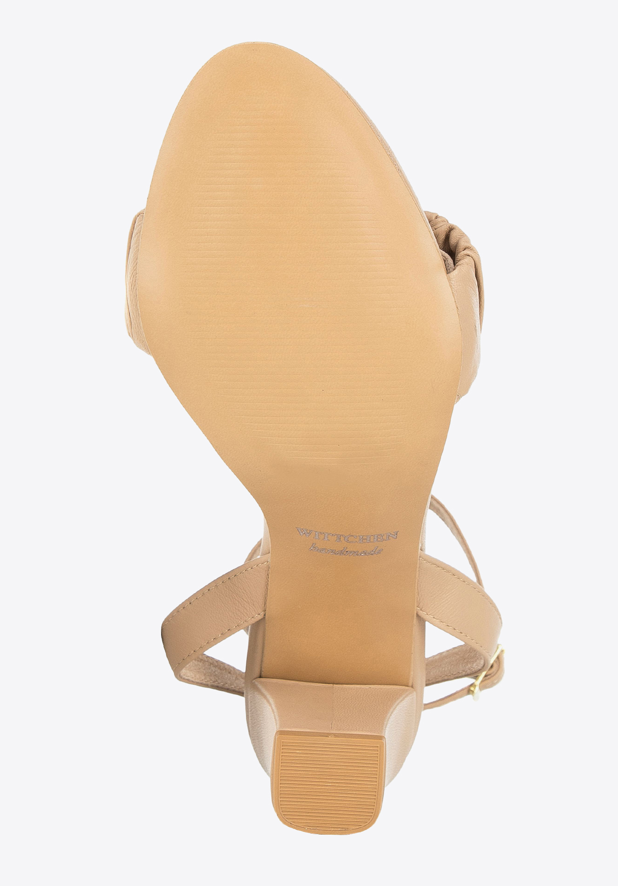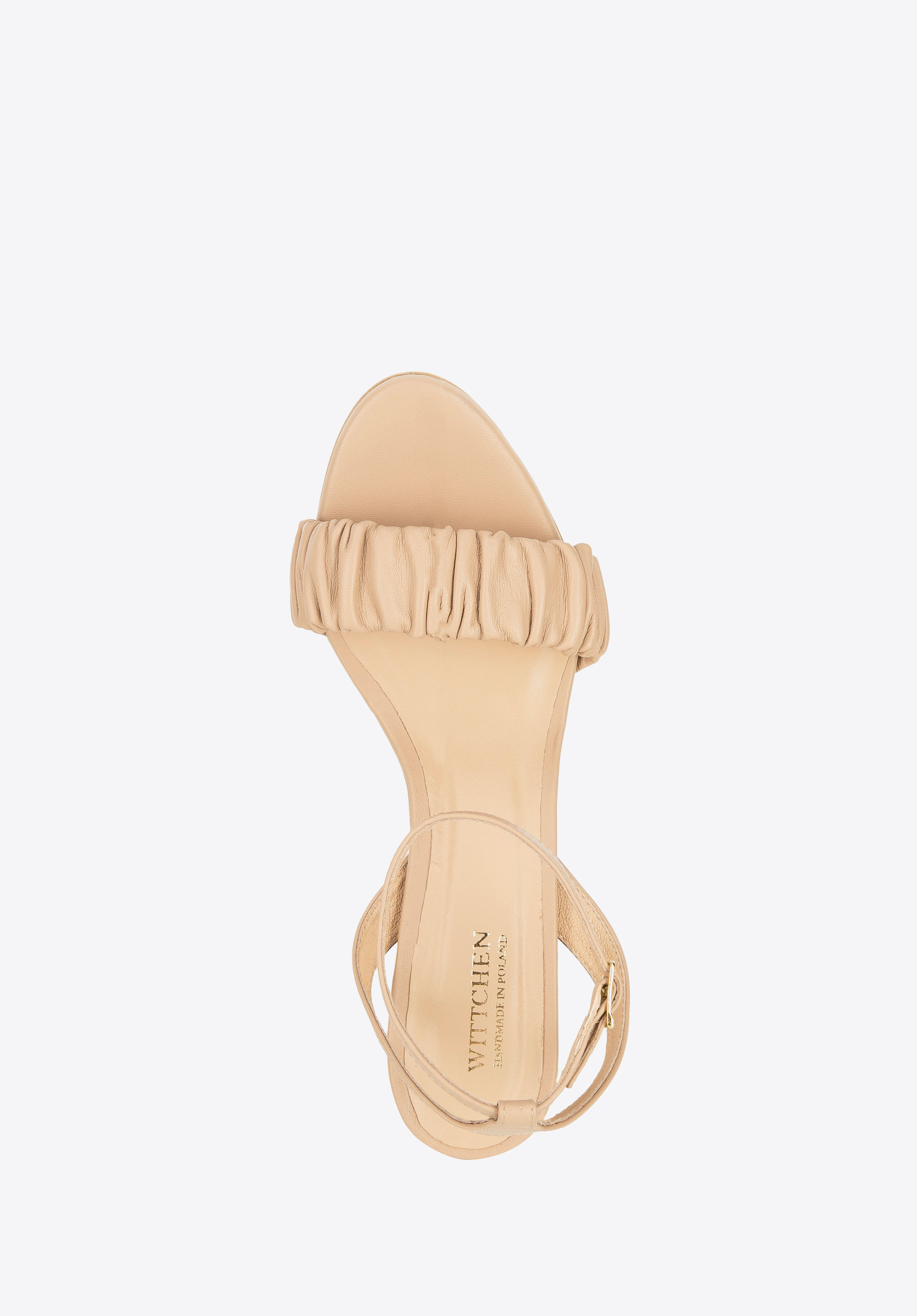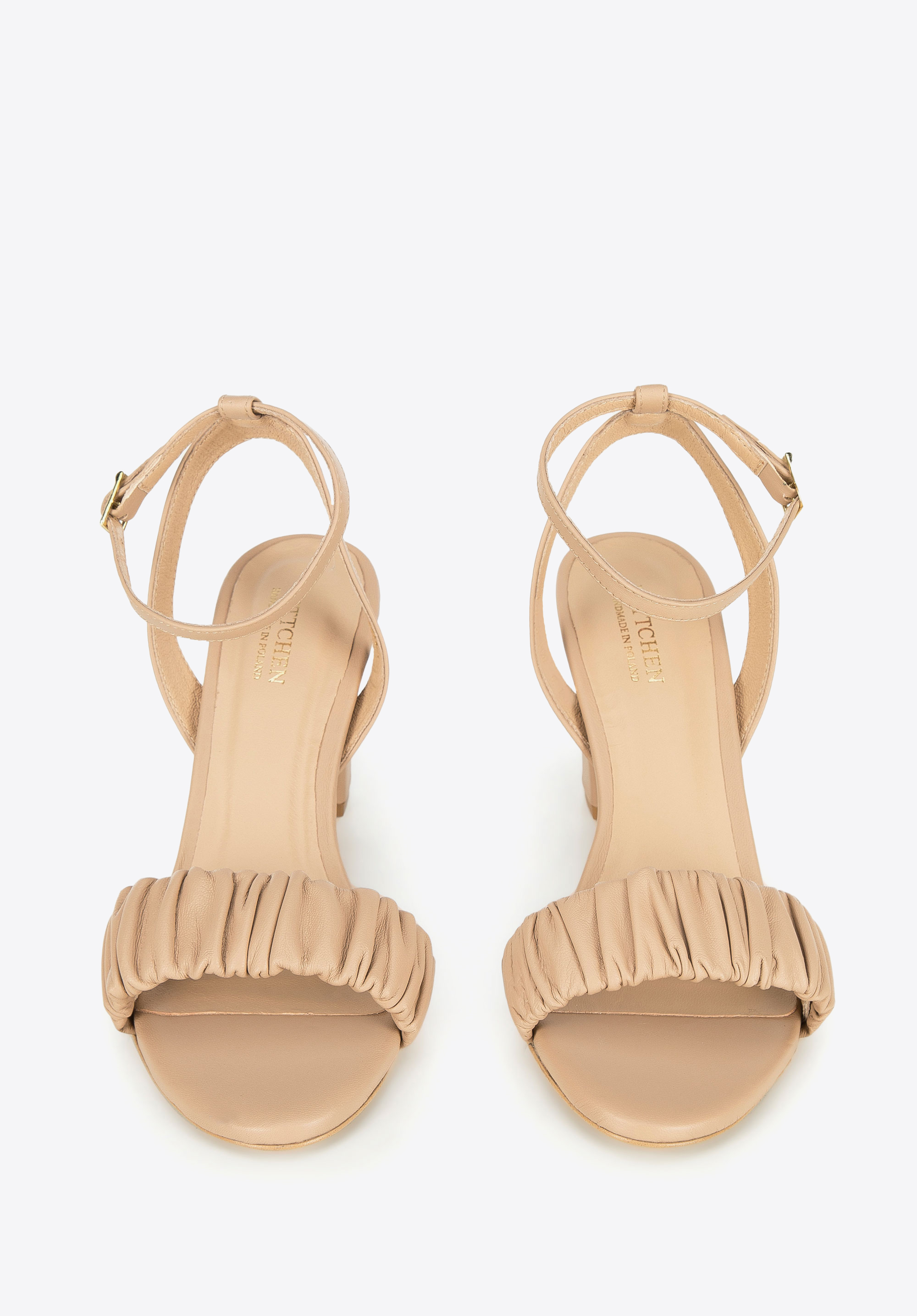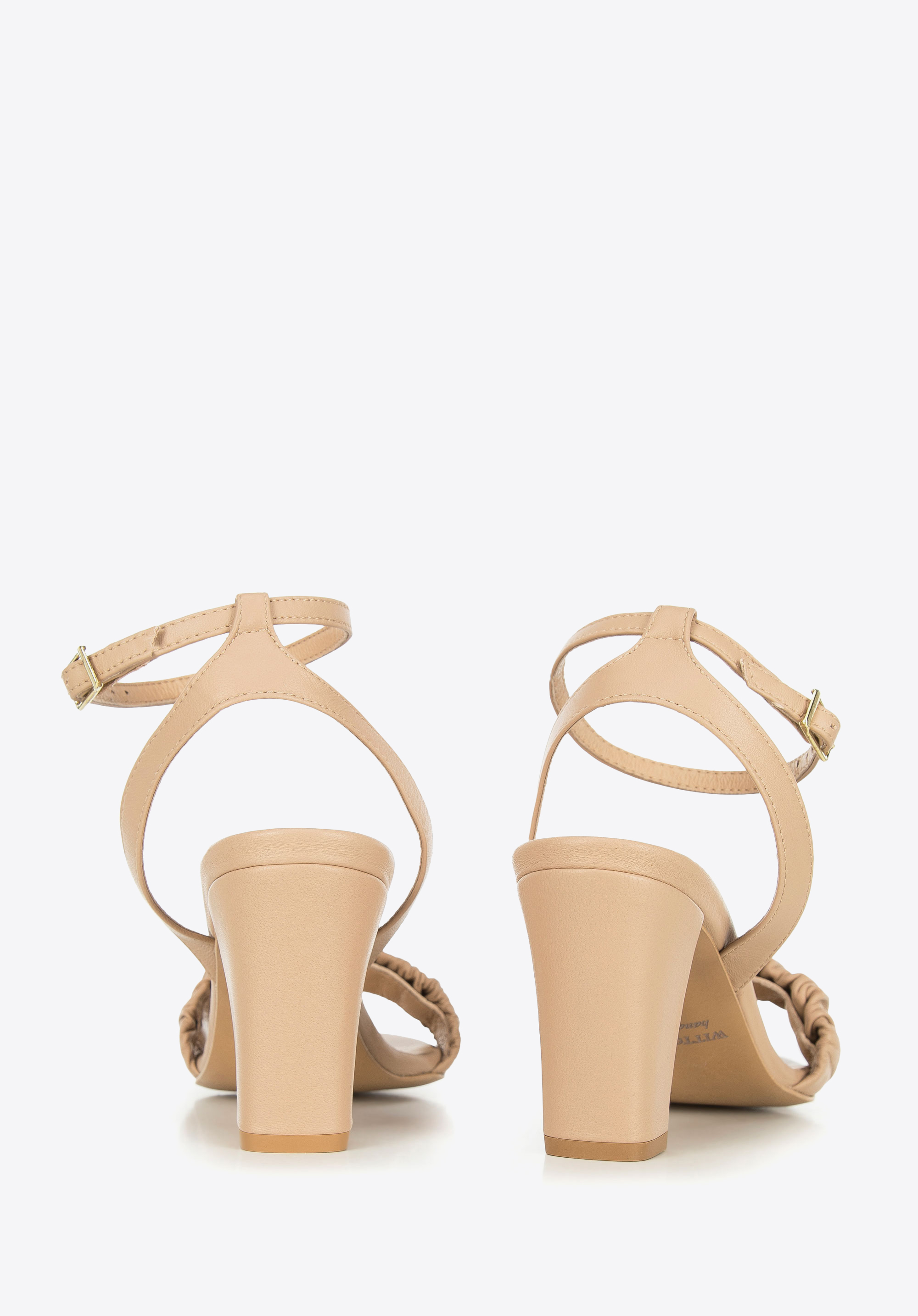 Diese eleganten Sandaletten für Damen sind ein einzigartiges Accessoire für jeden formellen Anlass. Dieses Modell wurde in Polen aus hochwertigem Leder hergestellt. Die geraffte Vorderseite ist eine originelle und sehr modische Verzierung. Die dünnen Riemen mit Schnalle sind praktisch und zart zugleich. Der Absatz ist ziemlich hoch, aber bequem: Er macht Ihre Silhouette schön schlank und ermöglicht es Ihnen, stundenlang in diesen Schuhen zu laufen. Tragen Sie diese eleganten Damenschuhe mit einem luftigen Kleid oder mit Jeans und einer Jacke. Die Sandaletten aus gerafftem Leder mit Absatz sind ein feminines Accessoire für jeden Anlass.