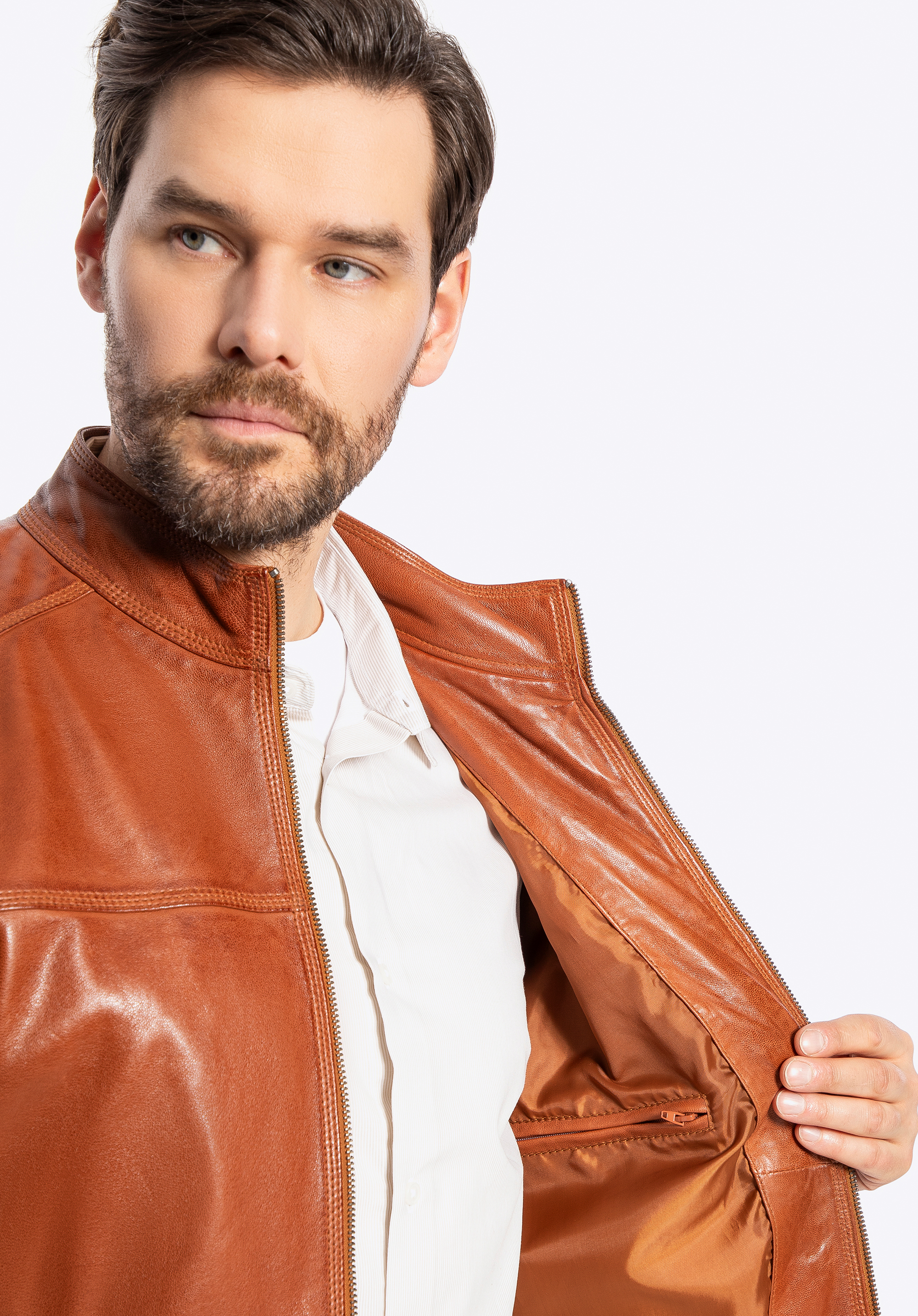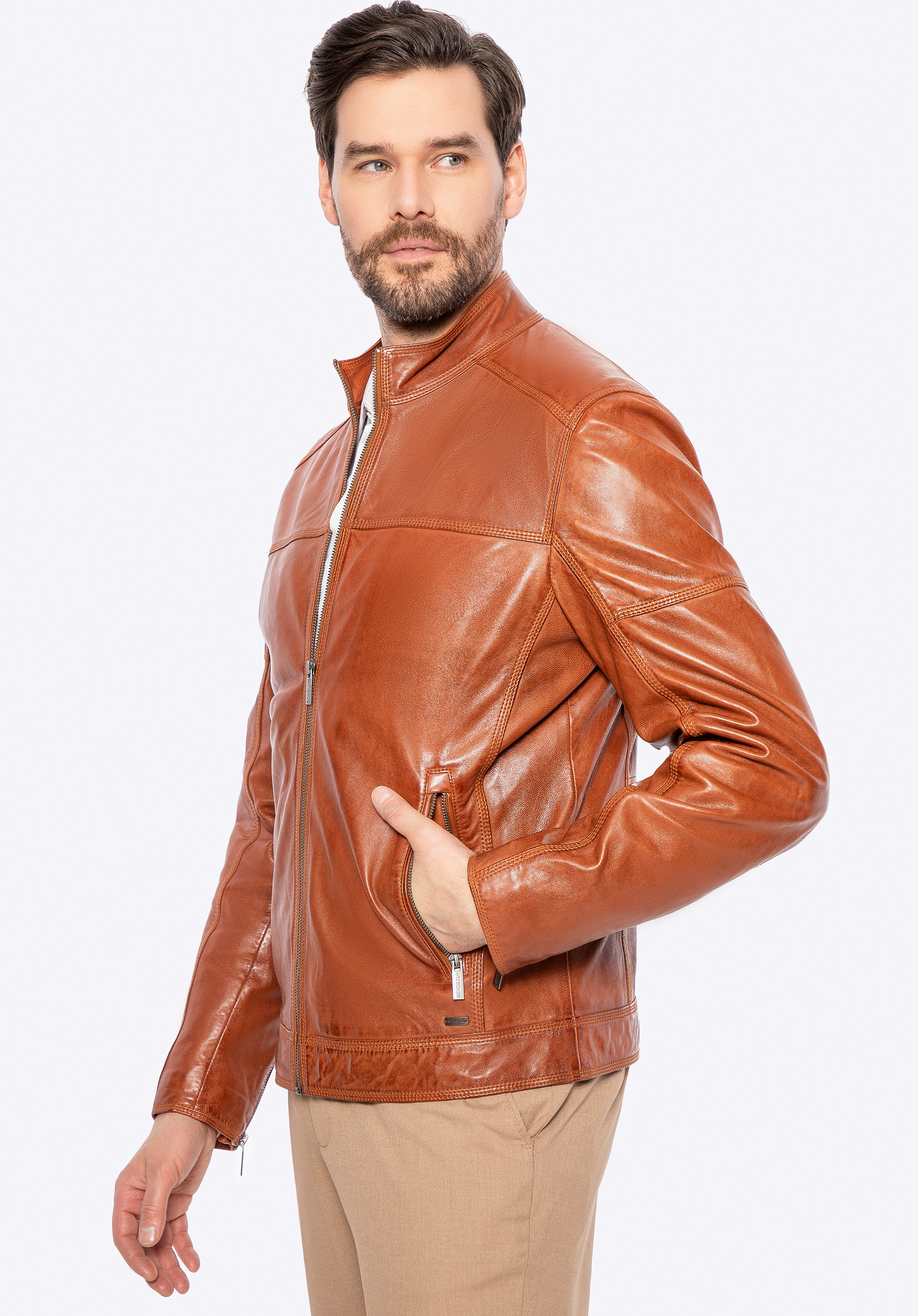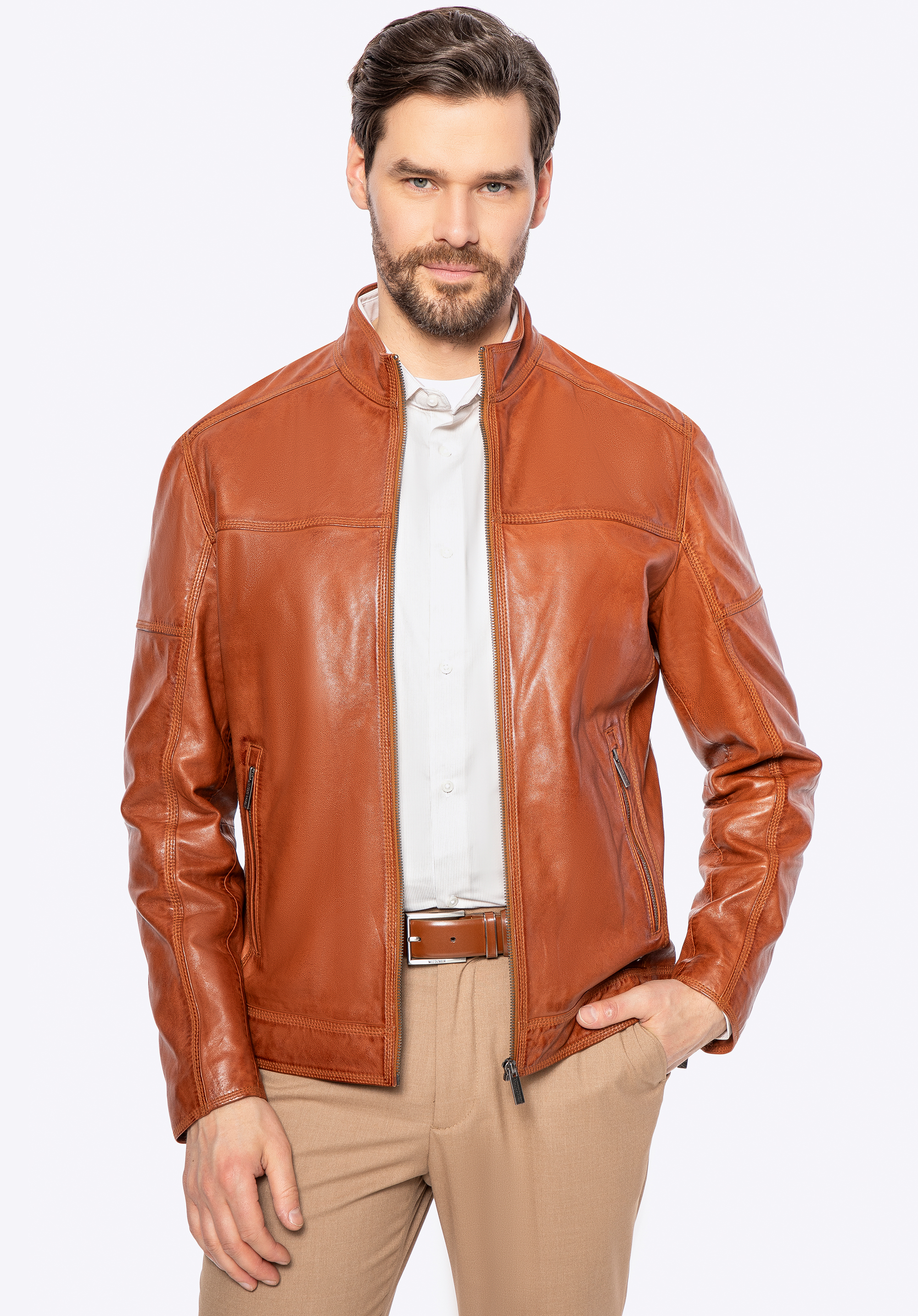 Wir präsentieren eine Jacke , die Eleganz, Modernität und zeitlosen Stil vereint. Sie ist aus natürlichem Schafsleder gefertigt und ein absolutes Must-have in der Garderobe eines jeden Mannes. Metallakzente , ein dezentes Logo an der Seite und Reißverschlüsse sowie Ziernähte verleihen ihr einen unverwechselbaren Charakter, der sofort ins Auge fällt. Durchdachte Details wie per Reißverschluss verstellbare Manschetten sorgen nicht nur für einen stilvollen Look, sondern auch für eine perfekte Passform.