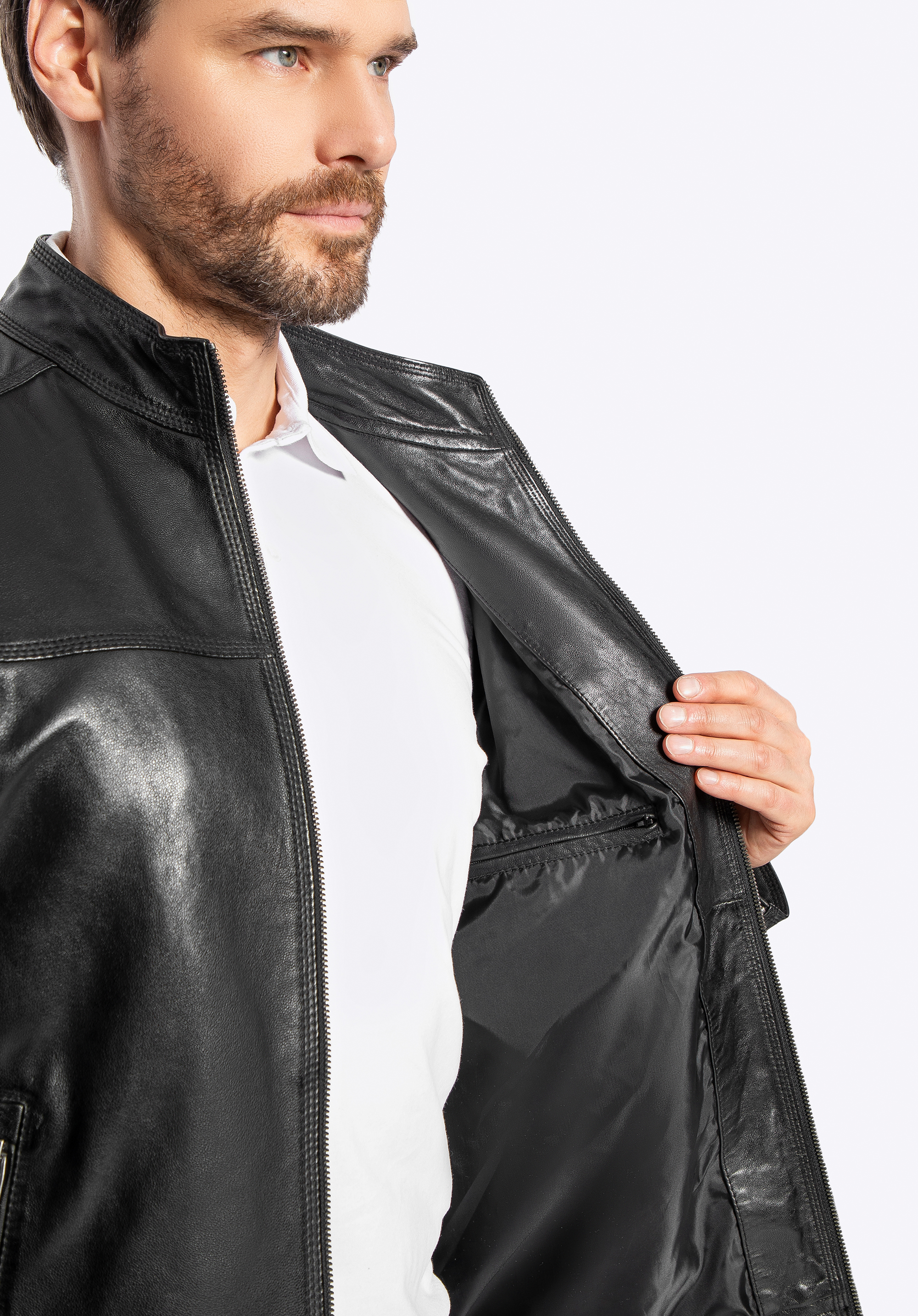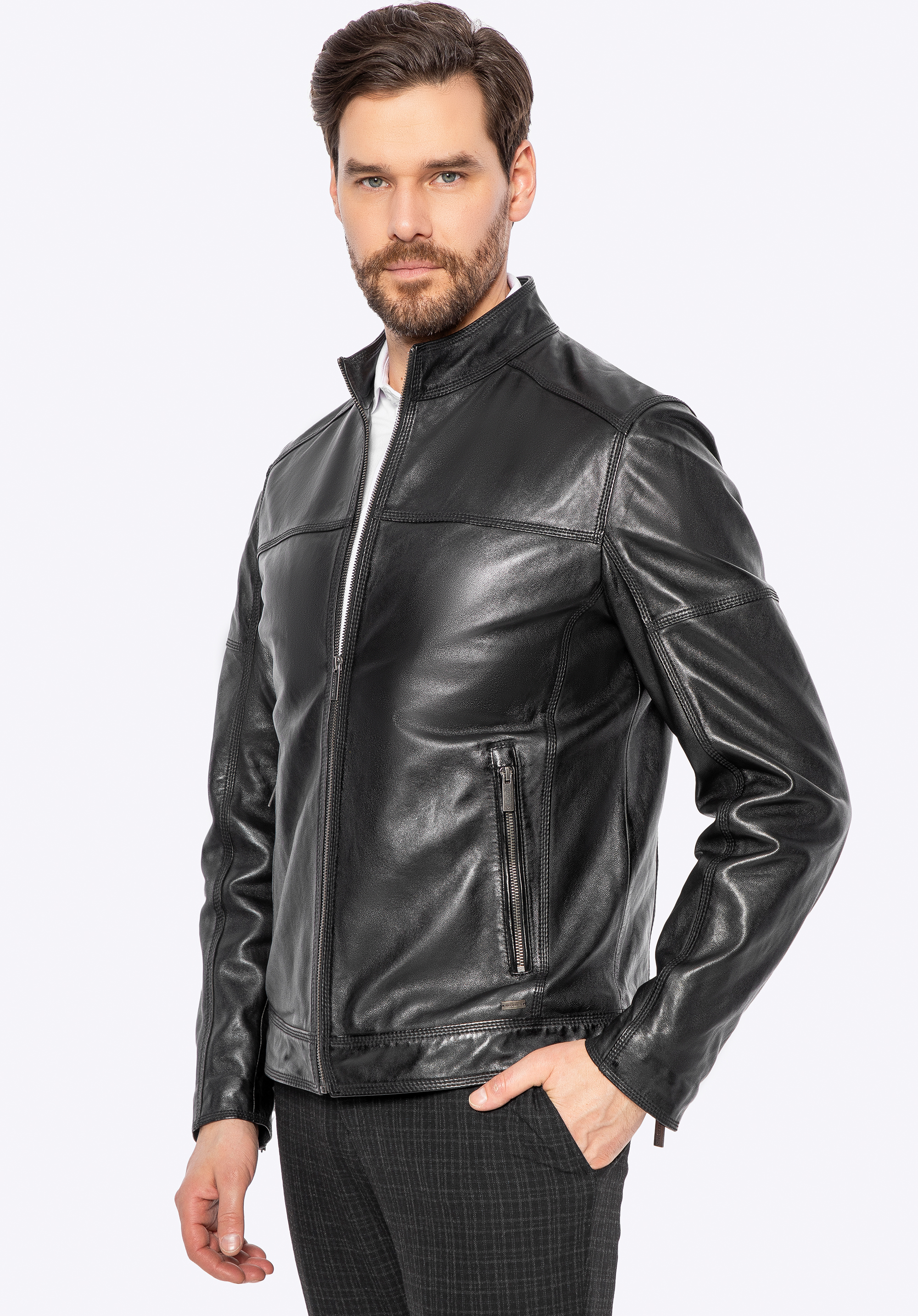 Wir präsentieren eine Jacke , die Eleganz, Modernität und zeitlosen Stil vereint. Sie ist aus natürlichem Schafsleder gefertigt und ein absolutes Must-have in der Garderobe eines jeden Mannes. Metallakzente , ein dezentes Logo an der Seite und Reißverschlüsse sowie Ziernähte verleihen ihr einen unverwechselbaren Charakter, der sofort ins Auge fällt. Durchdachte Details wie per Reißverschluss verstellbare Manschetten sorgen nicht nur für einen stilvollen Look, sondern auch für eine perfekte Passform.