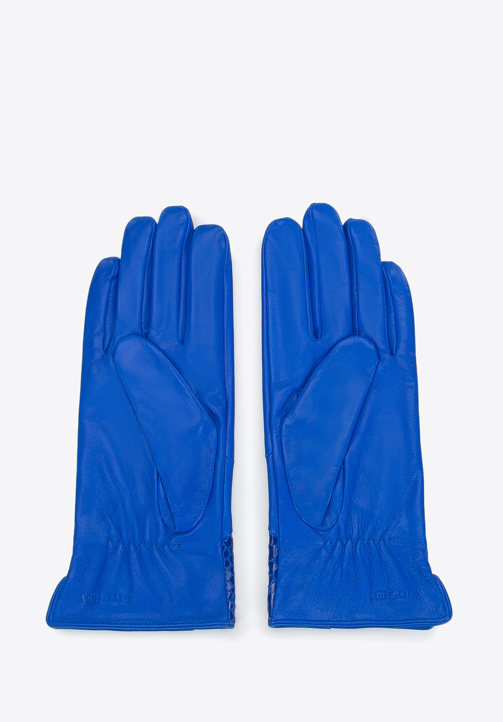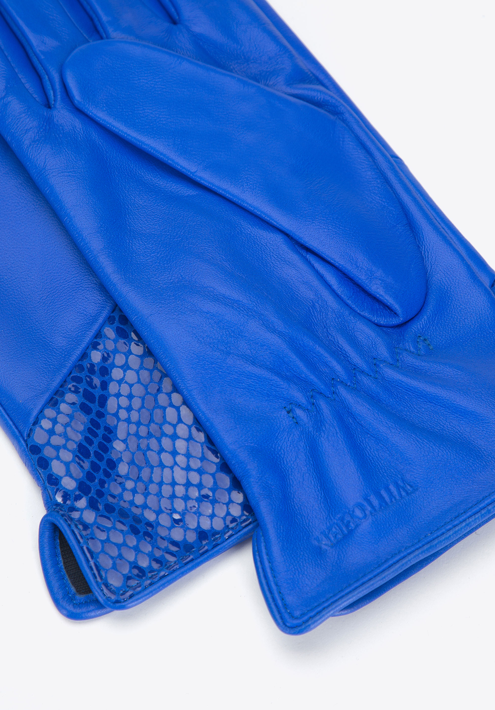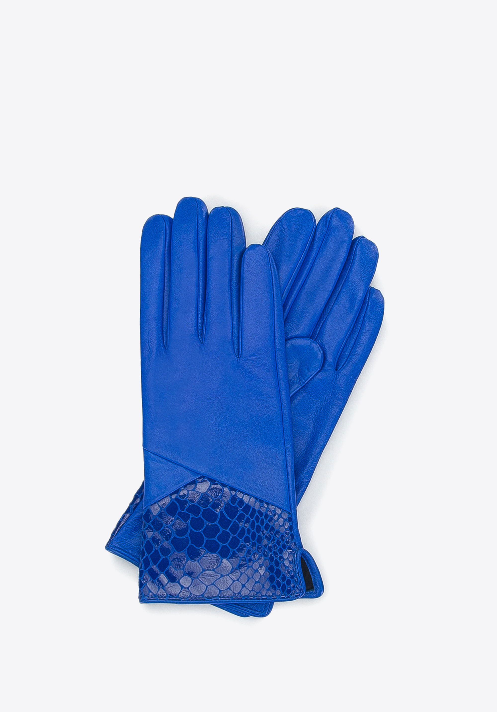 blaue Damenhandschuhe mit Einsatz in exotischer Textur