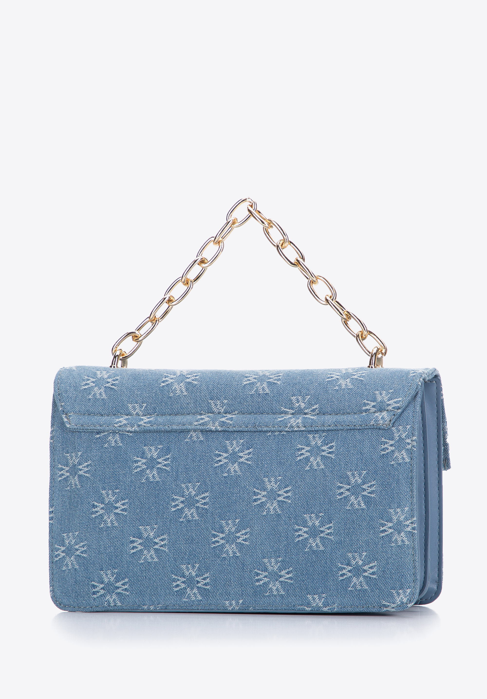 Diese originelle Umhängetasche mit Monogramm unterstreicht Ihren Stil. Ein Denim-Finish mit dem WITTCHEN-Monogramm bedeckt die Vorderseite und den Überschlag der Tasche. Die Seiten sind aus hochwertigem Öko-Leder gefertigt. Im Inneren befinden sich zwei Fächer, in denen Sie alles gut unterbringen können: Geldbörse, Handy, Taschentücher, Handcreme, einen kleinen Kalender und ein paar Kleinigkeiten. Sie können ihn nach Belieben tragen: über der Schulter oder in der Hand, nachdem Sie die lange Kette abgenommen haben. Dieses Modell bringt Abwechslung in fast jedes schlichte Kleid Die Tasche aus Denim mit Monogramm für Damen ist ein modisches Accessoire, das Sie in Ihrer Garderobe unbedingt haben sollten.
