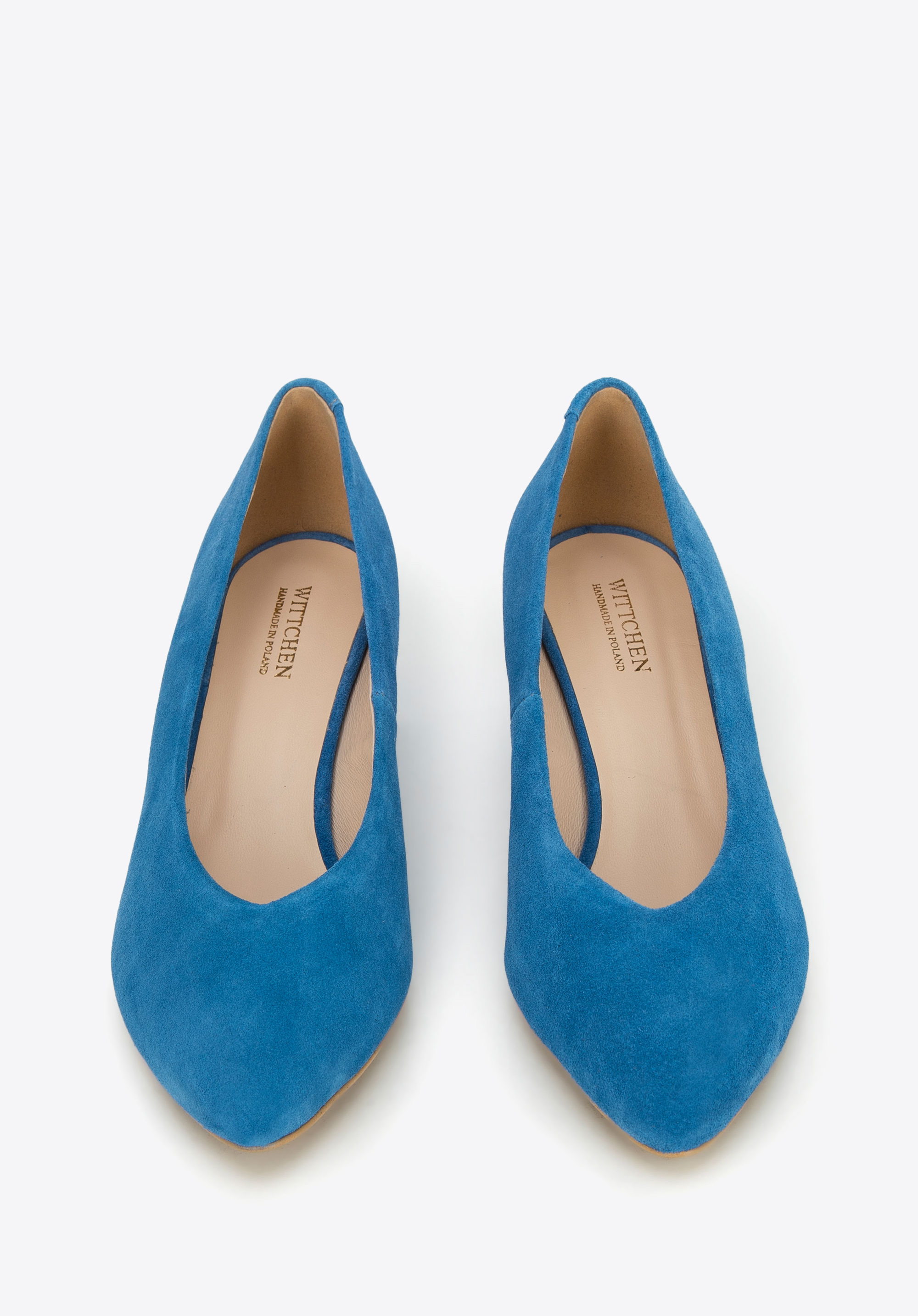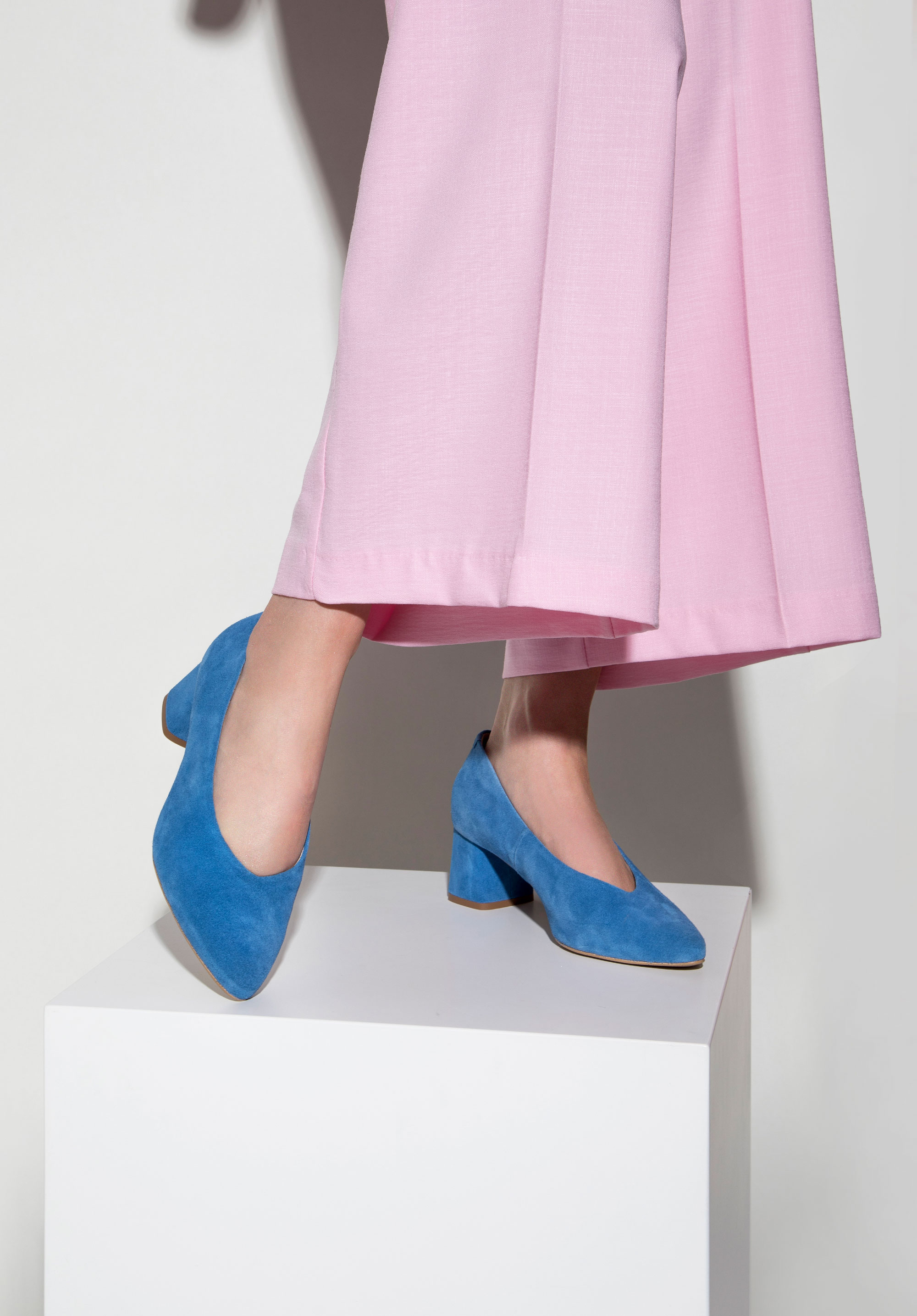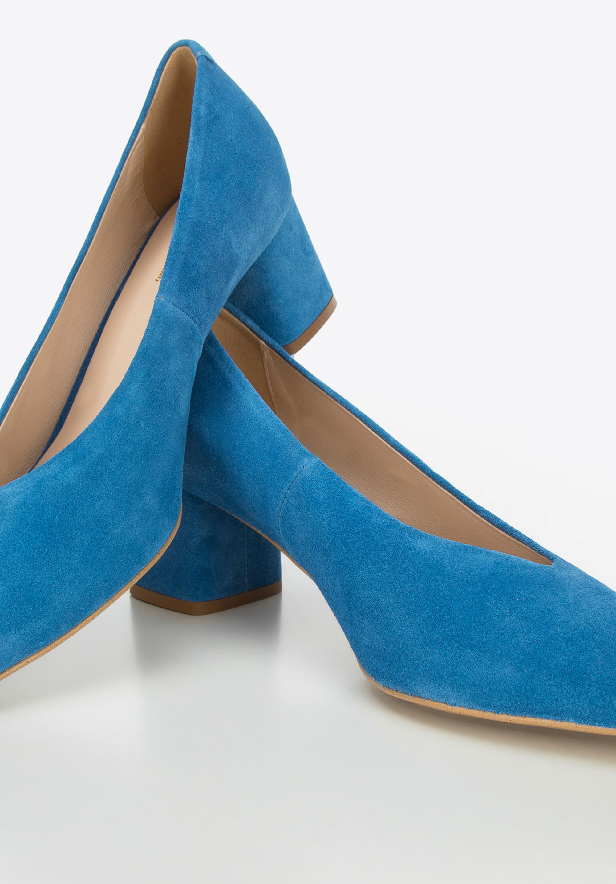 Klassische Pumps passen zu jedem Outfit - zum Rüschenkleid oder zur weit geschnittenen Jeans. Dieses Modell wurde in Polen aus hochwertigem Wildleder hergestellt. Sie haben den Schnitt im Retro-Stil, mit dem schönen Ausschnitt, der den Fuß freilegt.Der niedrige Absatz und die spitze Schuhkappe machen Ihr Bein schlank und die Innensohle aus Ziegenleder sorgt für den Komfort Ihrer Füße. Sie sind ein sehr stilvolles Accessoire, das Ihnen jahrelang dienen wird. Außerdem werden Sie in jeder Situation elegant aussehen. Diese Schuhe darf in Ihrem Kleiderschrank nicht fehlen.