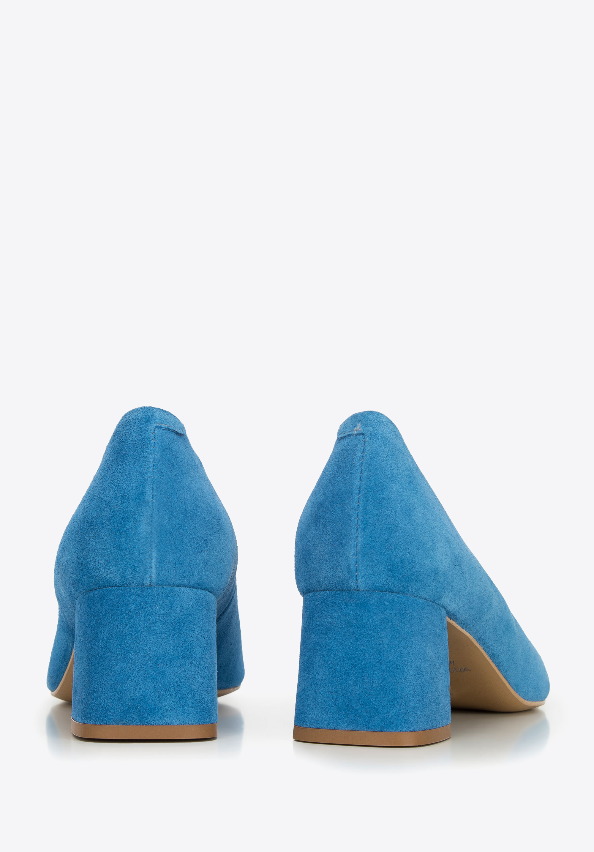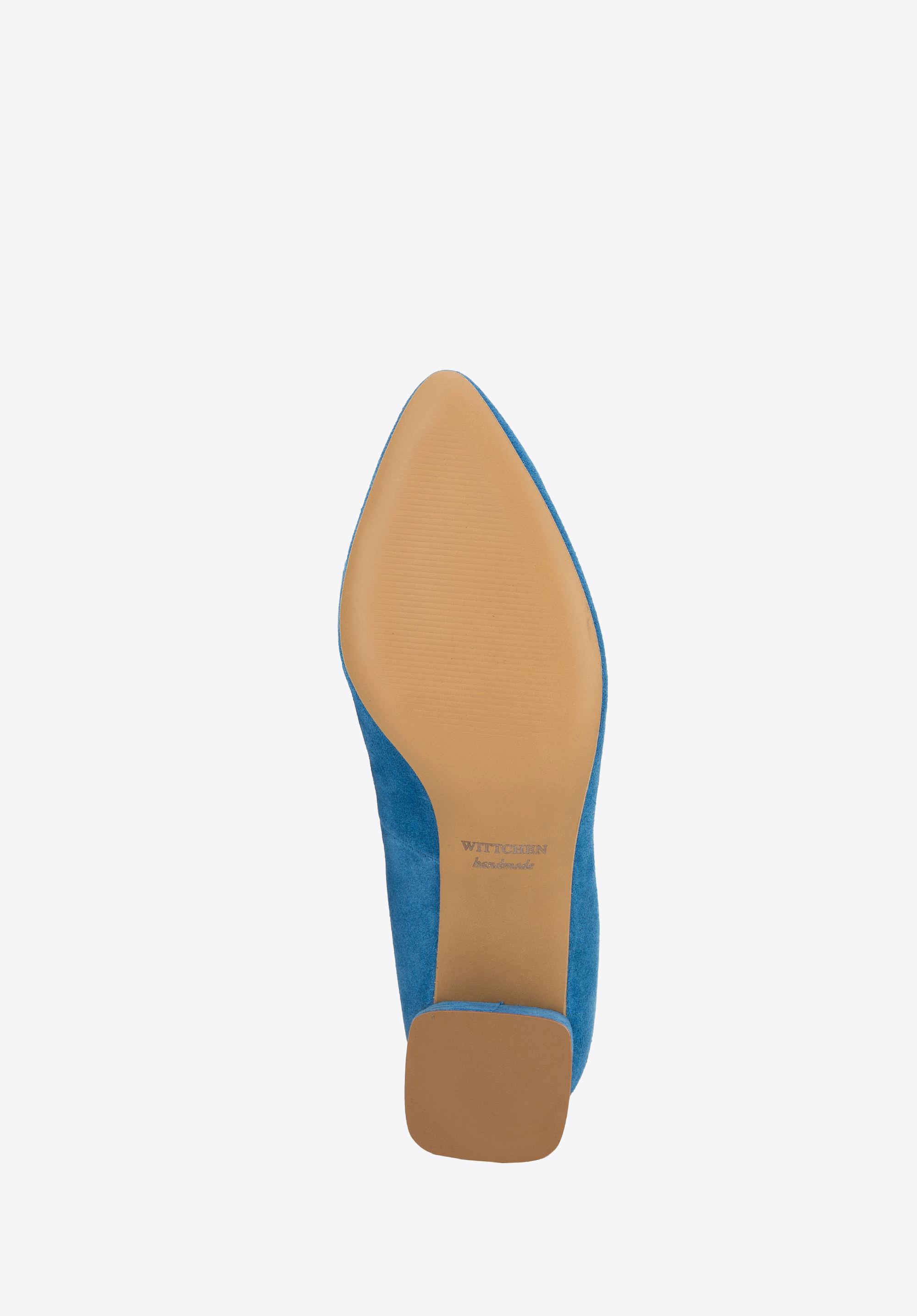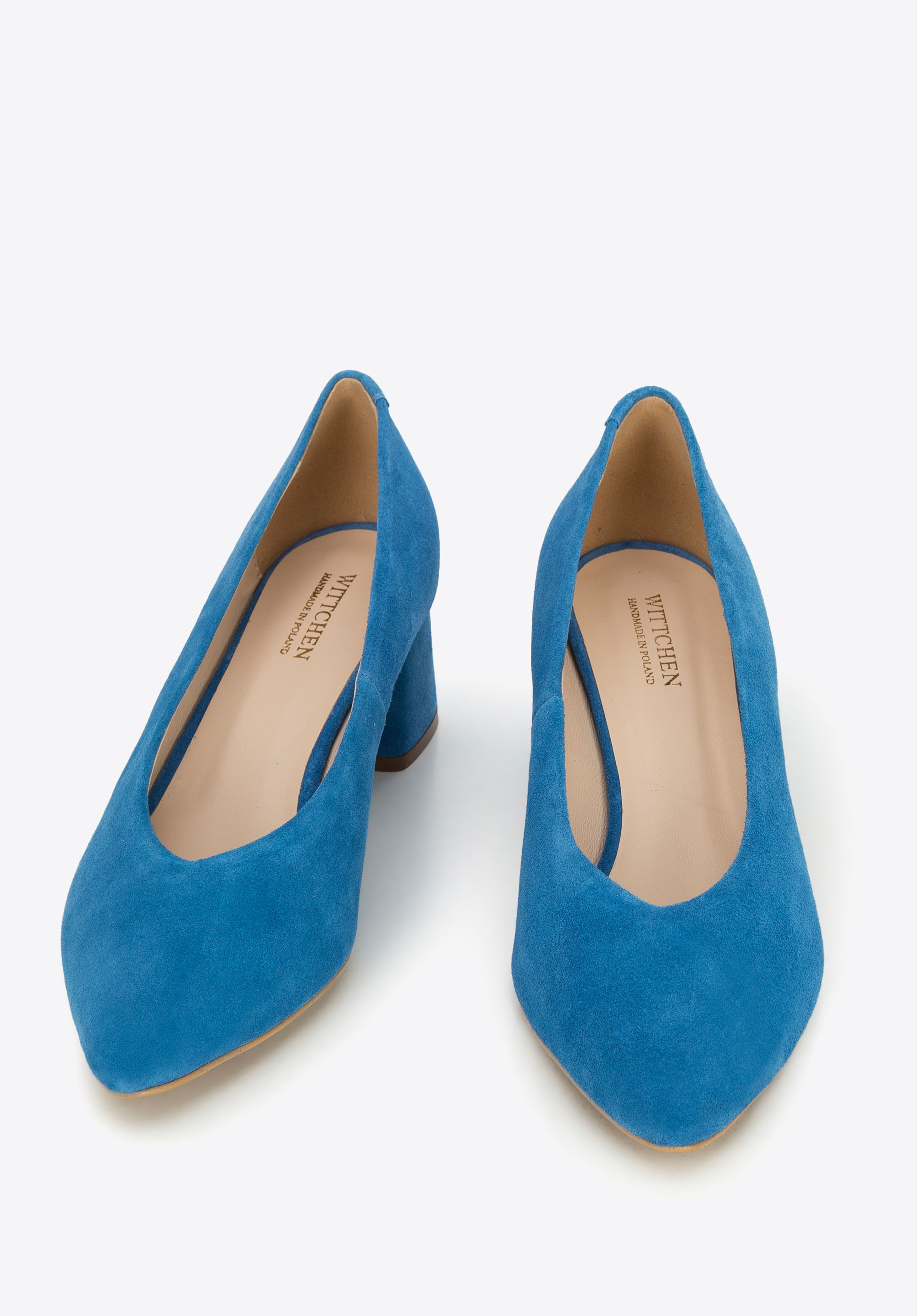 Klassische Pumps passen zu jedem Outfit - zum Rüschenkleid oder zur weit geschnittenen Jeans. Dieses Modell wurde in Polen aus hochwertigem Wildleder hergestellt. Sie haben den Schnitt im Retro-Stil, mit dem schönen Ausschnitt, der den Fuß freilegt.Der niedrige Absatz und die spitze Schuhkappe machen Ihr Bein schlank und die Innensohle aus Ziegenleder sorgt für den Komfort Ihrer Füße. Sie sind ein sehr stilvolles Accessoire, das Ihnen jahrelang dienen wird. Außerdem werden Sie in jeder Situation elegant aussehen. Diese Schuhe darf in Ihrem Kleiderschrank nicht fehlen.