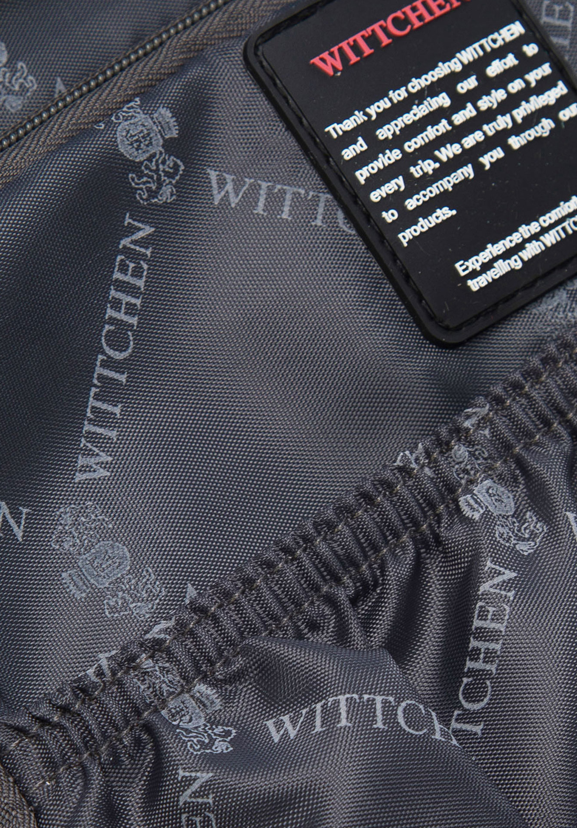 - ein elastisches Gummiband auf der Rückseite zur Befestigung am Koffer;