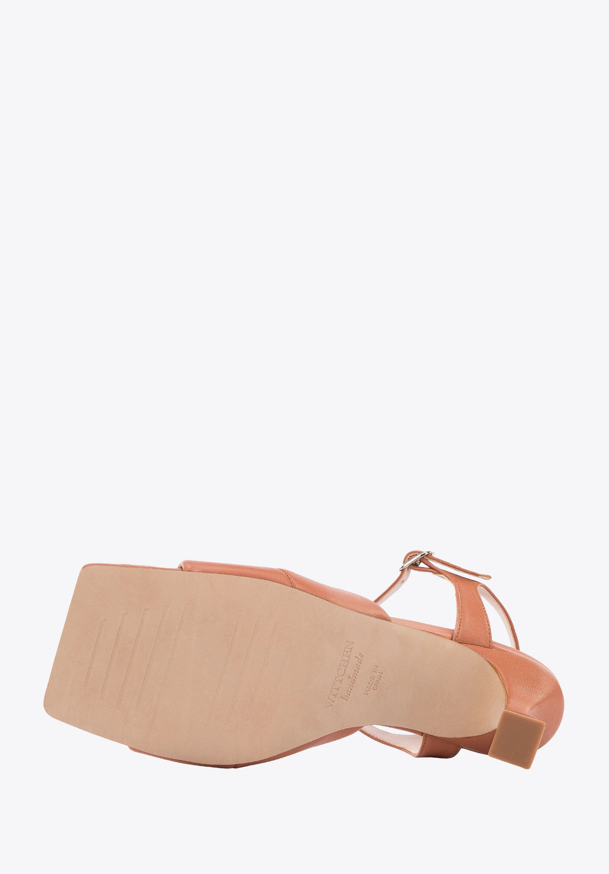 Diese klassischen Sandaletten sind ein zeitloses Accessoire, das Sie dieses Sommer benötigen werden . Sie sind in Spanien aus hochwertigem Naturleder gefertigt, das sich sehr angenehm anfühlt. Der mittelhohe Stilettoabsatz ist nach unten hin leicht ausgestellt, so dass er sehr stabil ist. Der breite Riemen an der Vorderseite gibt Ihrem Fuß Halt und die quadratische Schuhspitze verleiht ihnen einen besonderen Charakter. Die klassischen Sandaletten für Damen aus Leder sehen toll sowohl zu einem schicken Kleid für besondere Anlässe als auch zu Jeans und einer kurzen Ramones-Jacke aus.