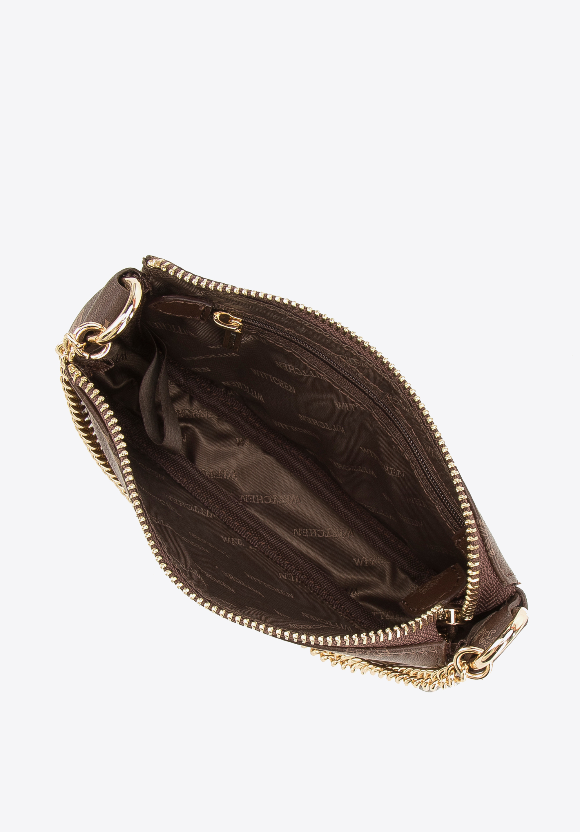 Ob Handtasche oder Etui - entscheiden Sie selbst! Man kann sie als Handtasche tragen, an einer Kette oder an einem angeklippten längeren Riemen. Sie ist aber so klein, dass man sie auch einfach in eine größere Tasche stecken kann. Im Inneren der Tasche können Sie Ihr Handy und Ihren Lippenstift oder andere kleine Gegenstände verstauen. Sie wurde aus hochwertigem Naturleder mit dem WITTCHEN-Monogramm gefertigt. Sie ist schlicht und schick, genau richtig für einen Abend mit Freunden, für einen Spaziergang oder einen Kinobesuch. Sie passt gut zu einem kleinen Schwarzen, aber auch zu Jeans und einer übergroßen Jacke. Die Minitasche mit monogrammierter Kette für Damen ist ein multifunktionales Accessoire für viele Gelegenheiten.