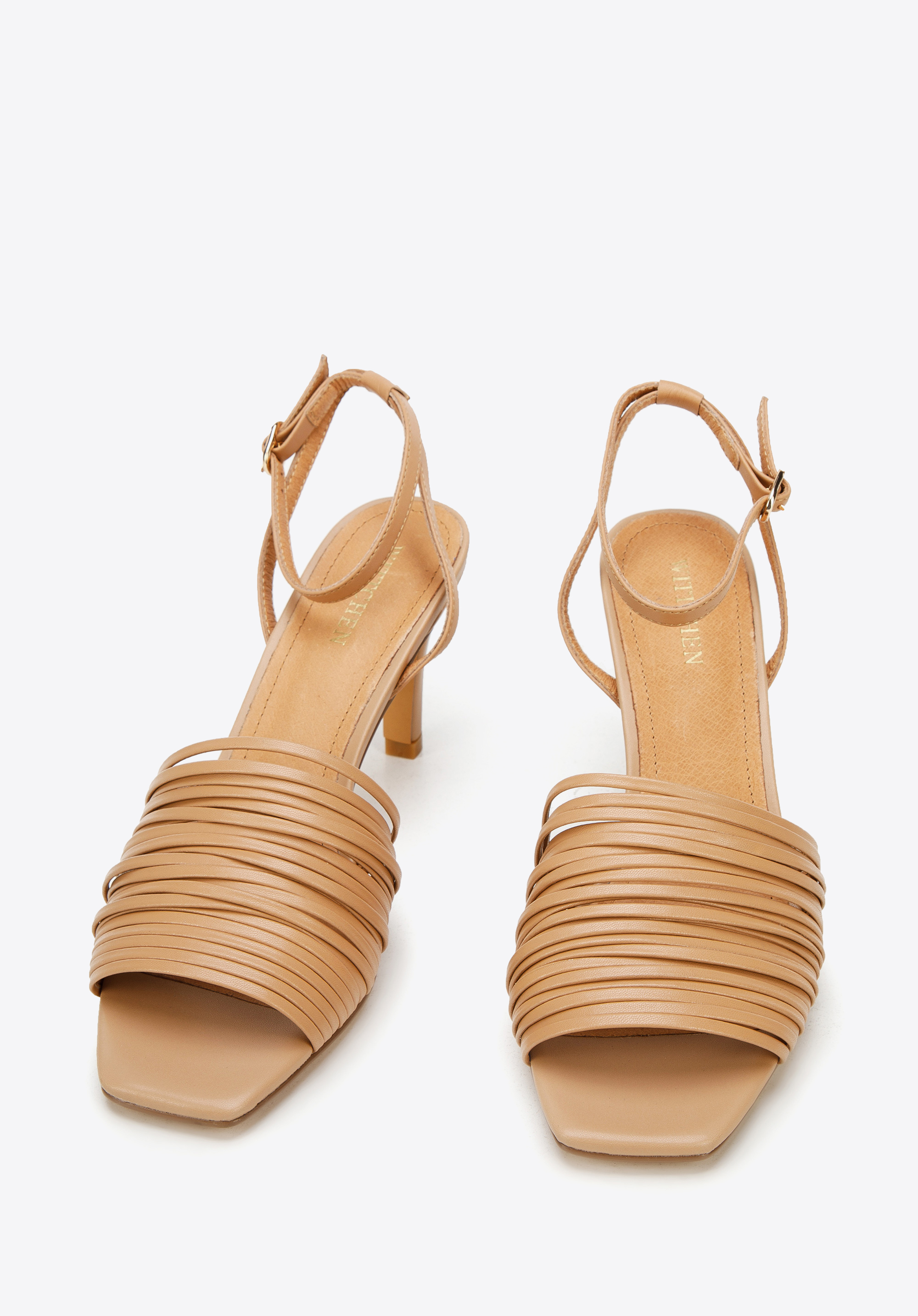 Äußerst feminine Sandaletten für besondere Anlässe. Mögen Sie Sandaletten mit Riemen? Dieses Modell wurde mit den kleinen Riemchen verziert. Der schmale Riemen, der um den Knöchel geschnallt wird, betont den Fuß. Der halbhohe Stöckelabsatz macht die Silhouette schlanker und verleiht ihr einen eleganten Charakter. Diese Sandaletten sind perfekt für Sommerpartys und den Abend. Dieses Modell passt zu einem kleinen Schwarzen oder zu weiten Jeans und einem lässigen T-Shirt. Die Sandaletten aus Leder mit Stöckelabsatz sind sexy und zugleich klassische Schuhe, die Ihnen jahrelang dienen werden.