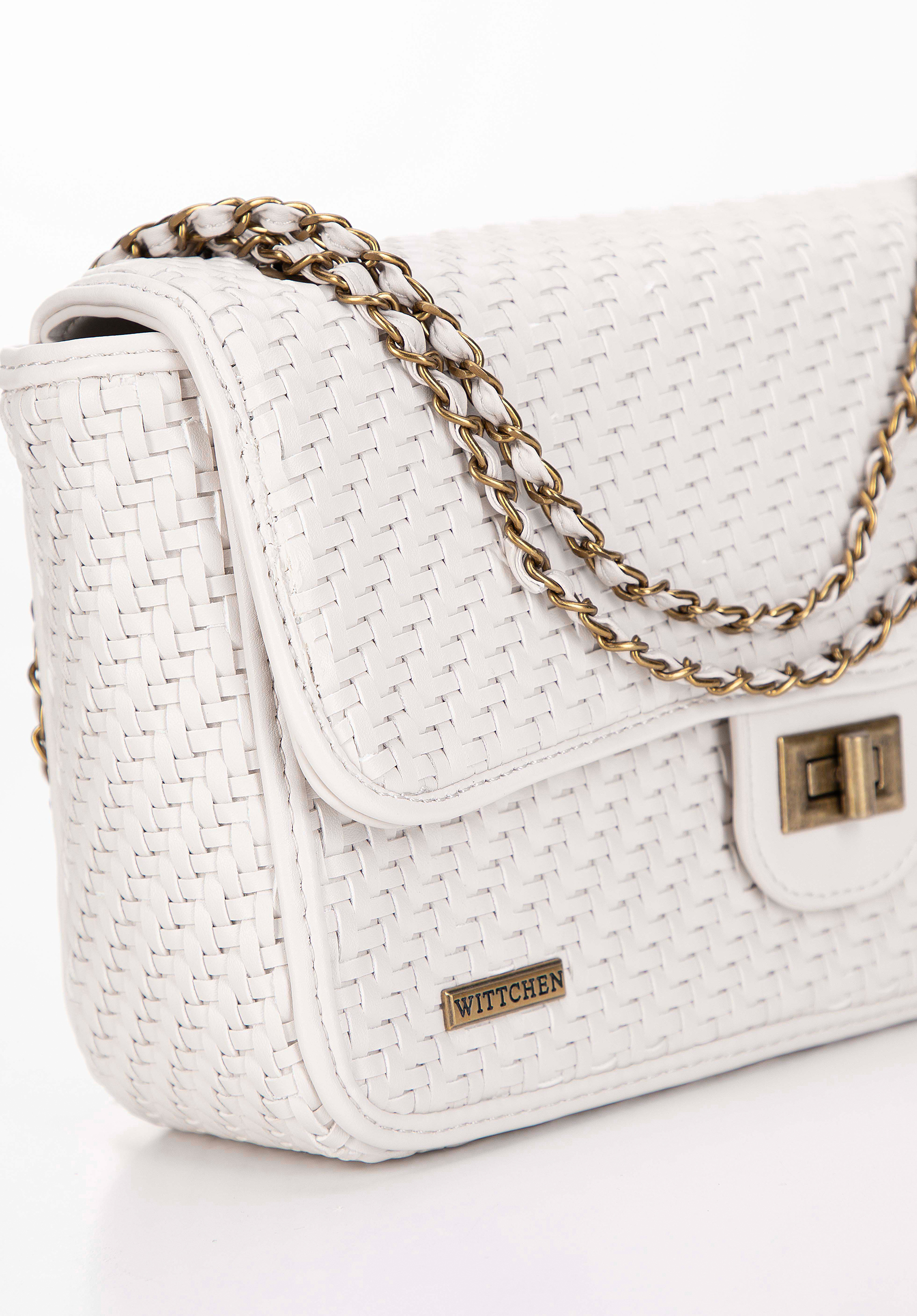 Diese raffinierte kleine Handtasche transportiert Sie mit stilvoller Leichtigkeit vom Tag in die Nacht. Dieses aus synthetischem Material mit Hahnentrittmuster gefertigte Accessoire ist mit einem hochglänzenden Kettenschulterriemen verziert. Mit zwei Taschen und einem kleinen Innenraum, in dem Sie ein Portemonnaie, ein Telefon, Handcreme und einige andere wichtige Dinge unterbringen können, passt diese bezaubernde Klappentasche mit bedruckter Struktur gut zu farbenfroher Kleidung und belebt alle dezenten und klassischen Kleidungsstücke und verwandelt sie in stilvolle Outfits. Die Damentasche mit Kettenklappe ist eine tolle Wahl für Frauen, die einzigartige Accessoires mögen.