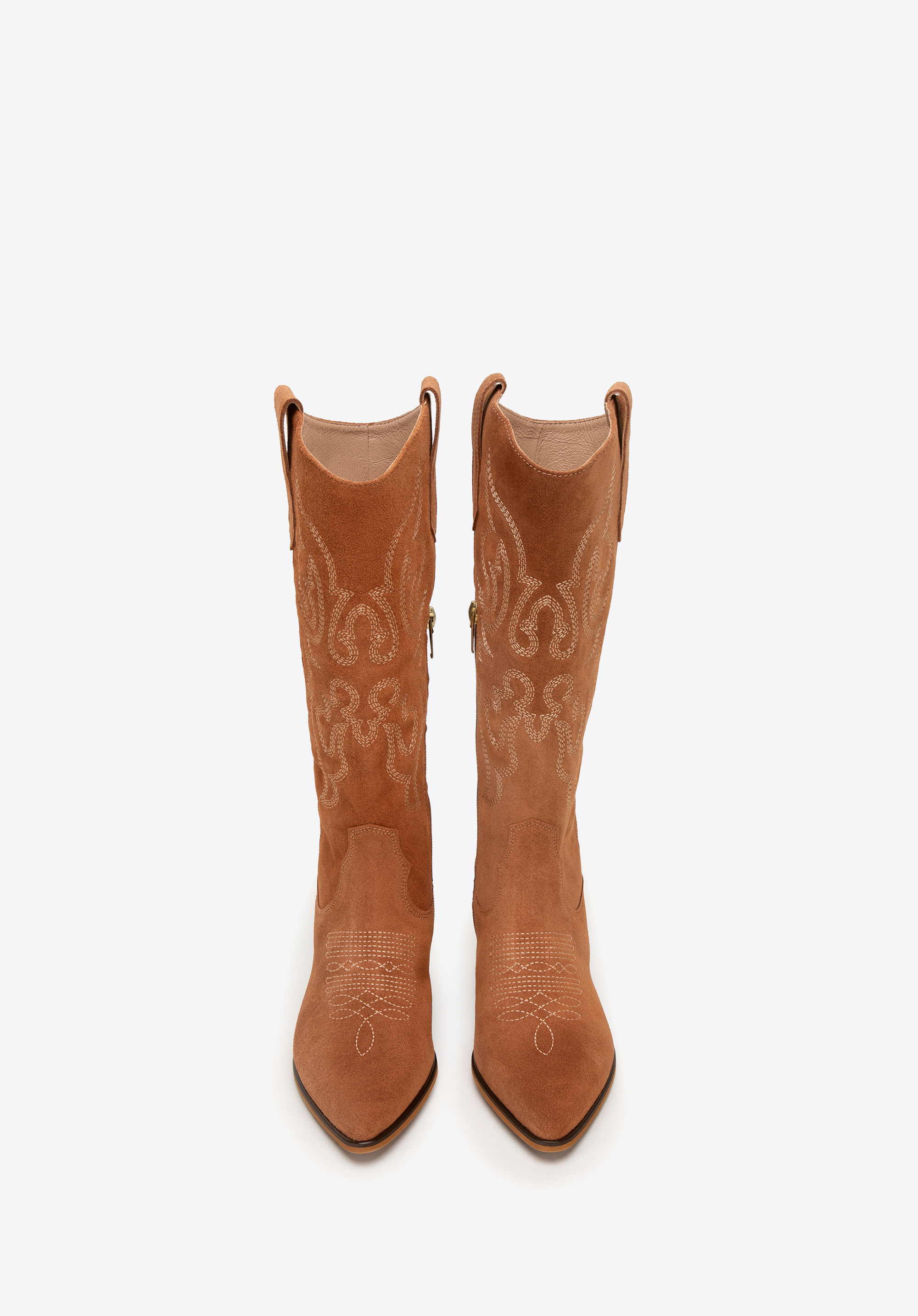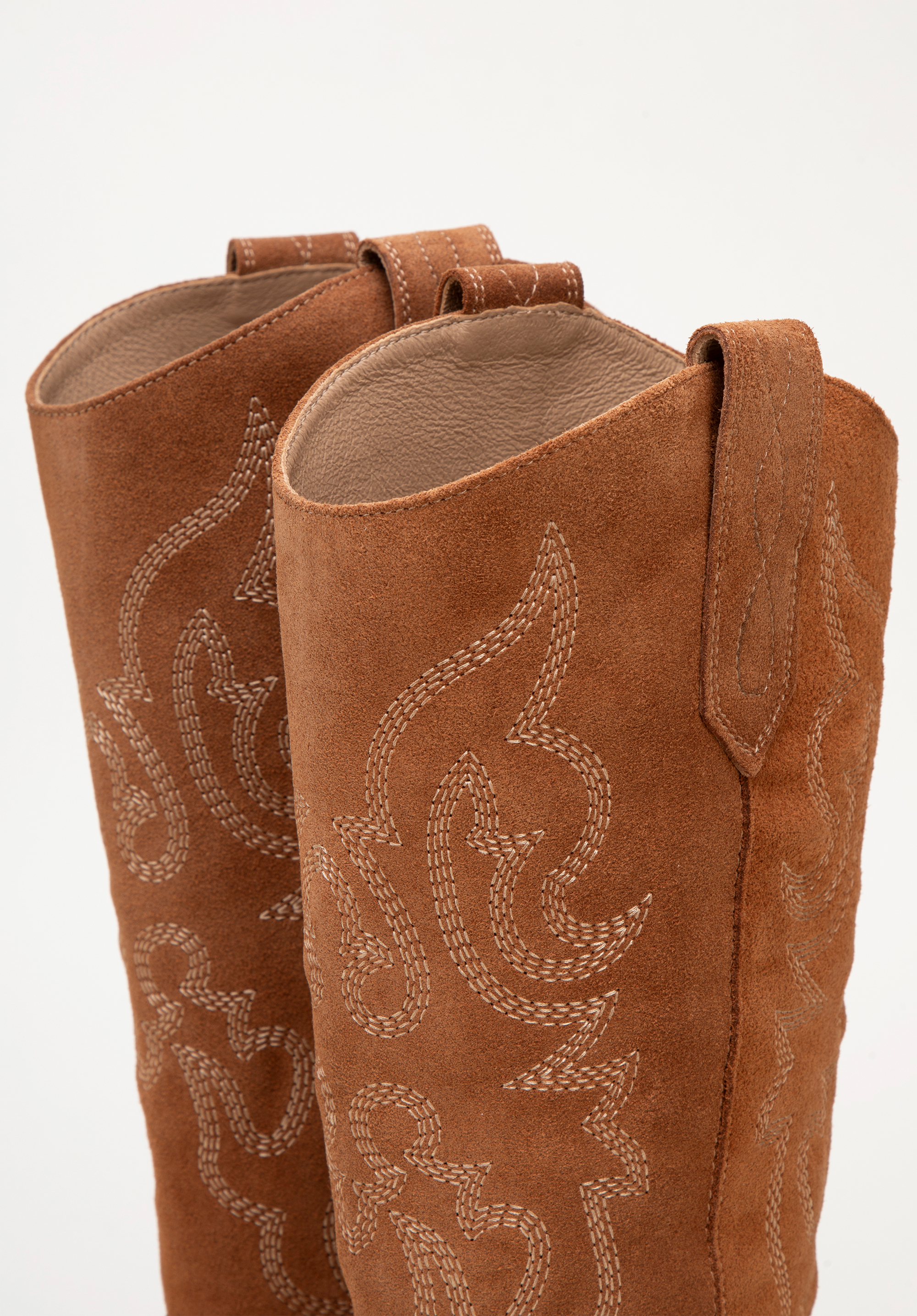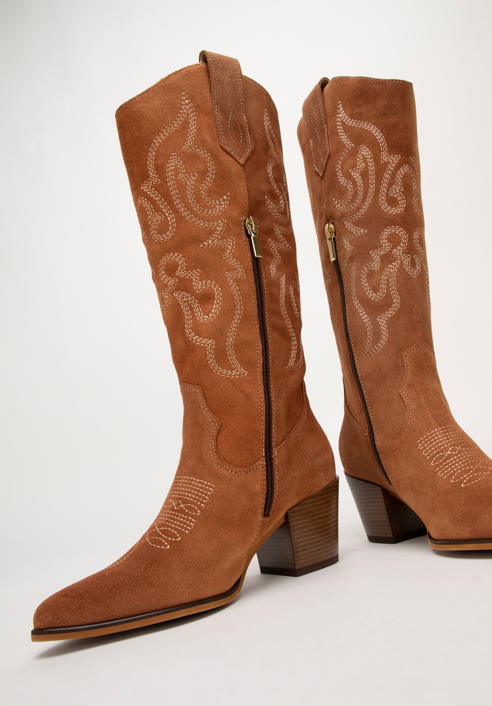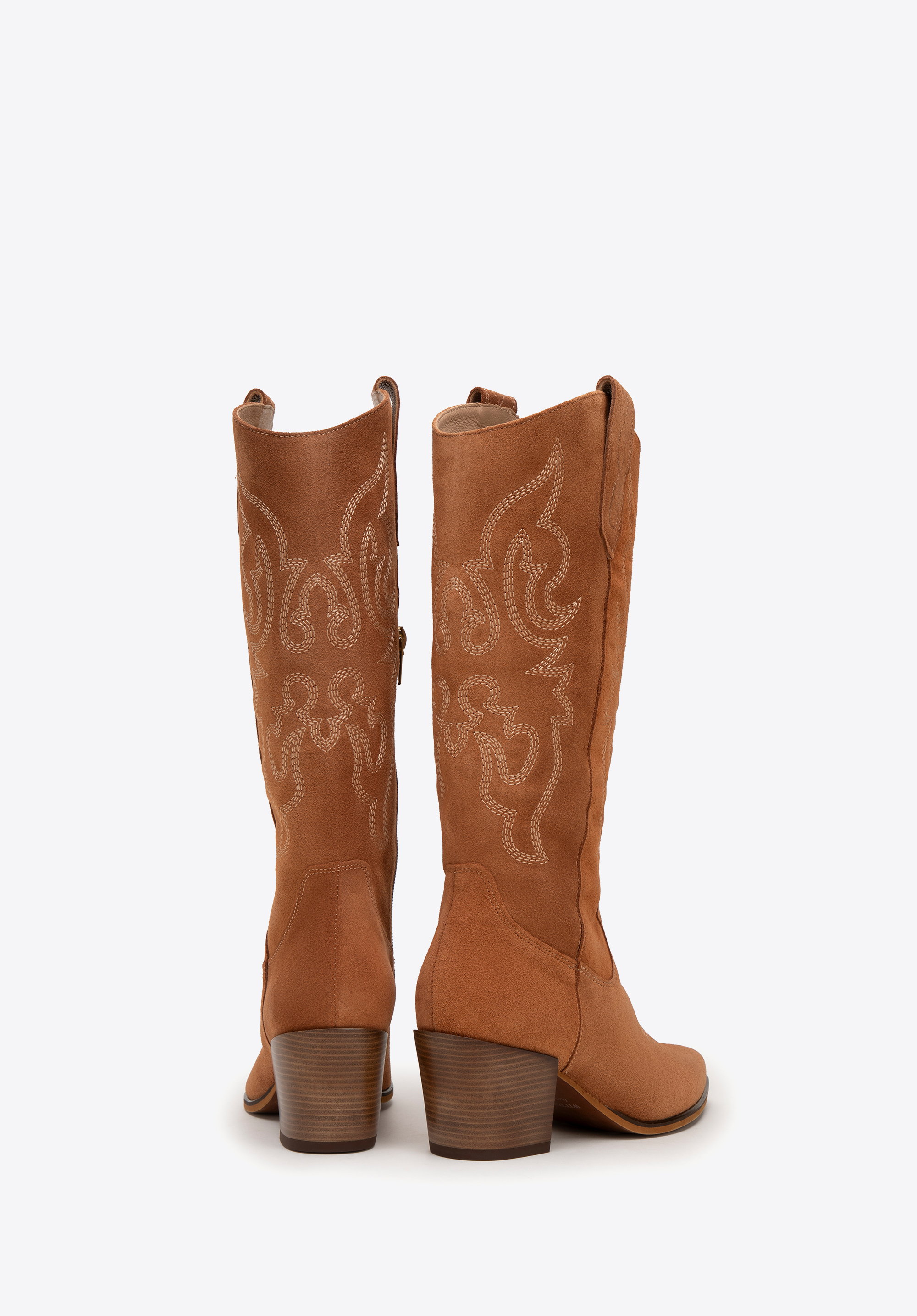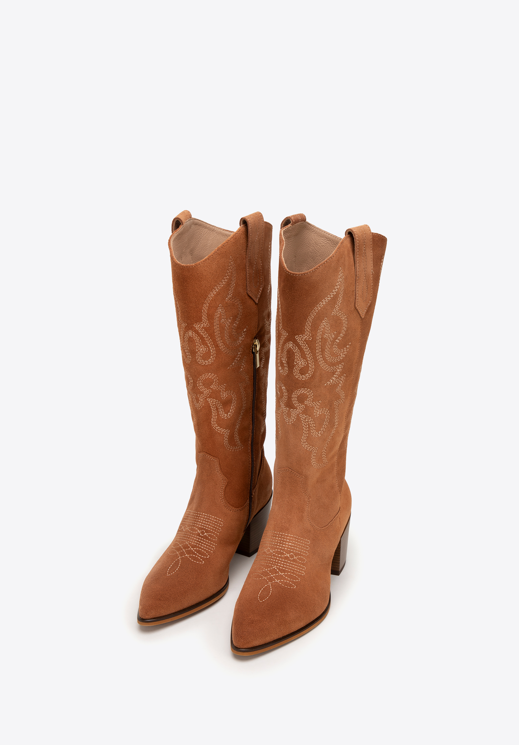 - Stilvolle Details: Die kniehohen Wildlederstiefel sind mit dezenten Stickereien und Nähten verziert, die ihnen einen einzigartigen Charakter verleihen.