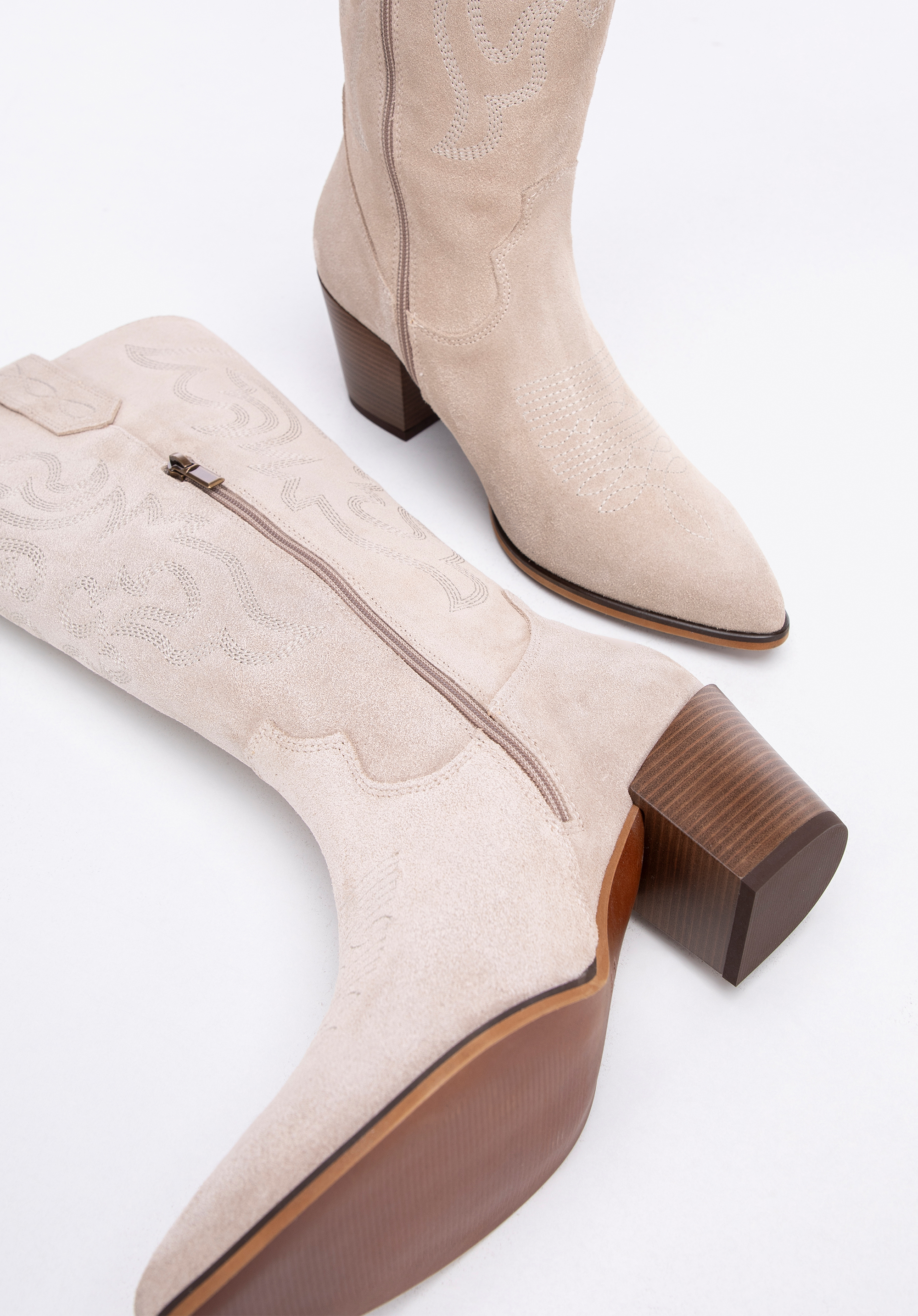 Cowboystiefel aus Wildleder mit Stickerei Farbe: hellbeige
