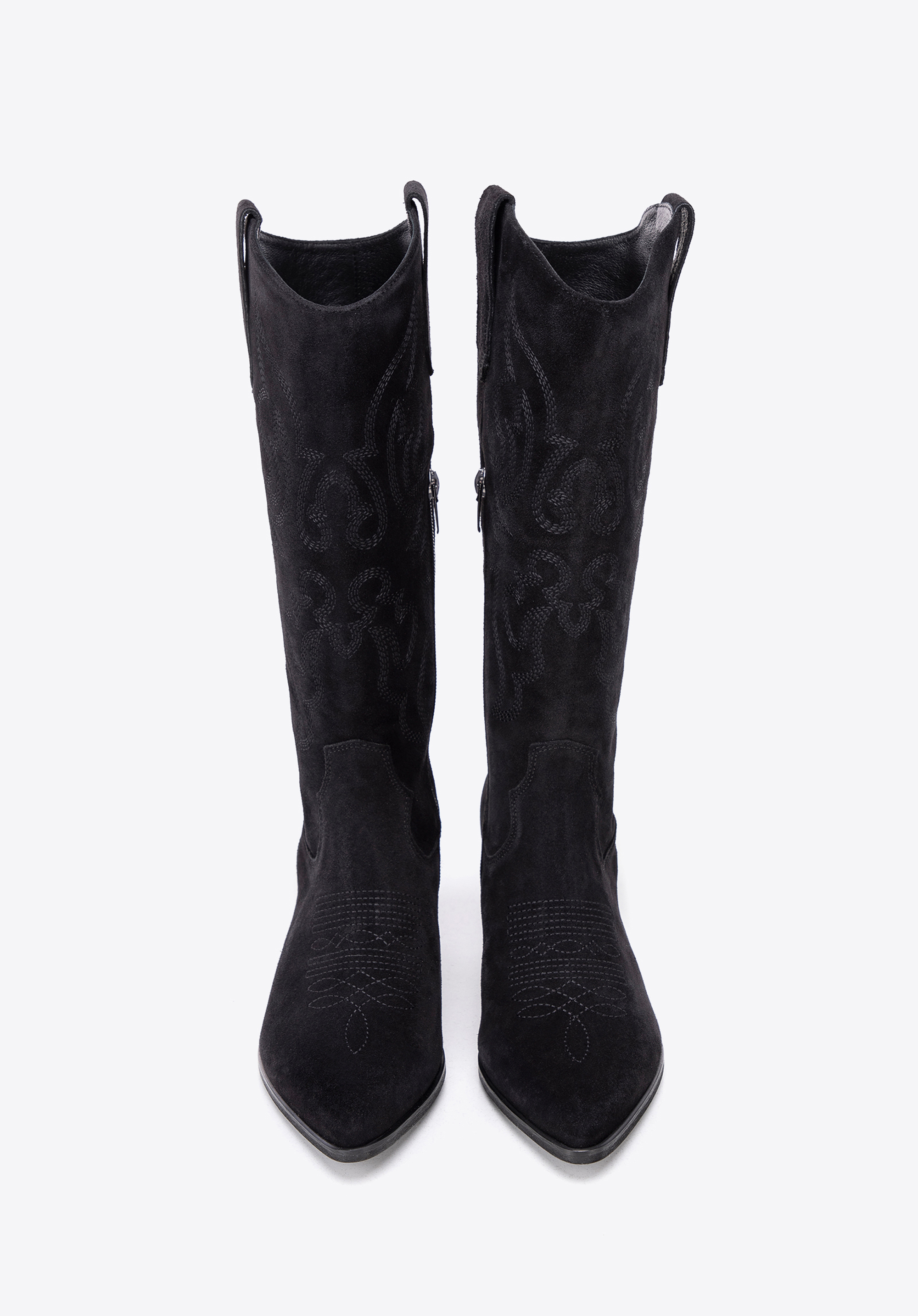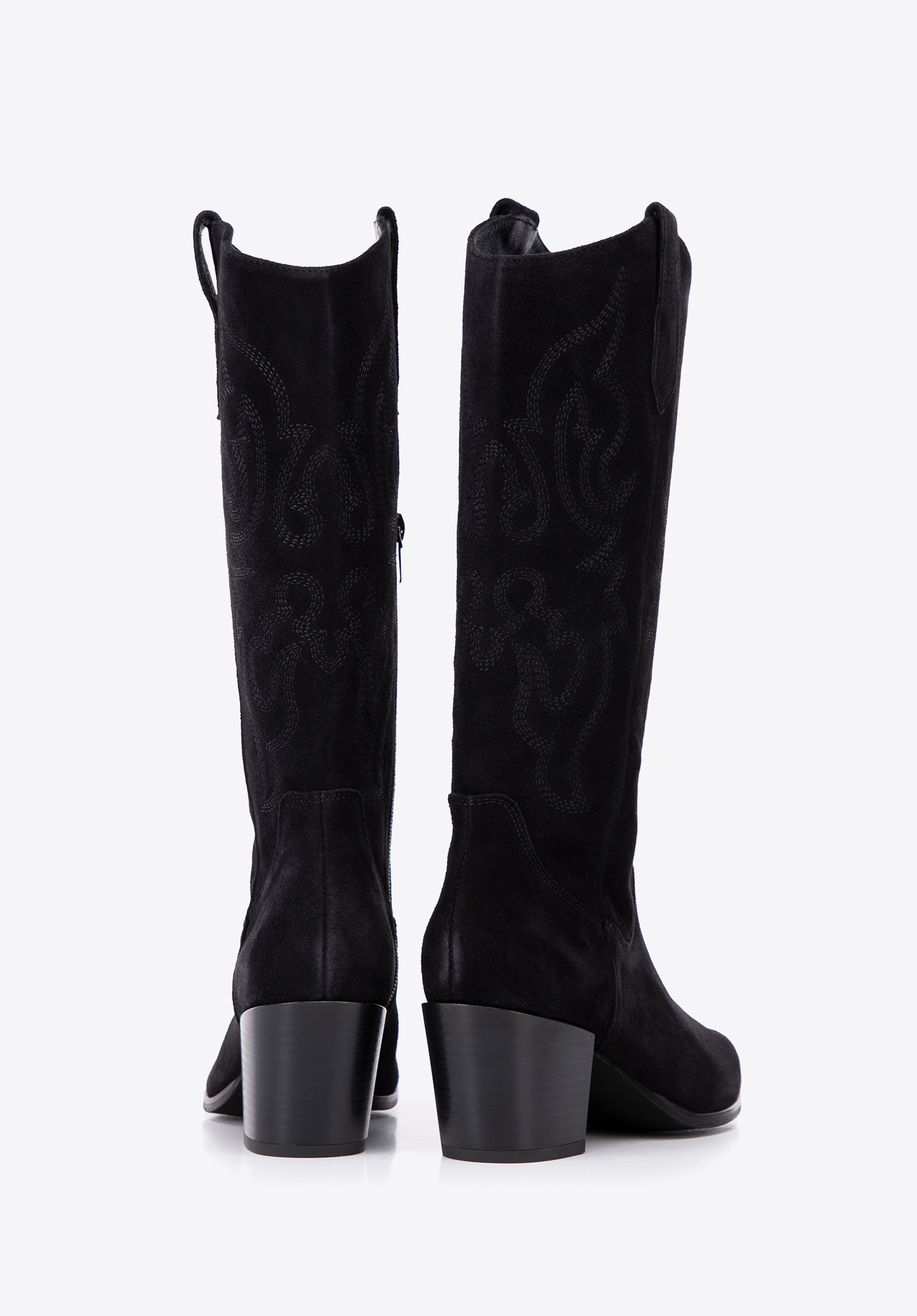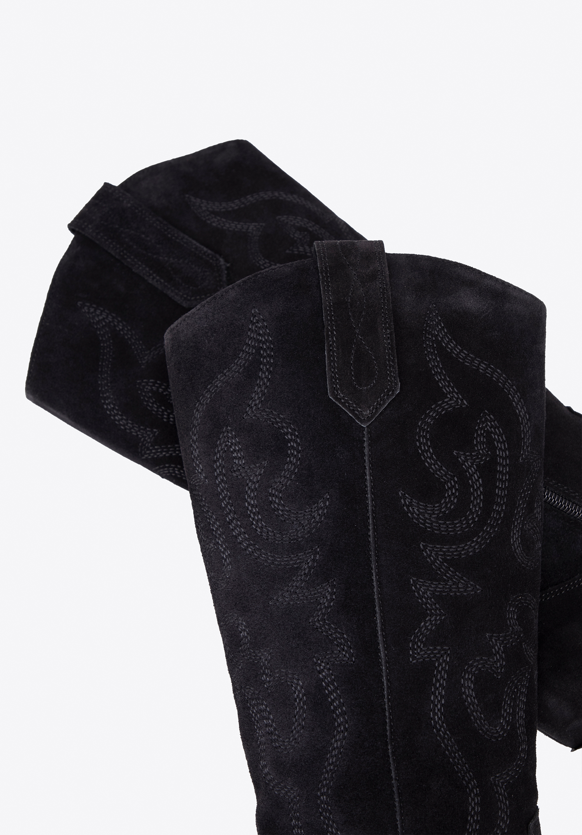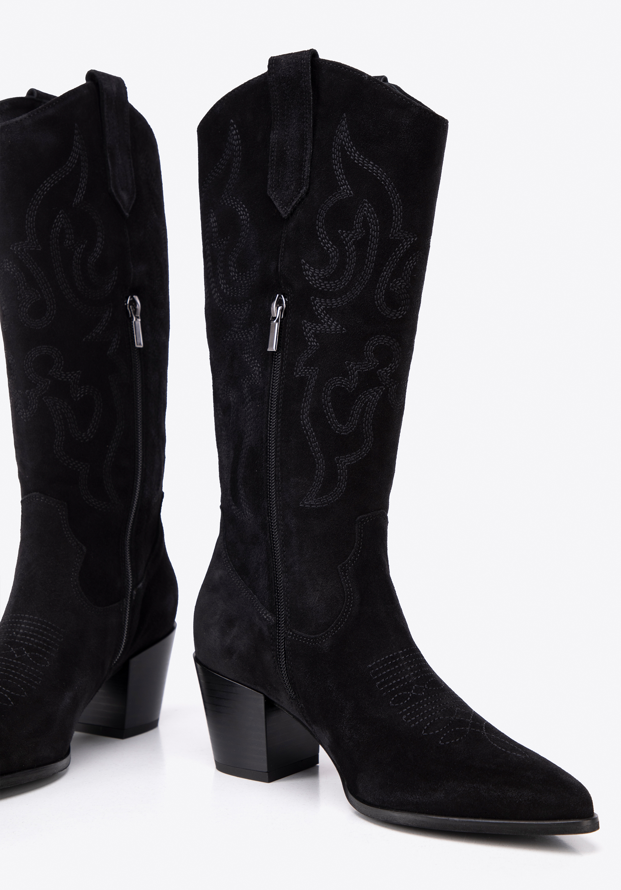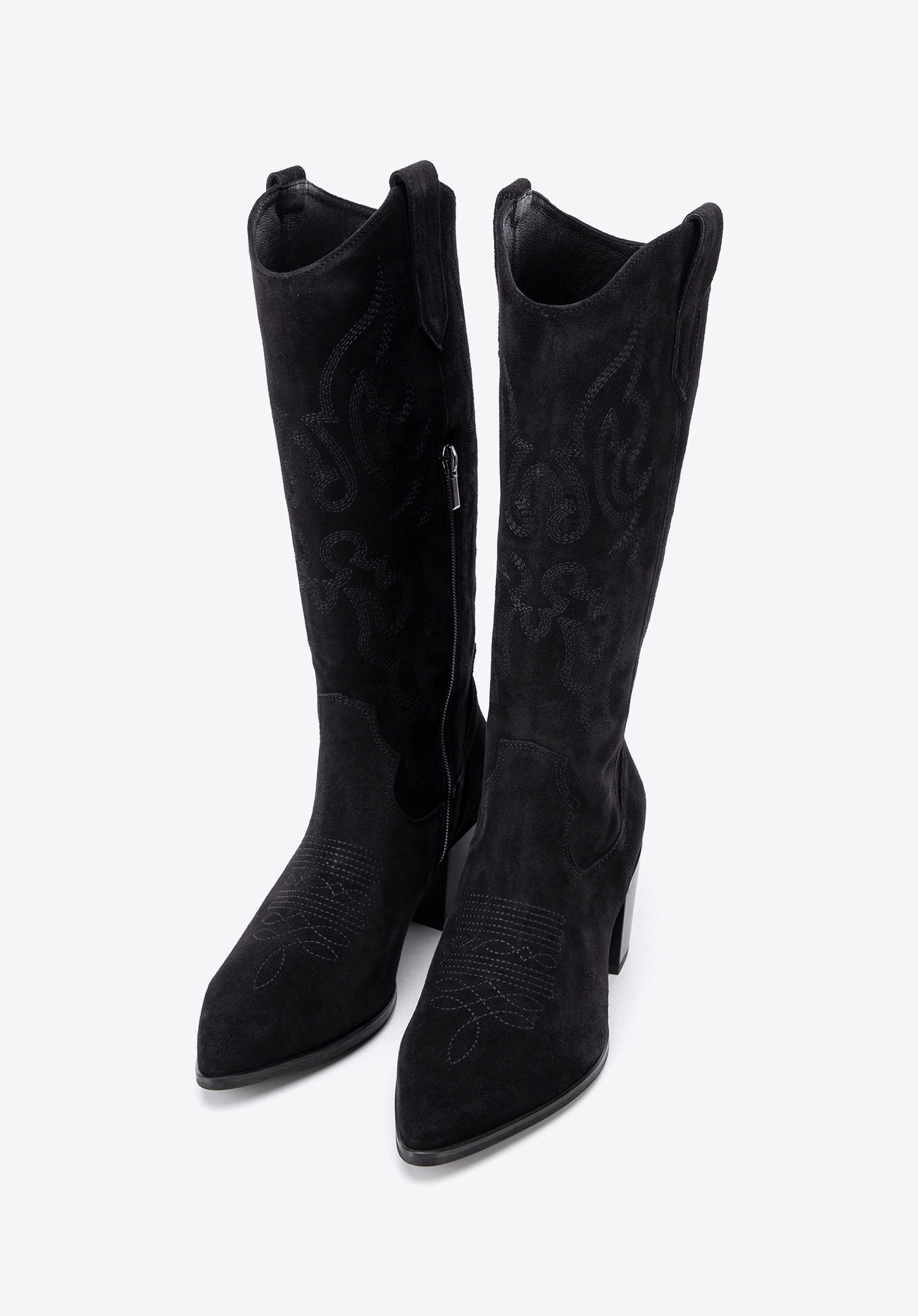 - Stilvolle Details: Die kniehohen Wildlederstiefel sind mit dezenten Stickereien und Nähten verziert, die ihnen einen einzigartigen Charakter verleihen.