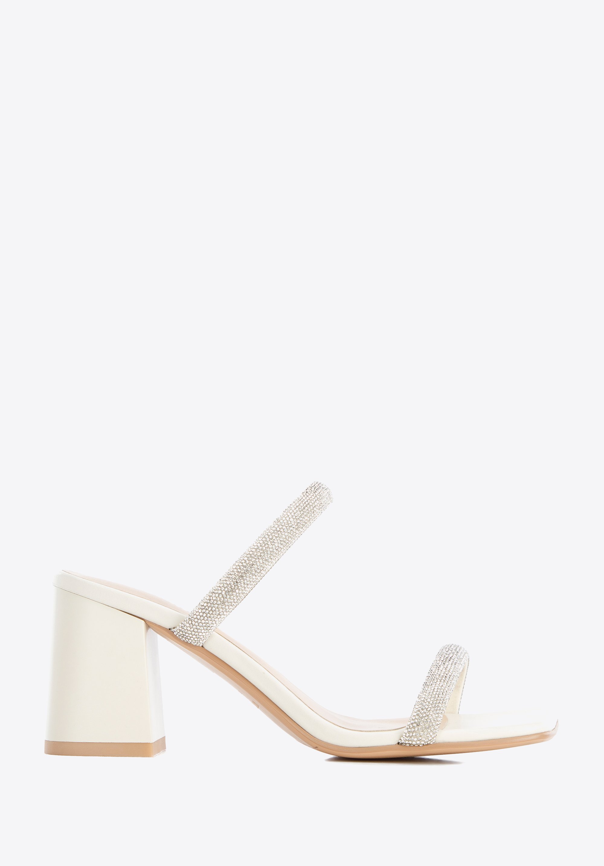 Diese Stöckelschuhe sind eine gute Wahl für Liebhaber von glänzenden Accessoires. Sie sind aus hochwertigem Naturleder gefertigt. Die dünnen Riemen, die den Fuß halten, sind mit kleinen Kristallen verziert, die ihnen ein schickes Aussehen verleihen. Der Blockabsatz ist sehr stabil, so dass Sie viele Stunden bequem in ihnen laufen können. Dieses Modell passt perfekt sowohl zu einem schlichten Kleid als auch zu einer Hose mit weitem Bein und einem Hemd. Die Pantoletten aus Leder mit glänzenden Riemen sind ein originelles Accessoire, das mehr als einen Blick auf sich ziehen wird.