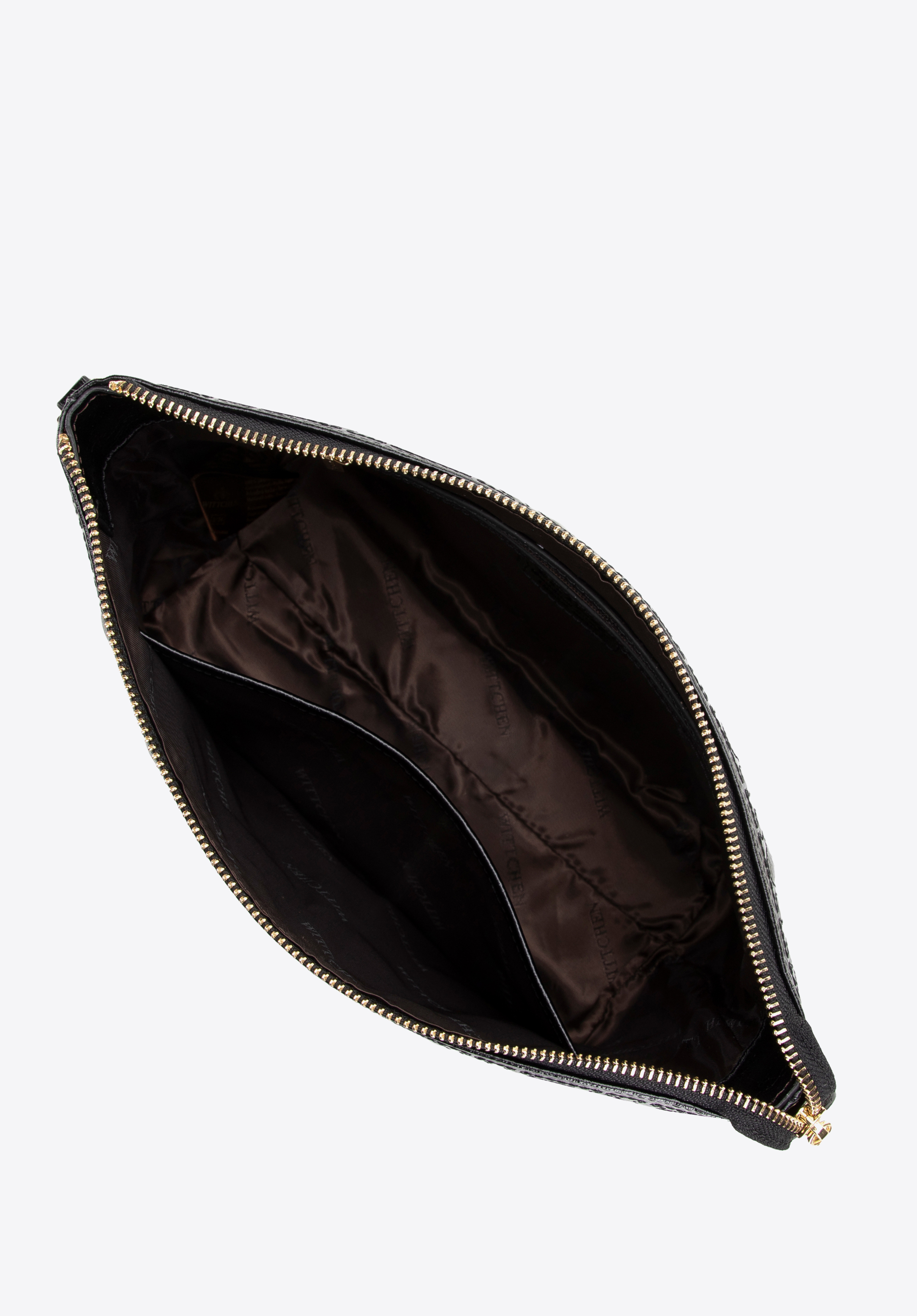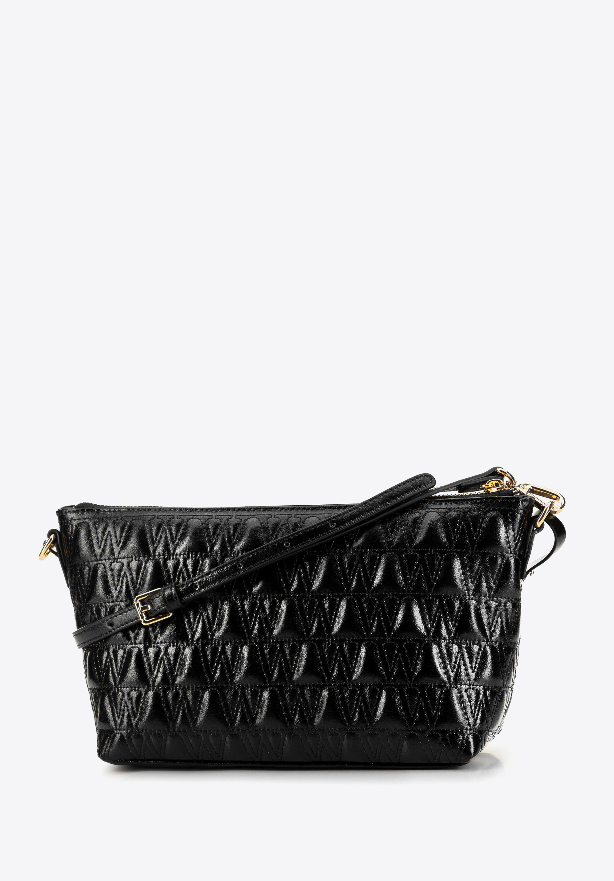 Entdecken Sie die luxuriöse Crossbody-Damenhandtasche aus hochwertigem Naturleder. Sie ist mit einem soliden Reißverschluss ausgestattet, der die Sicherheit Ihrer persönlichen Gegenstände garantiert. Die gesamte Tasche wird durch eine abnehmbare Tasche mit dem Logo des Herstellers ergänzt, die als dekoratives Element oder als separates Accessoire verwendet werden kann. Es handelt sich um ein elegantes und praktisches Accessoire, das in jeder Situation perfekt funktioniert.