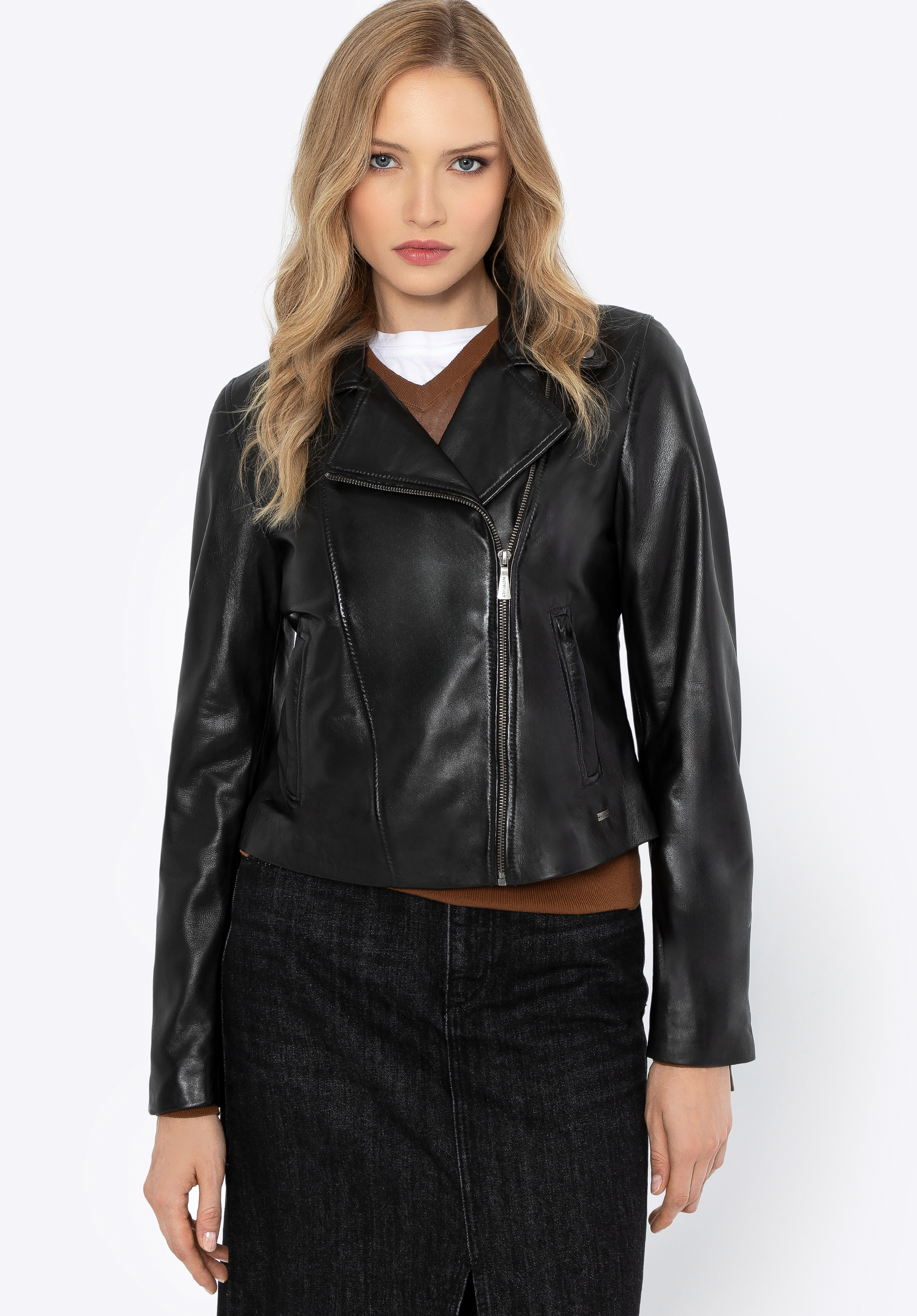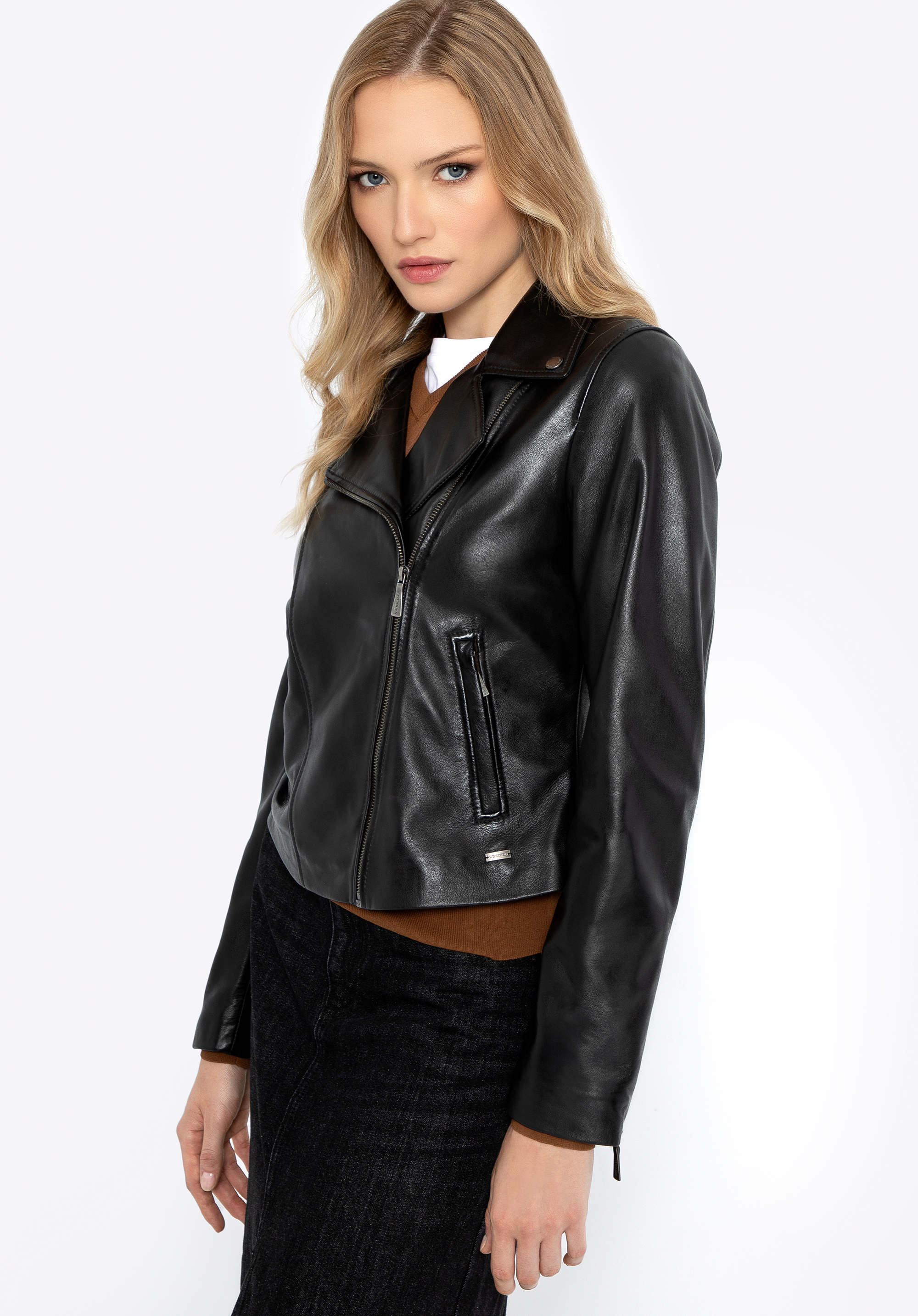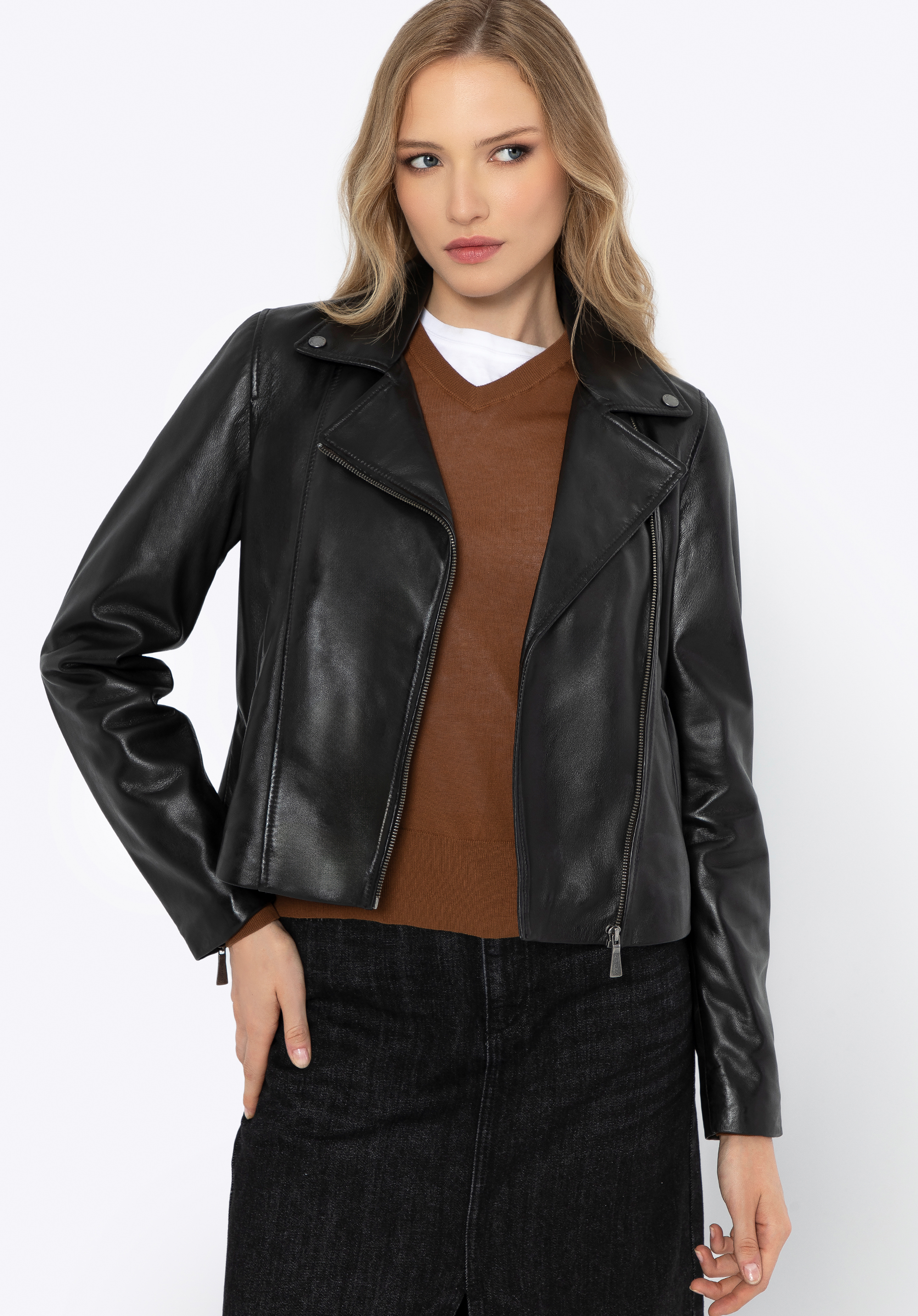 Damen Bikerjacke aus Leder Farbe: schwarz