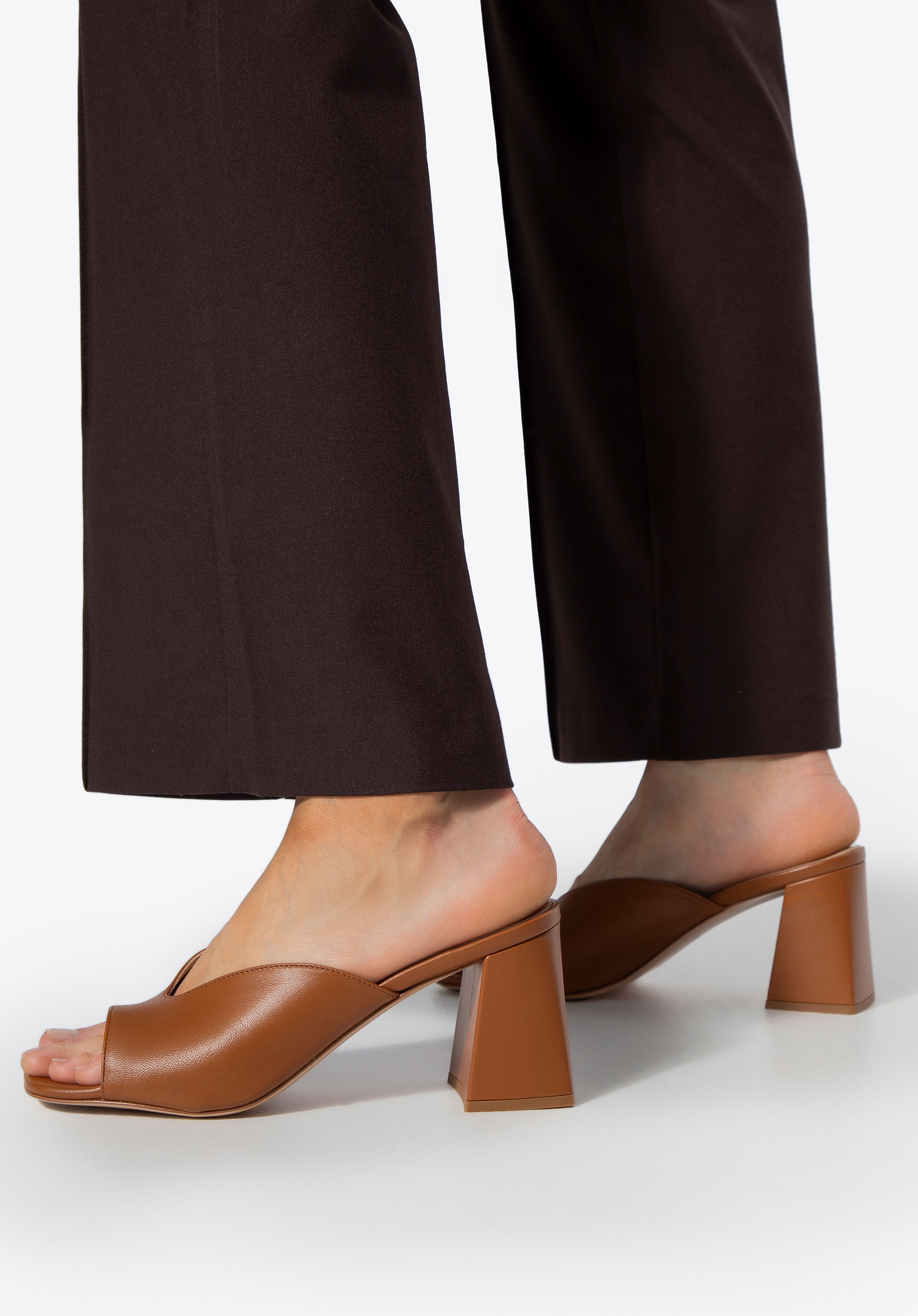 Damen Echtleder Pantoletten mit Absatz braun