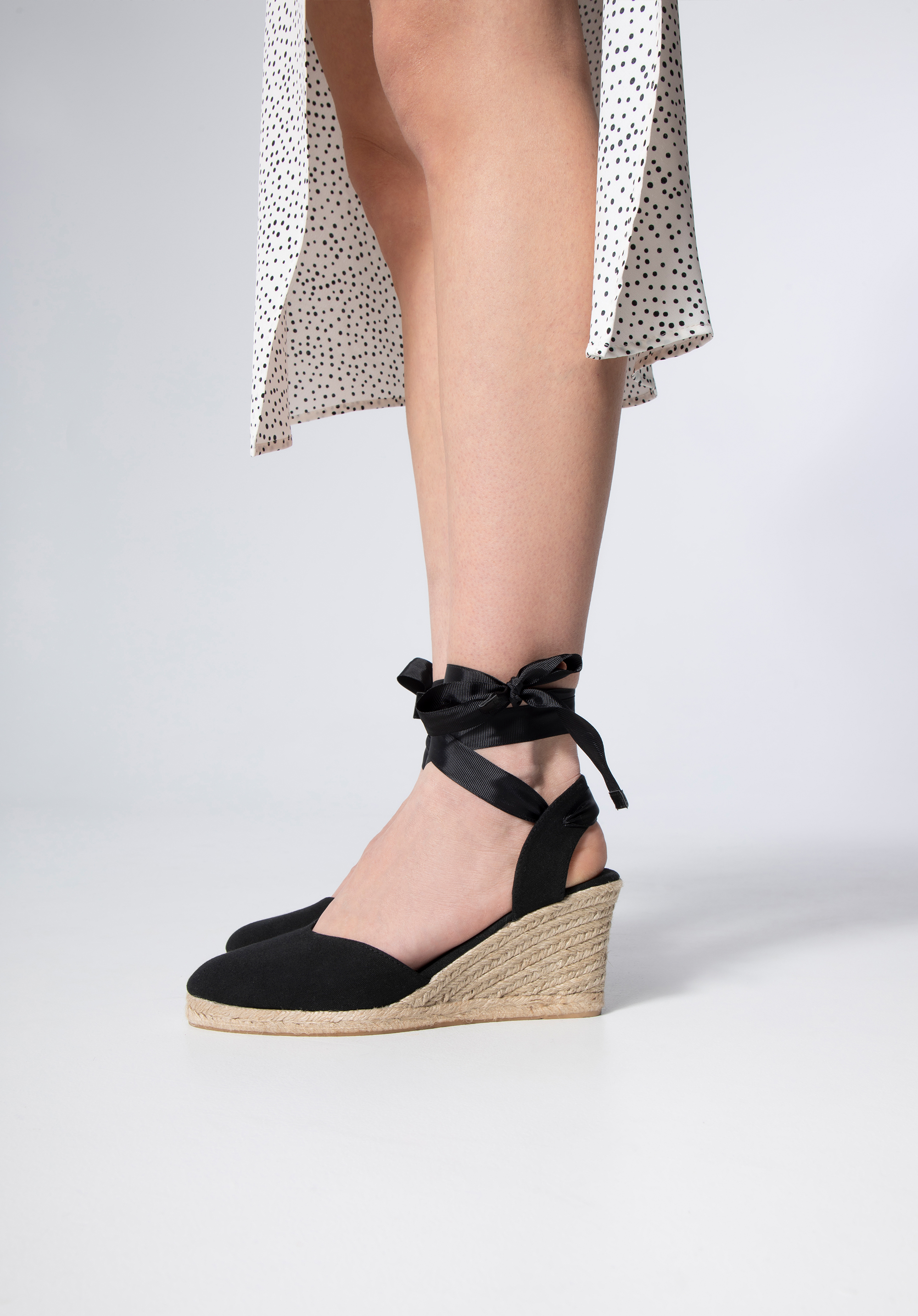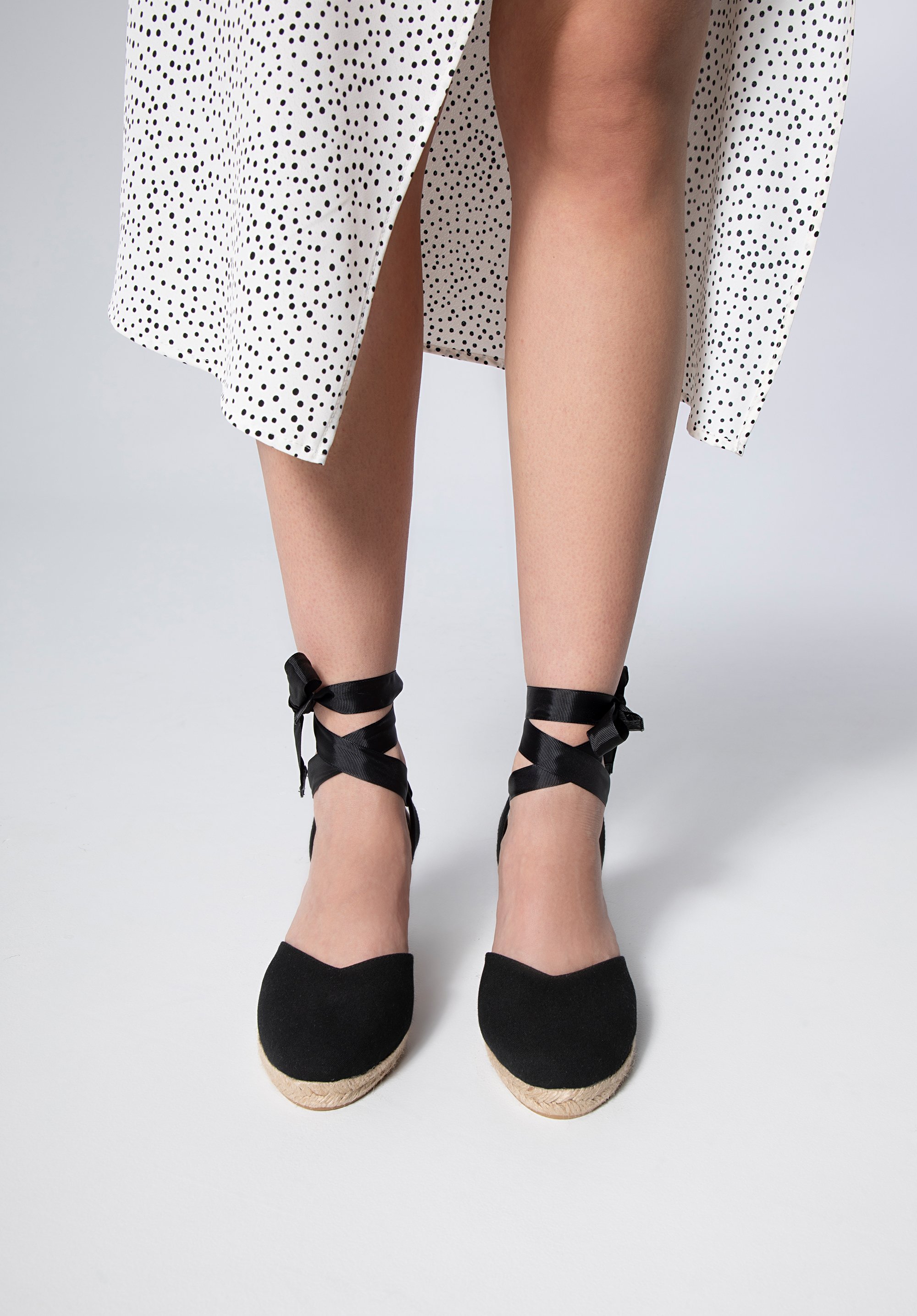 Espadrilles sind eine modische Ergänzung des Sommerstylings. Der klassische Schnitt ist mit einem V-förmigen Ausschnitt verziert, der den Fuß schön akzentuiert. Geflochtene Riemen über dem Spann sorgen für einen Hauch von Urlaub. Der Absatz mit einem Bändchen am Knöchel hält den Schuh sicher an seinem Platz. Tragen Sie sie zu einem Boho-Look oder verändern Sie den Look Ihrer Lieblings-Jeans-Shorts und Ihres T-Shirts. Gestufte Damen-Espadrilles mit Ausschnitt bringen einen neuen Stil in Ihre Garderobe.