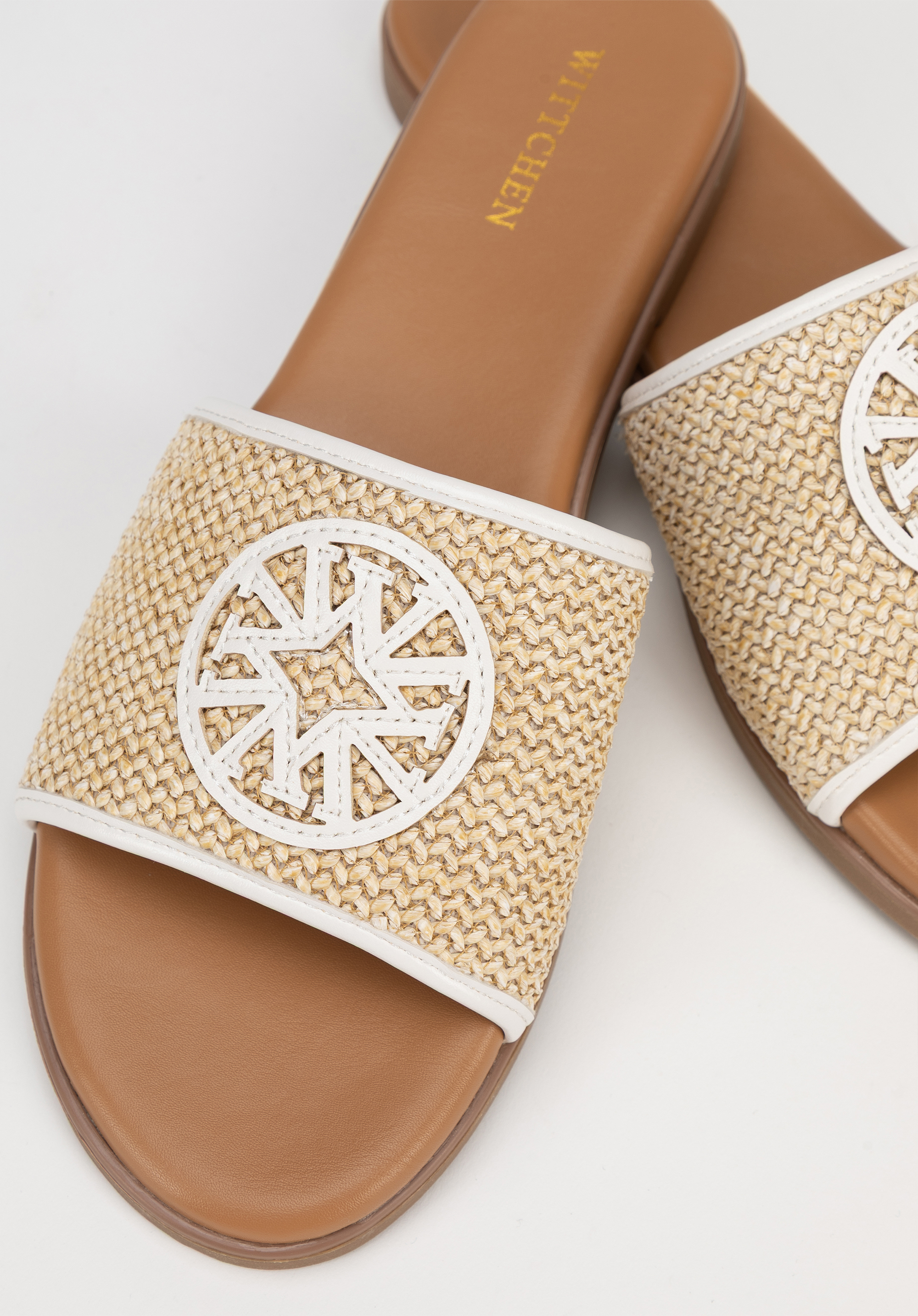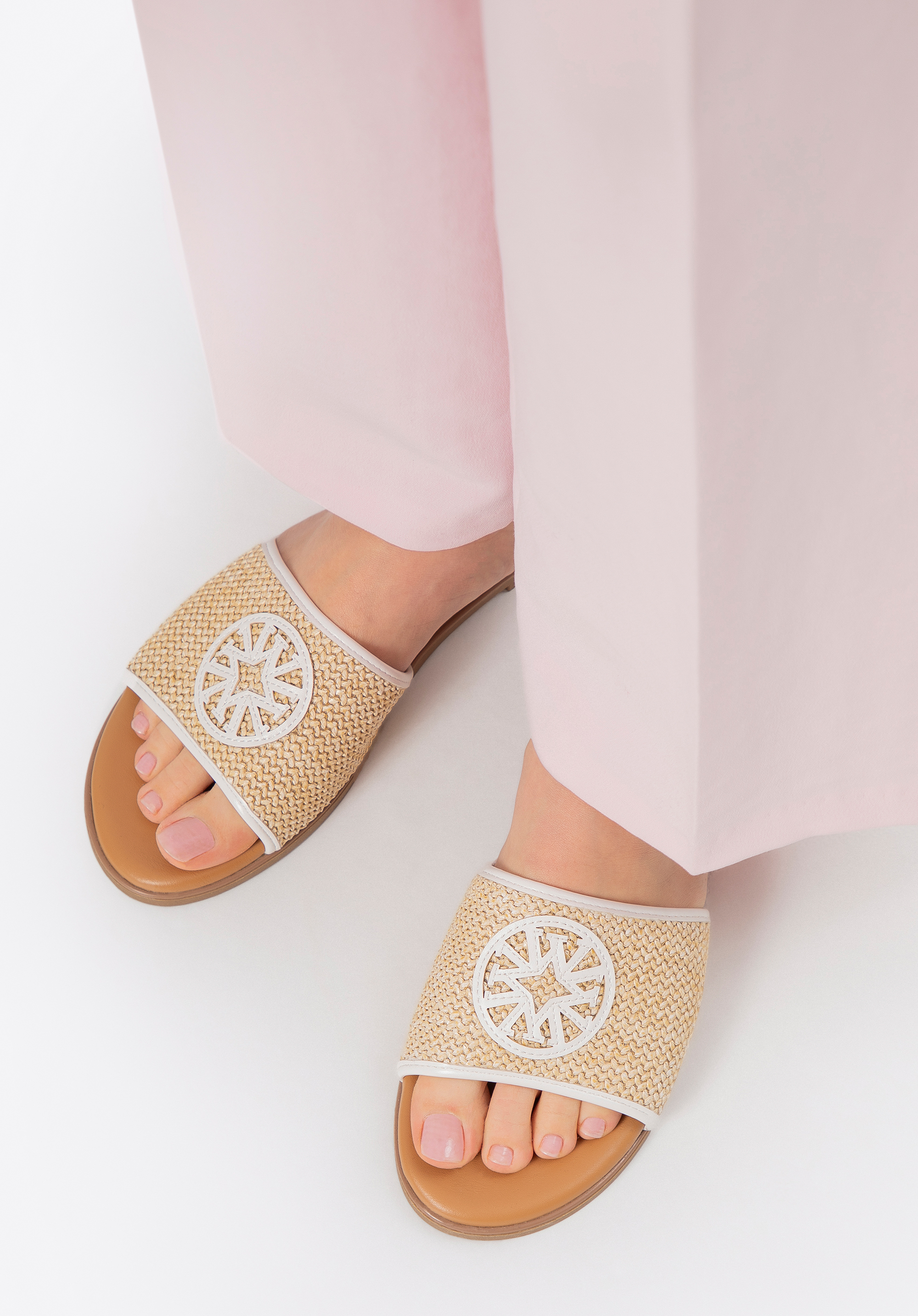 - Hersteller-Logo: Auf der Vorderseite der Flip-Flops platziert, ist es ein eleganter Akzent, der den Charakter des Schuhs unterstreicht.