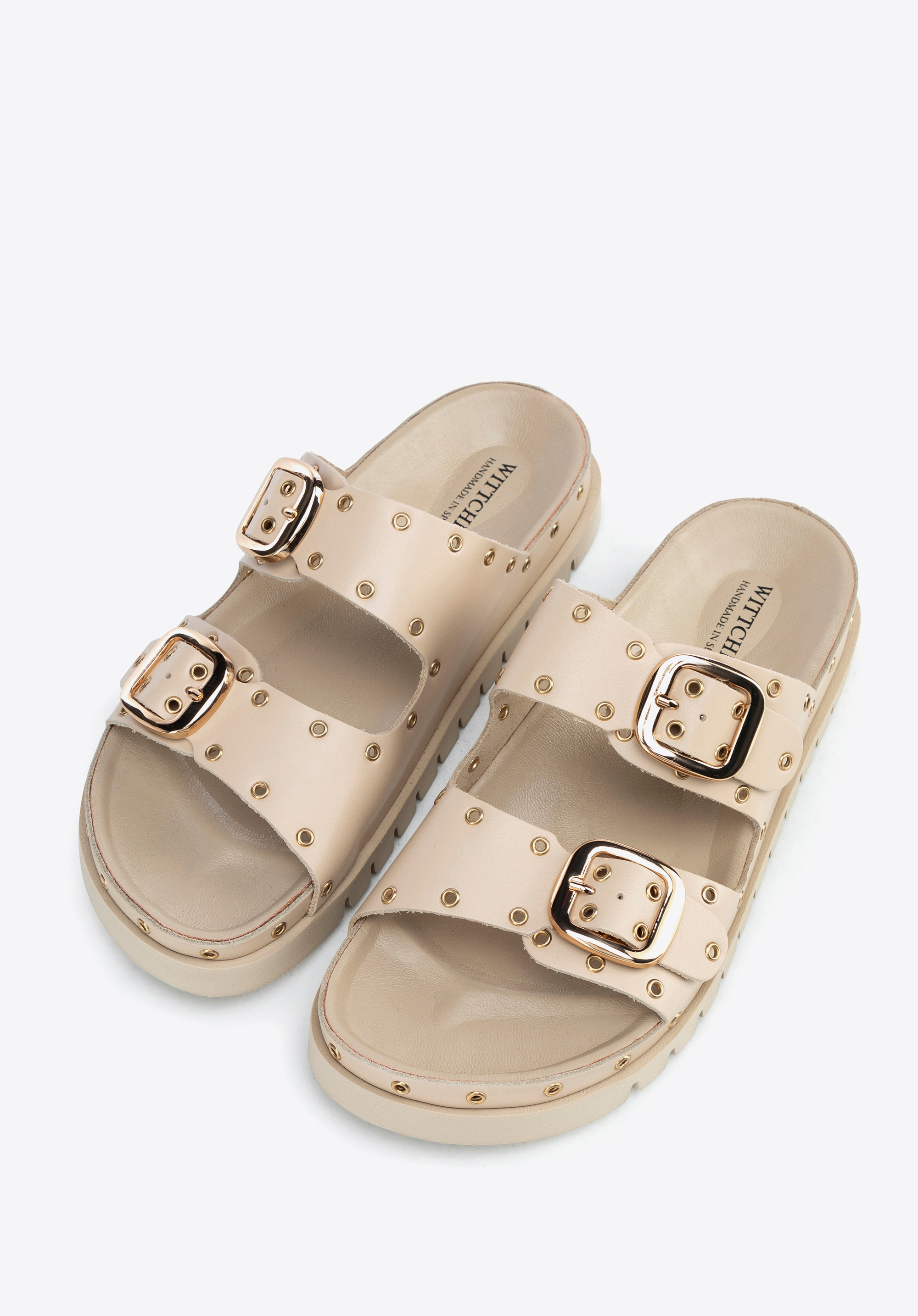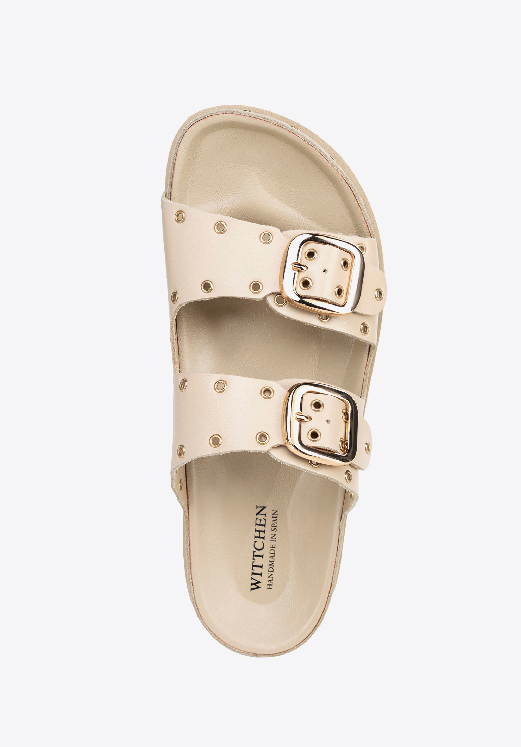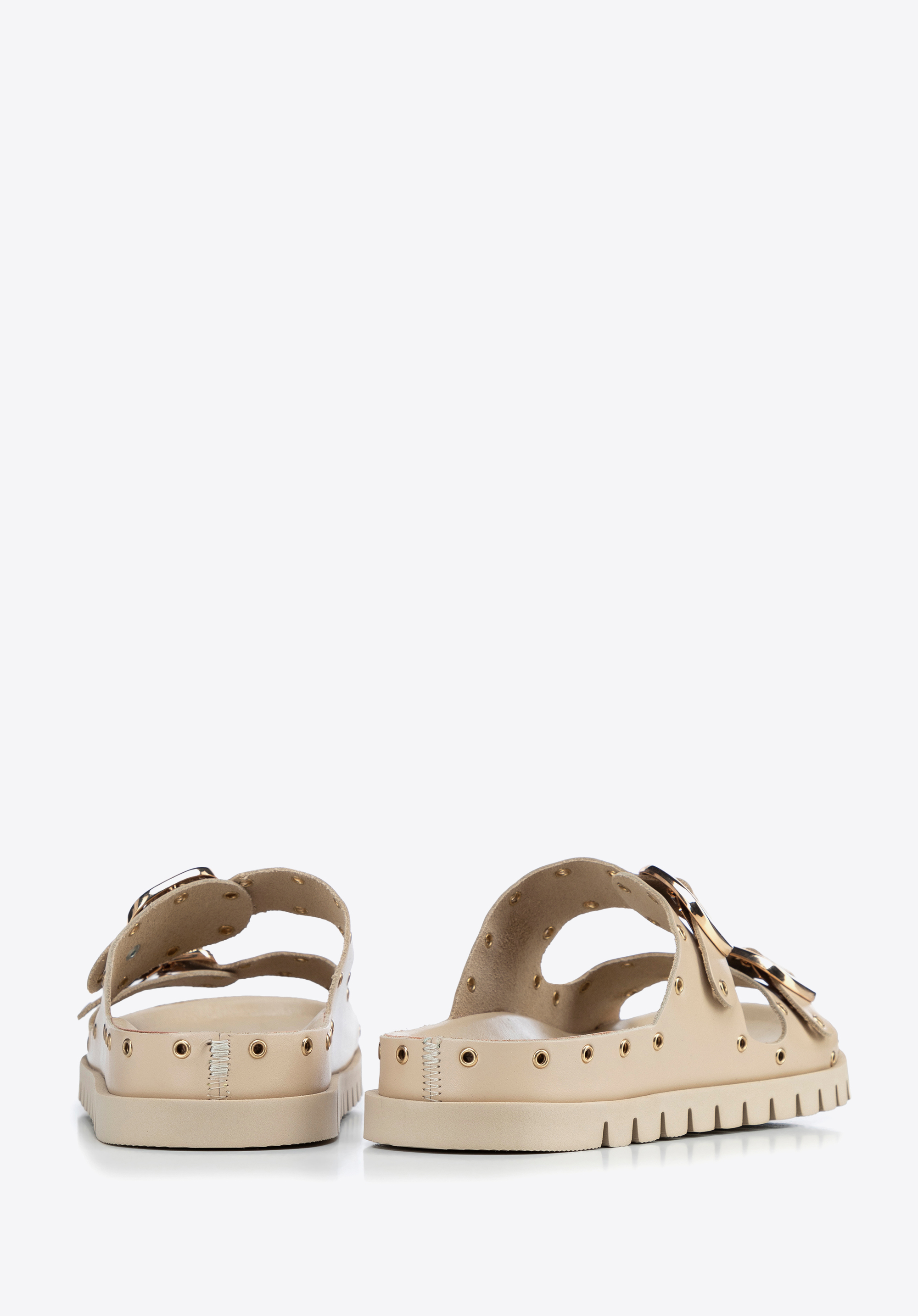 Damen-Flip-Flops aus Leder mit Metall-Details beige-gold