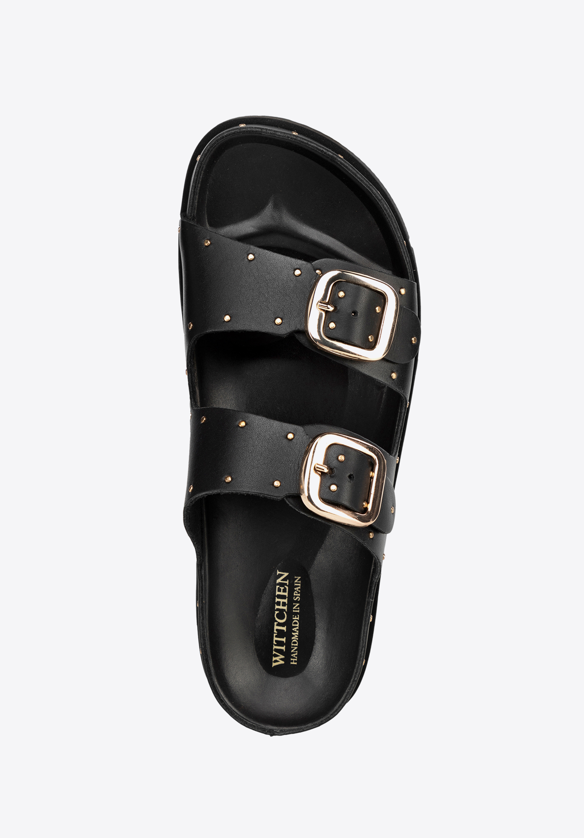 Leicht, feminin und voller Charakter – diese Damensandalen sind die perfekte Wahl für den Sommer. Sie werden in Spanien aus natürlichem Glattleder hergestellt und vereinen subtile Eleganz mit einem entspannten Sommergefühl. Ihr einzigartiges Design wird durch zwei breite Riemen mit metallischen Details hervorgehoben, die einen gewagten Touch verleihen. Verstellbare Schnallen sorgen für eine perfekte Passform, während die Slip-On-Konstruktion das Tragen erleichtert. Die mandelförmige Zehenpartie sorgt für eine schmeichelhafte Silhouette und das weiche Futter und die Innensohle garantieren ganztägigen Komfort.
