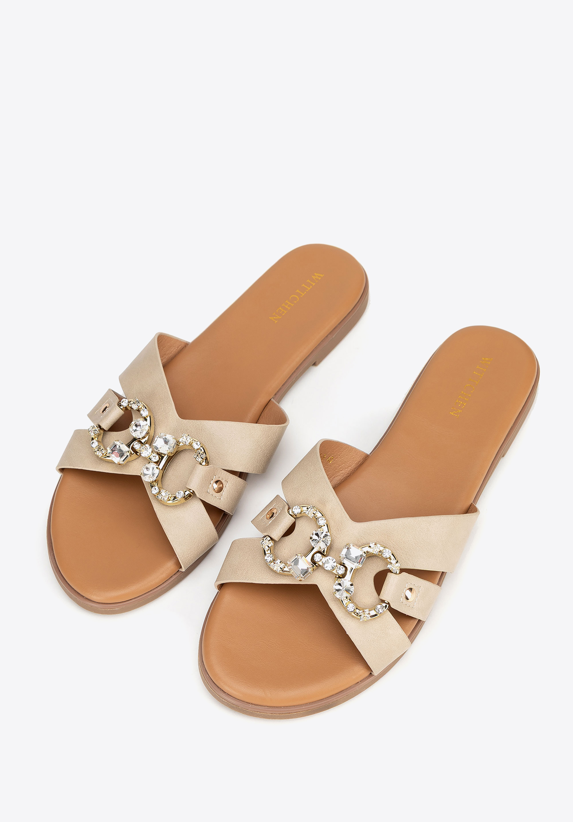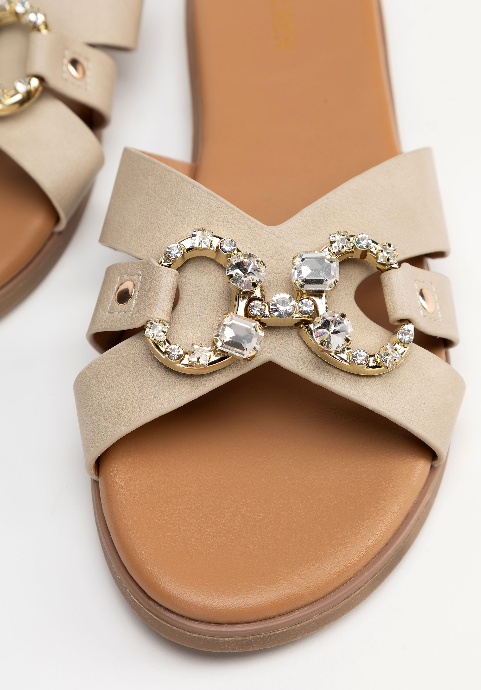 - Dekorative, glänzende Schnalle: Sie ist ein echter Blickfang und macht die Flip-Flops alltagstauglich.