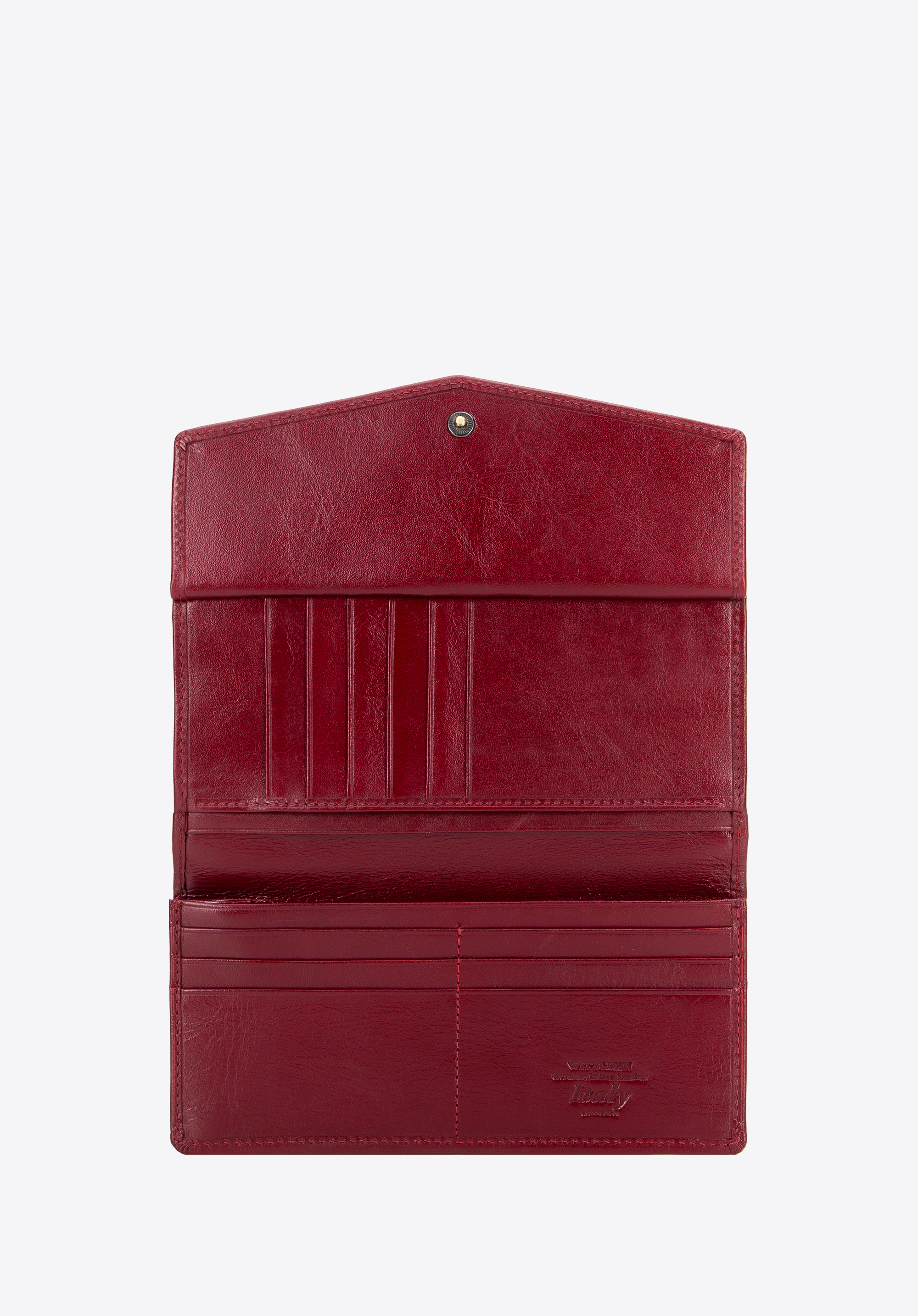Entdecken Sie dieses große Damenportemonnaie mit Überschlag im Clutch-Design – geschaffen für Frauen, die Eleganz, Ordnung und Premium-Qualität schätzen. Gefertigt aus weichem Naturleder begeistert es mit dezentem Glanz und luxuriöser Verarbeitung und verbindet klassisches Design mit Funktionalität. Dank der durchdachten Innenaufteilung bietet es praktischen Stauraum für alle wichtigen Dokumente, Karten und Bargeld und ist gleichzeitig eine stilvolle Ergänzung für Ihre Handtasche.