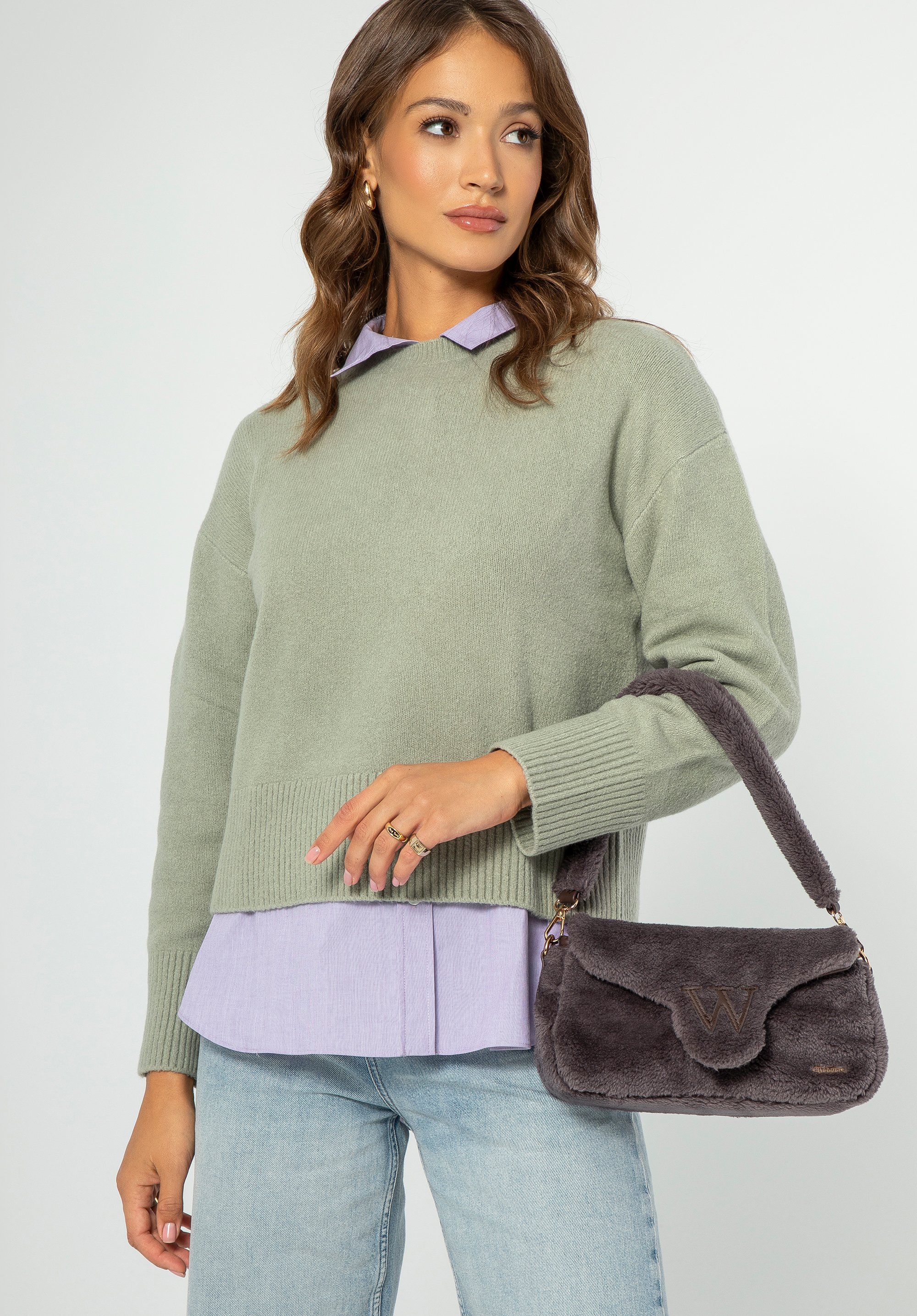 - Details : Auf der Klappe ist ein großer Buchstabe „W“ als Hinweis auf den Hersteller angebracht. Auf der Vorderseite der Handtasche ist ein dezentes Logo angebracht, das ihre Einzigartigkeit unterstreicht.