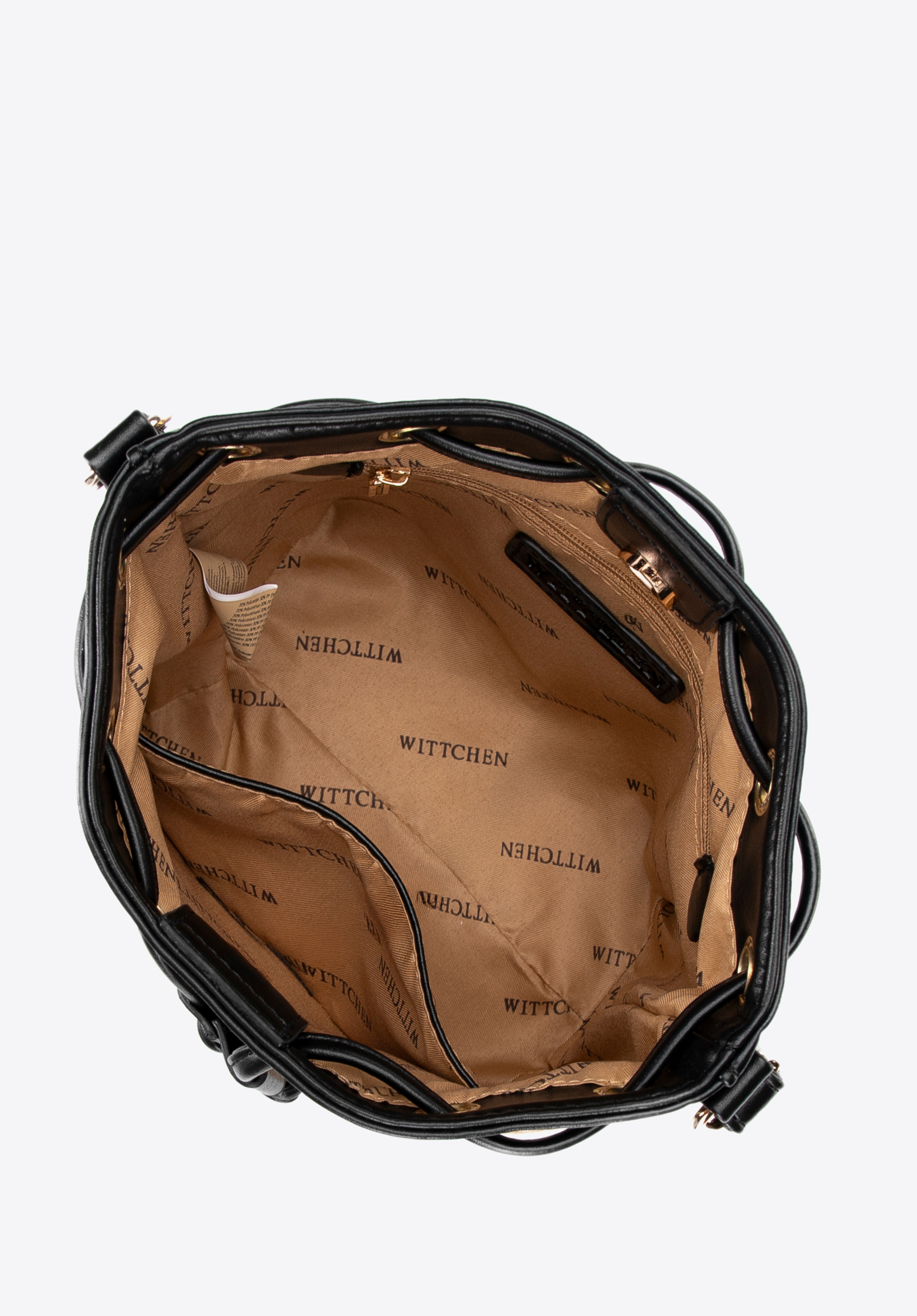 - Kordelzugverschluss: Bietet eine einfache Möglichkeit, die Form der Handtasche anzupassen, sodass Sie zwischen einer klassischen Silhouette und einer entspannteren, legereren Form wechseln können.