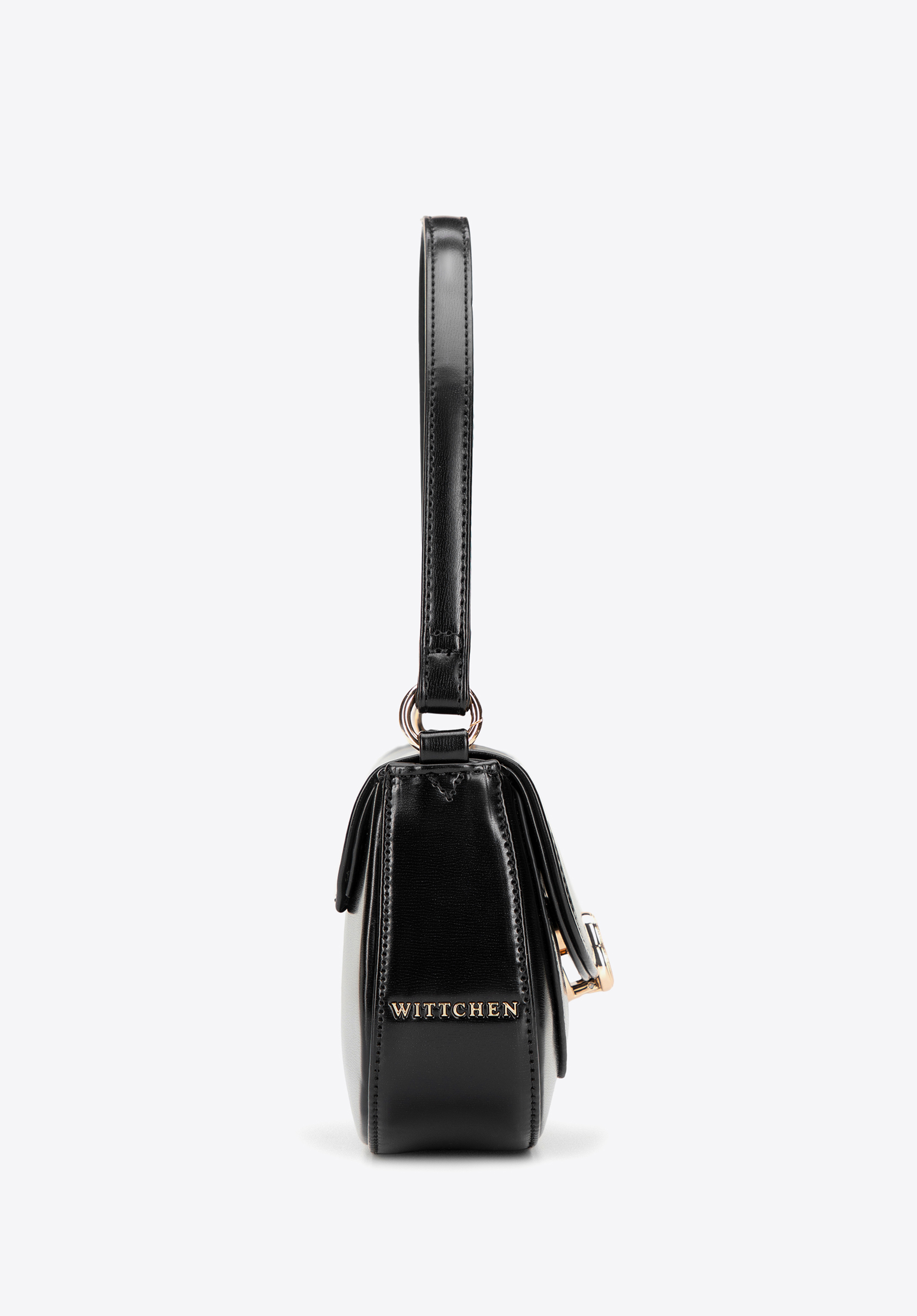 Verleihen Sie Ihrem Outfit einen raffinierten, trendigen Touch mit dieser Mini-Handtasche aus Kunstleder , die feminine Eleganz mit praktischem Design verbindet. Die Klappe mit Magnetverschluss und dekorativer Schnalle unterstreicht das moderne Design der Tasche, und der strukturierte Boden sorgt für Formstabilität und Stabilität, auch voll bepackt. Ein dezentes Markenlogo an der Seite verleiht Eleganz und setzt einen stilvollen Blickfang.