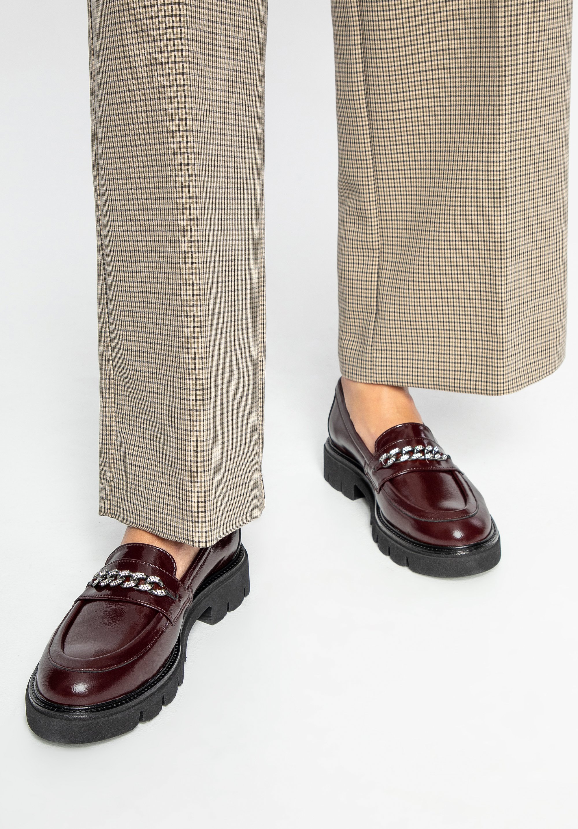 Unser Tipp: Loafer passen wunderbar zu Alltags- und formelleren Outfits. Tragen Sie sie mit klassischen Jeans und einem weißen Hemd und ergänzen Sie sie mit einem eleganten Gürtel und einer Handtasche mit Kettenschulterriemen, um die Details des Schuhs dezent aufzugreifen.