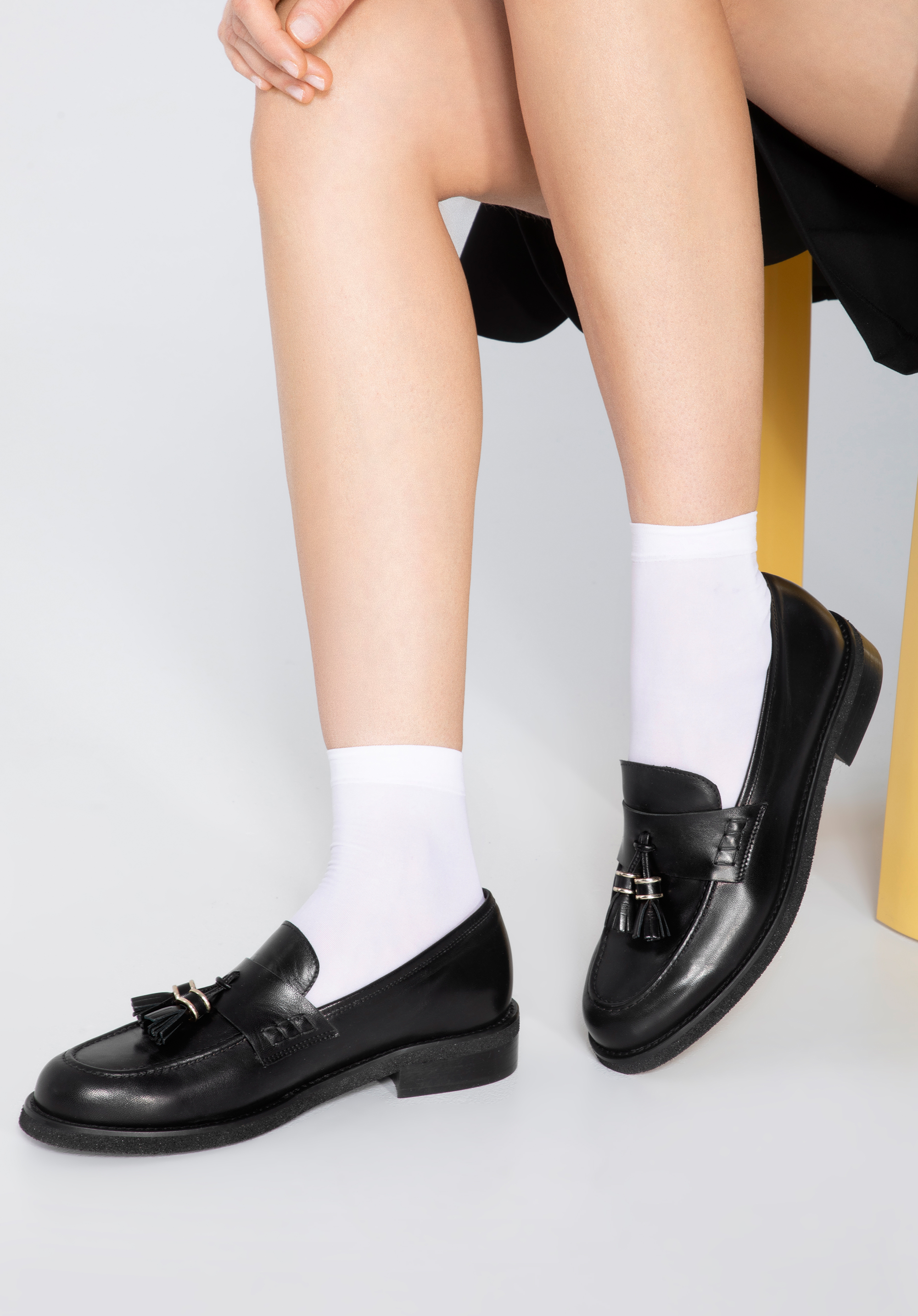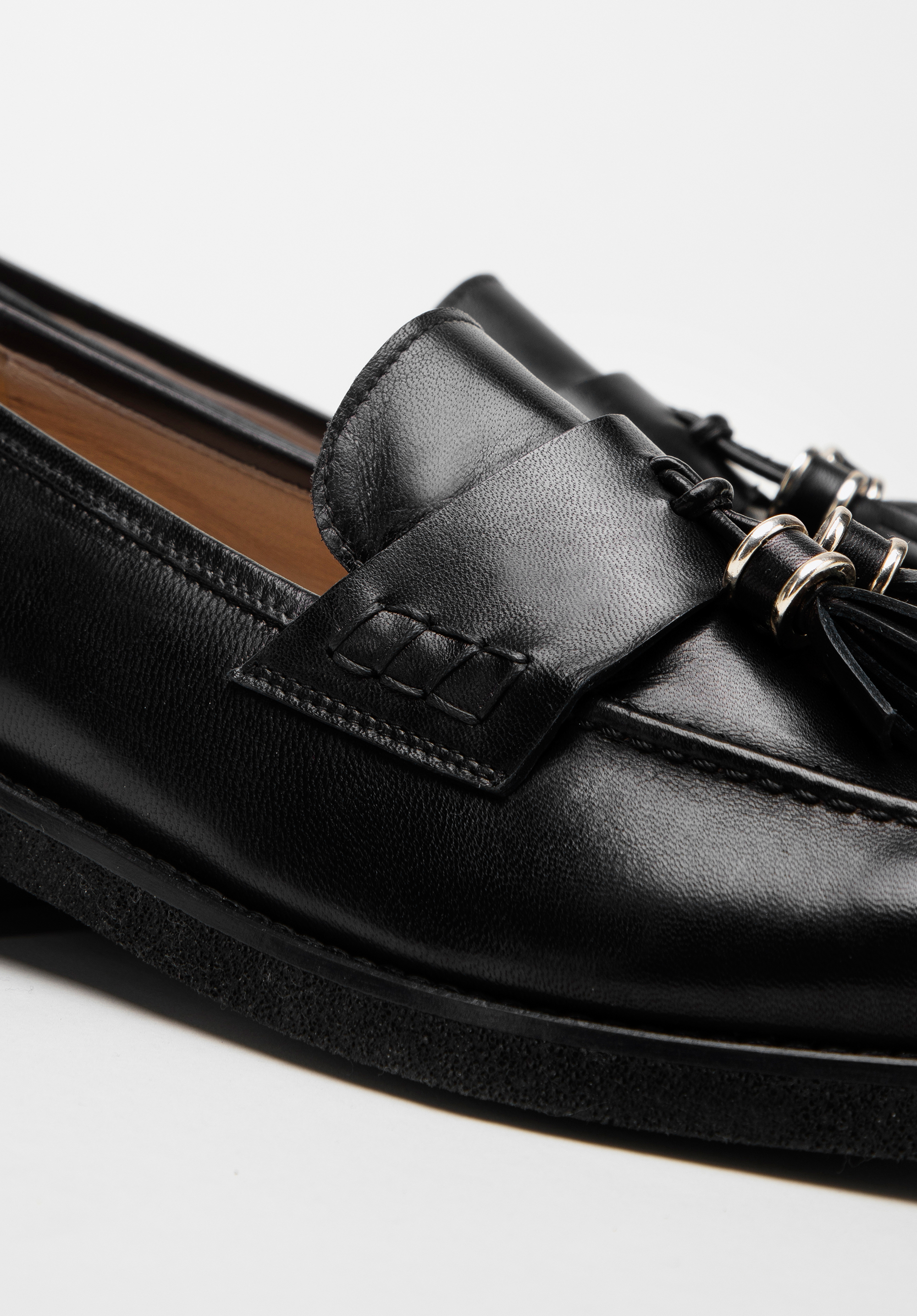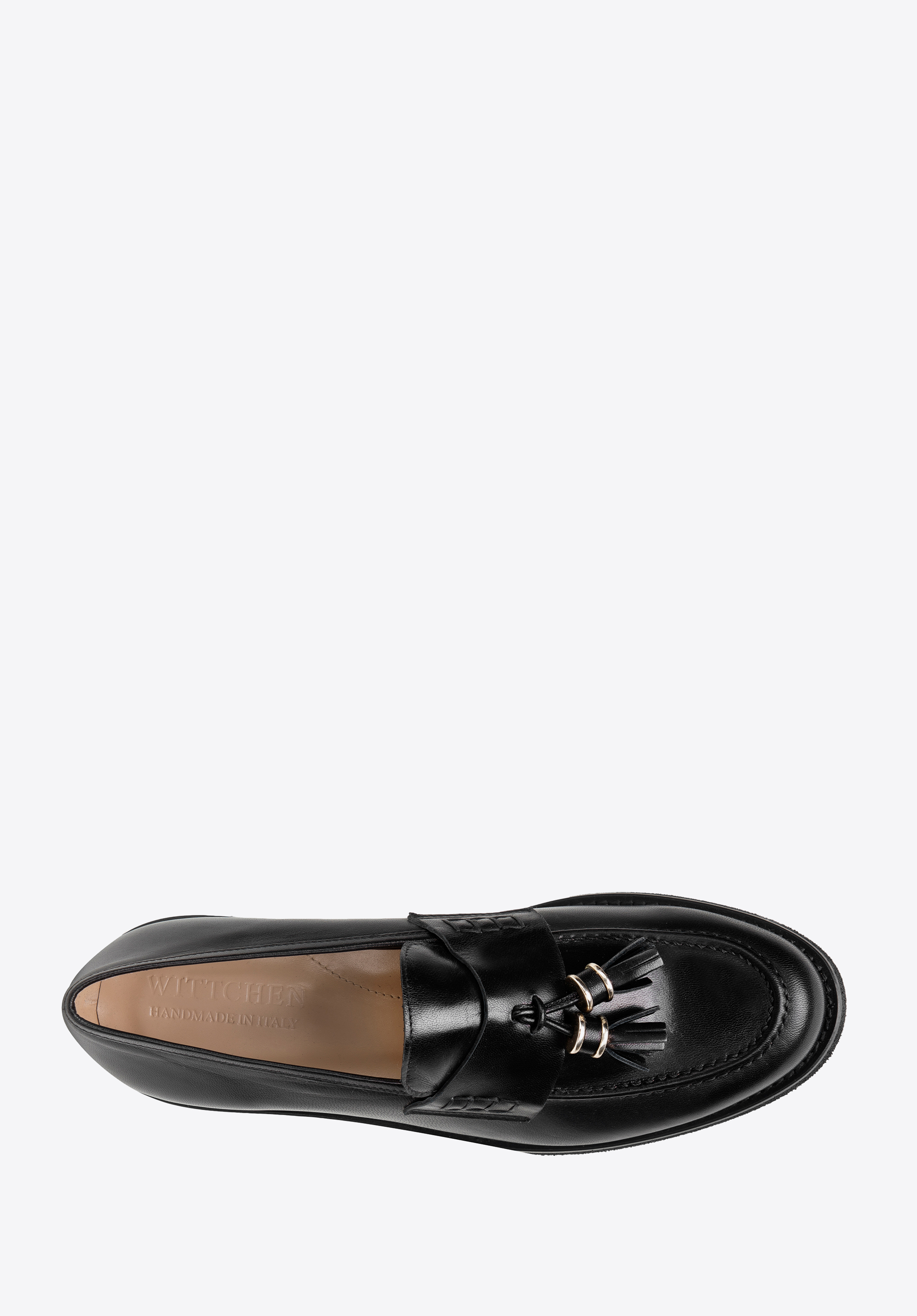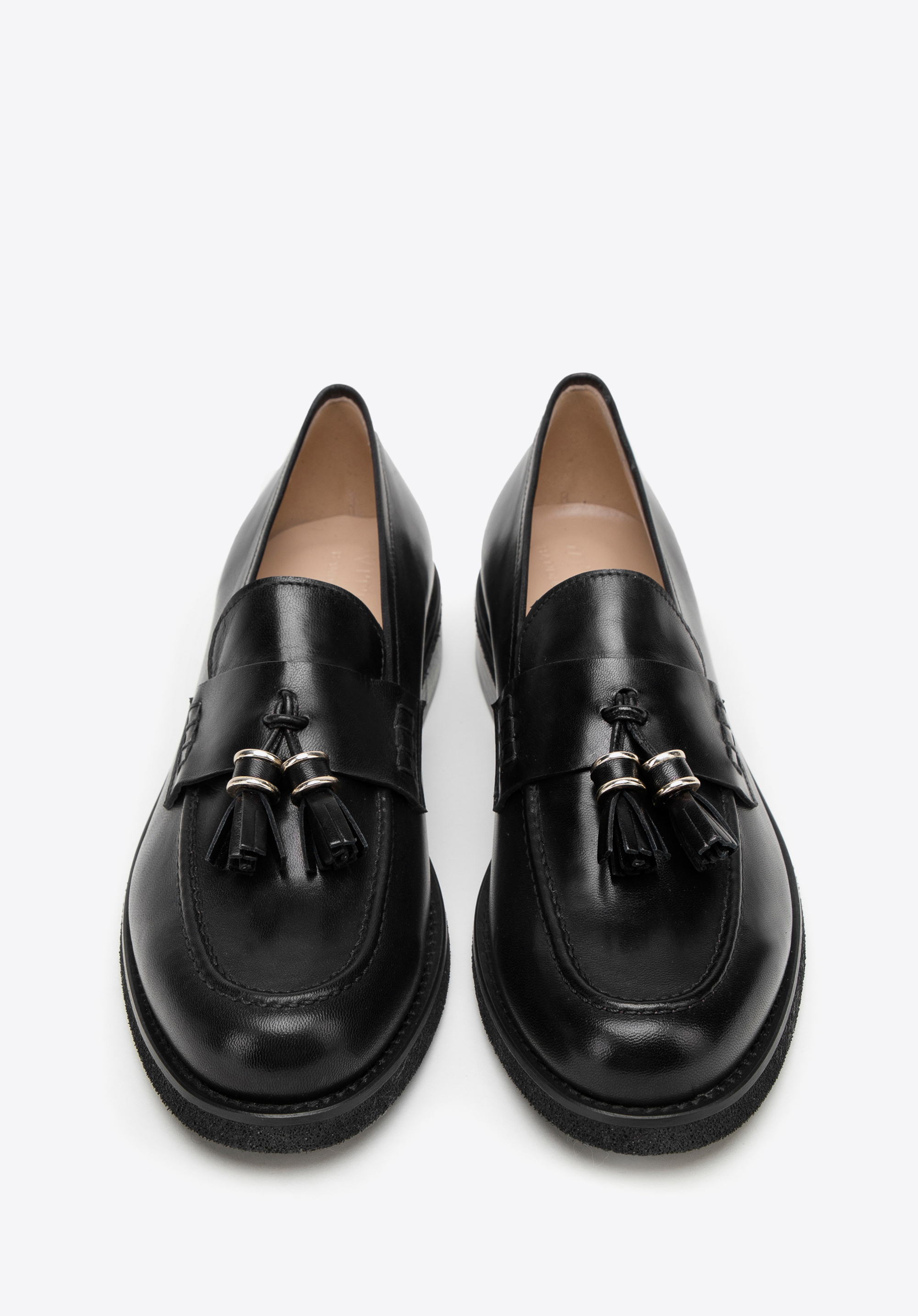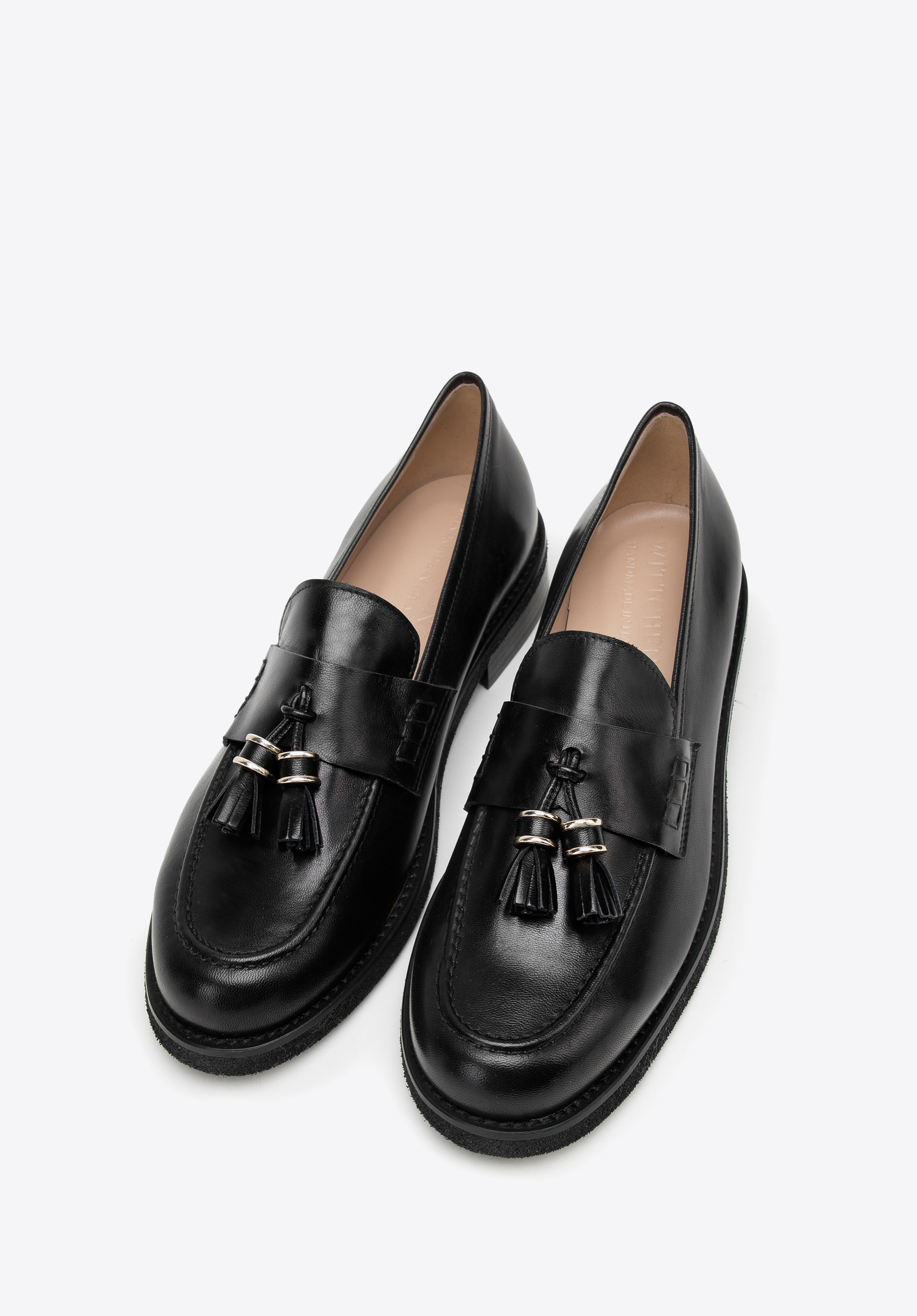 Diese schicken Mokassins bringen einen neuen Stil in Ihre Garderobe. Der klassische Schnitt ist mit zwei kleinen, glänzenden Quasten und dekorativen quadratischen Säumen an den Seiten verziert. Die Schuhe wurden in Italien aus hochwertigem Naturleder gefertigt und sind somit eine Wahl für viele Jahreszeiten. Sie haben die klobige, aber leichte Sohle, so dass Sie stundenlang bequem darin laufen können. Tragen Sie sie zur Arbeit oder nach der Arbeit: Sie passen sowohl zu einem Kleid als auch zu Ihre Jeans und Ihren Pullover. Die Mokassins aus Leder für Damen mit Quasten sind ein Accessoire mit Charakter, das jede stilvolle Frau zu schätzen weiß.
