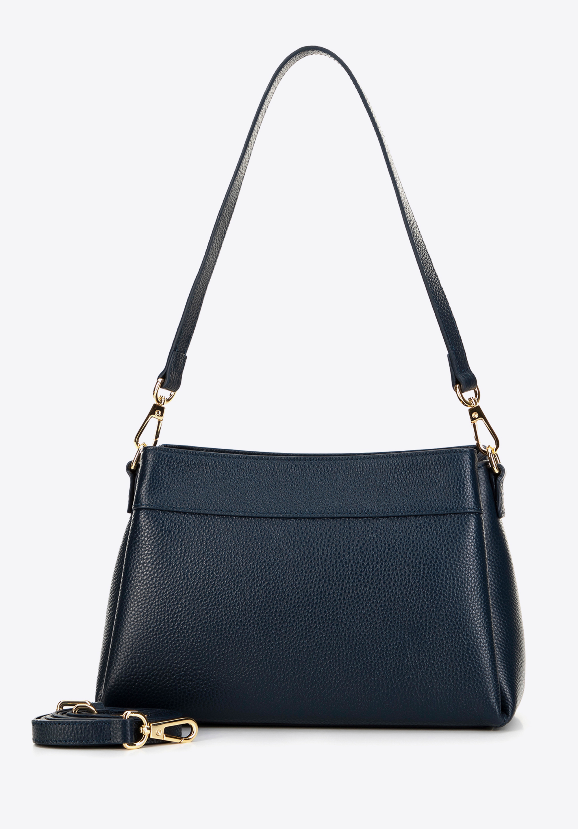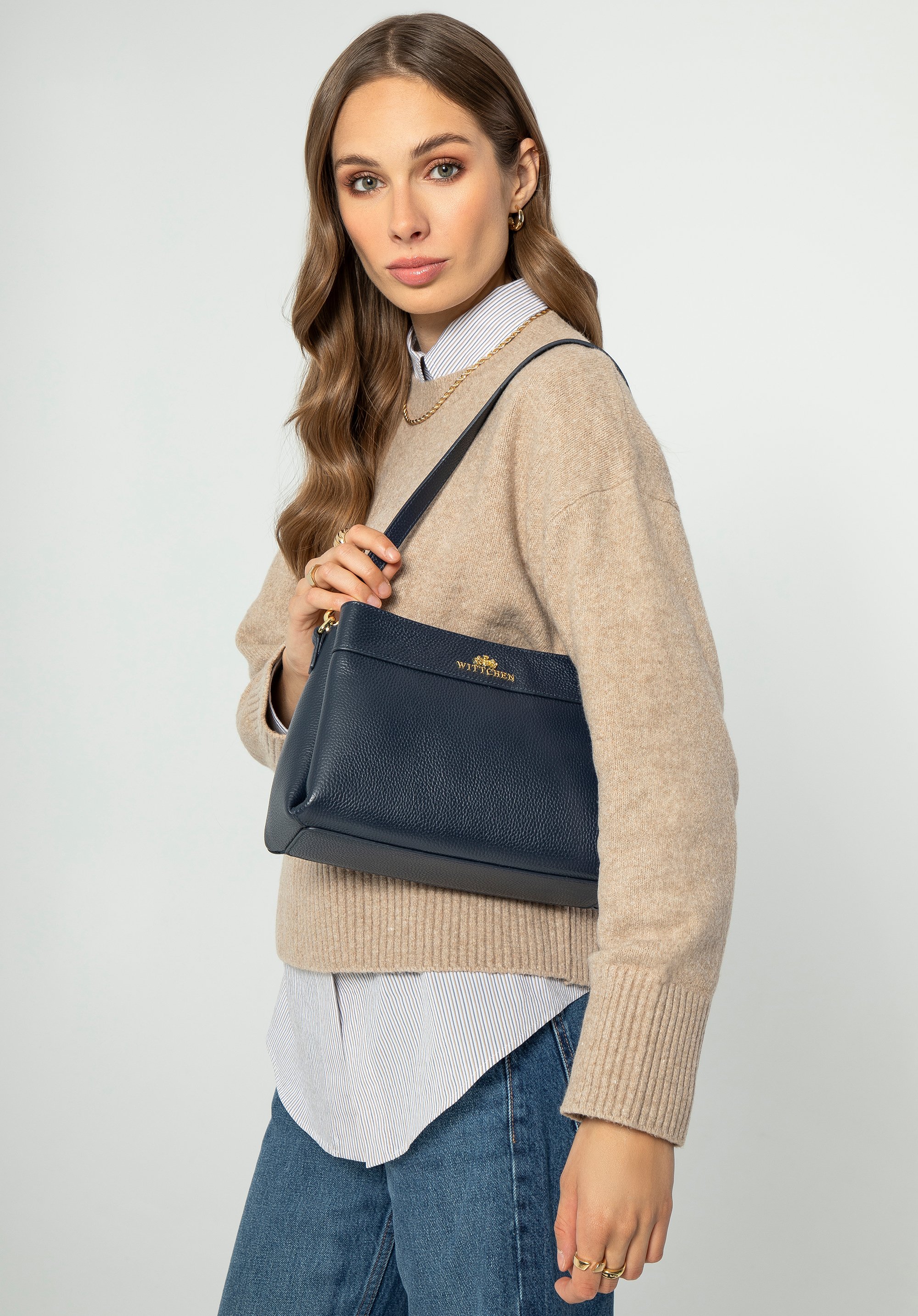 Diese Umhängetasche aus genarbtem Leder vereint Stil und Funktionalität und ist somit die perfekte Handtasche für jeden Tag.
