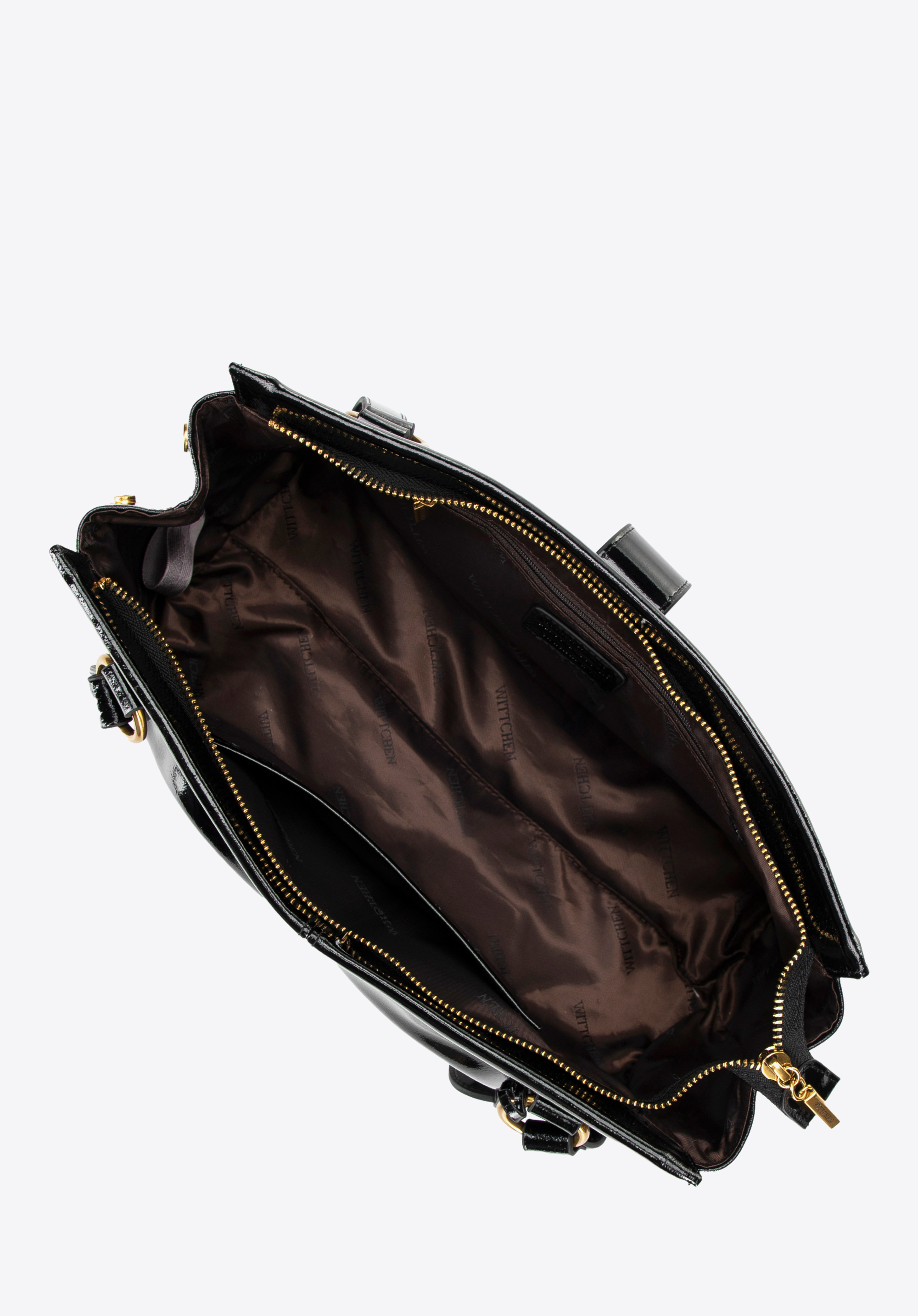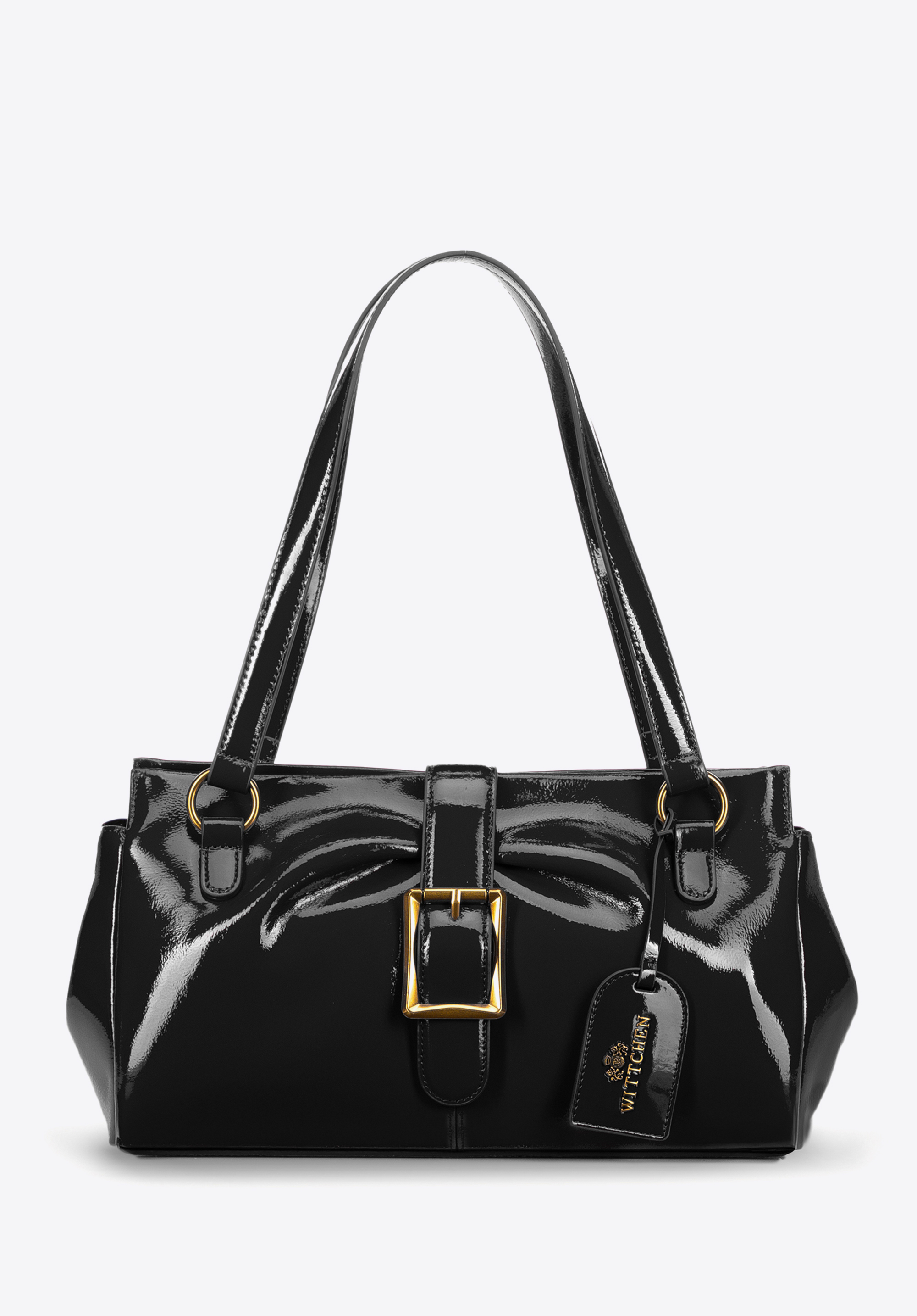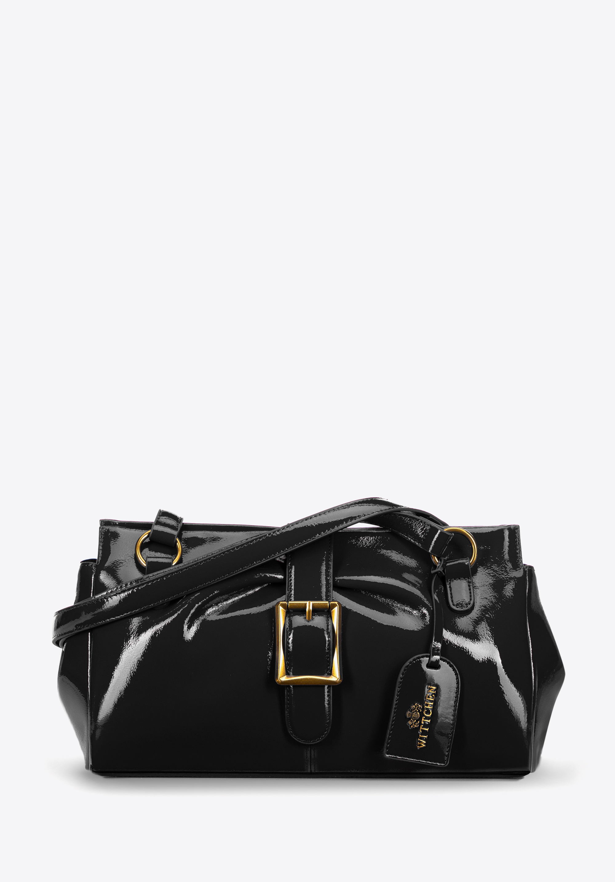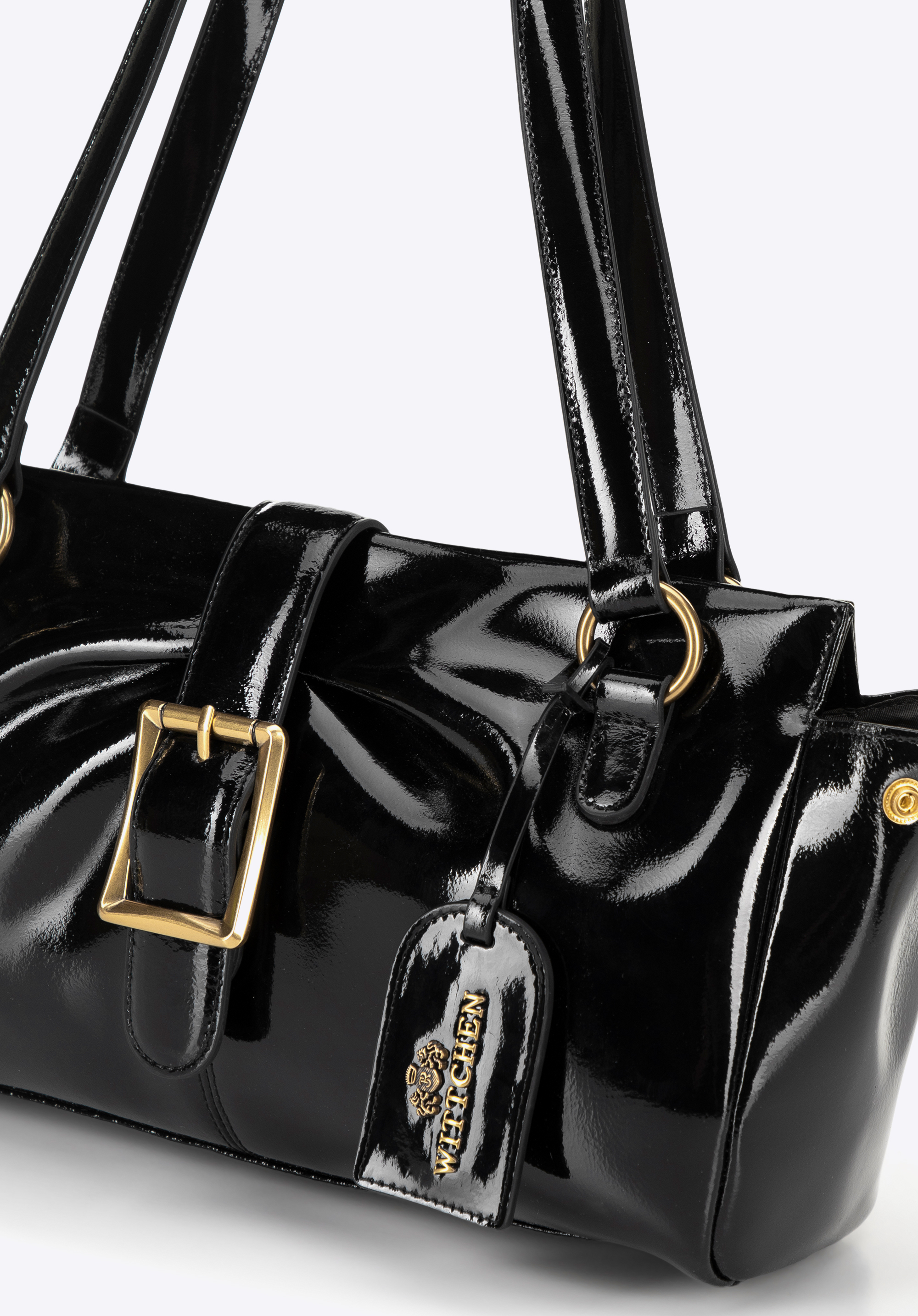Natürliches Lackleder im Teckel-Bag-Stil und dezente Details, die den modernen Charakter perfekt unterstreichen – diese Handtasche vereint Eleganz und Funktionalität! Die zwei komfortablen Henkel aus lederähnlicher Mikrofaser liegen angenehm in der Hand. Mit den seitlichen Druckknöpfen lässt sich Form und Größe individuell anpassen. Der Reißverschluss und der Magnetverschluss schließen die Tasche sicher, und die abnehmbare Quaste mit Logo setzt einen stilvollen Akzent.