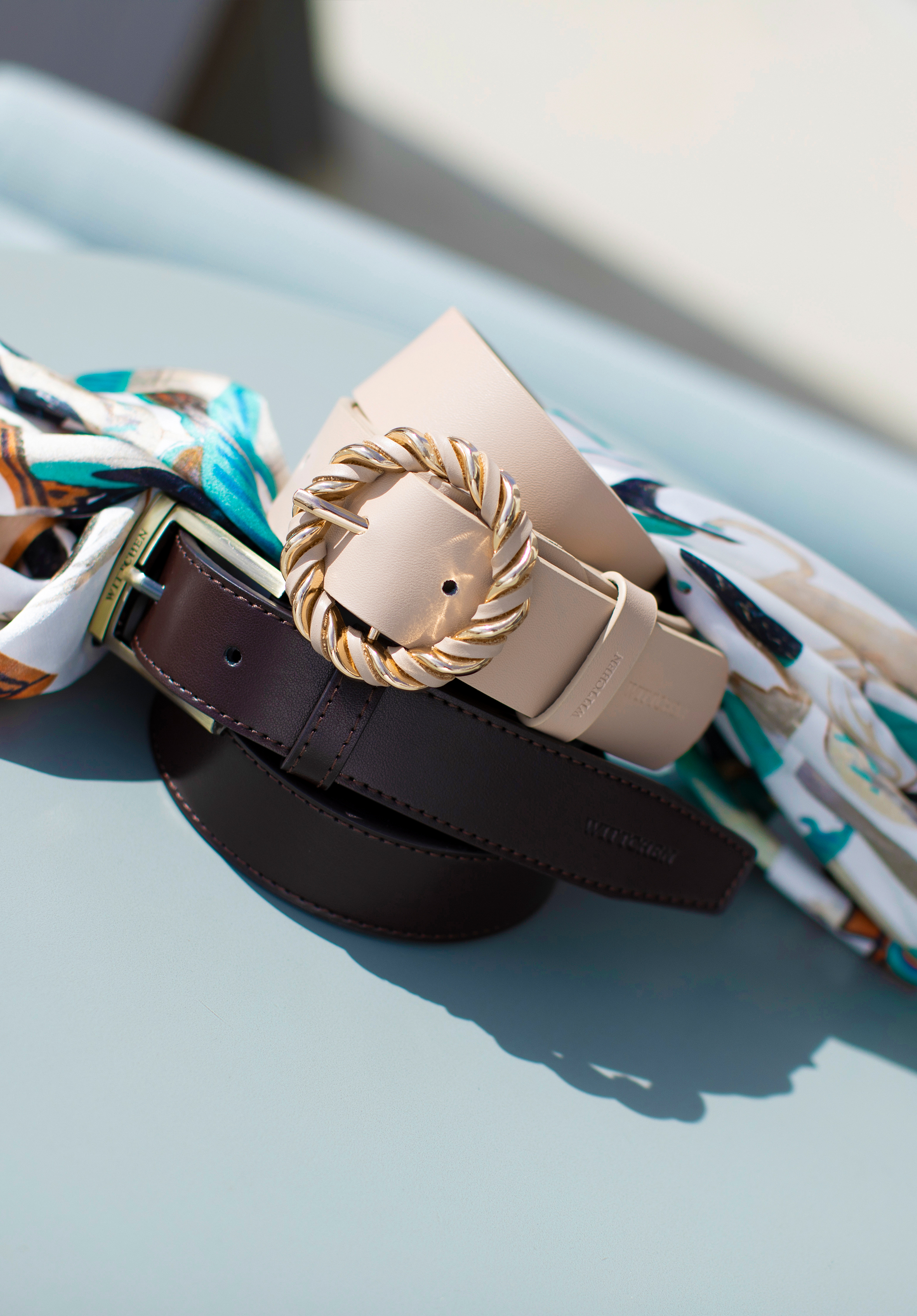 Ein origineller Ledergürtel ist in der Garderobe jeder Frau unverzichtbar. Dieses Modell wird durch eine runde Schnalle mit Schlüsselband vervollständigt, die dem Ganzen einen Boho-Charakter verleiht. Er passt hervorragend zu einem übergroßen Pullover oder zu Ihrer Lieblingsjeans und einem schlichten Hemd. Wenn Sie auffällige Accessoires mögen, ist dieser Damen Ledergürtel mit runder geflochtener Schnalle eine gute Wahl für jeden Tag.