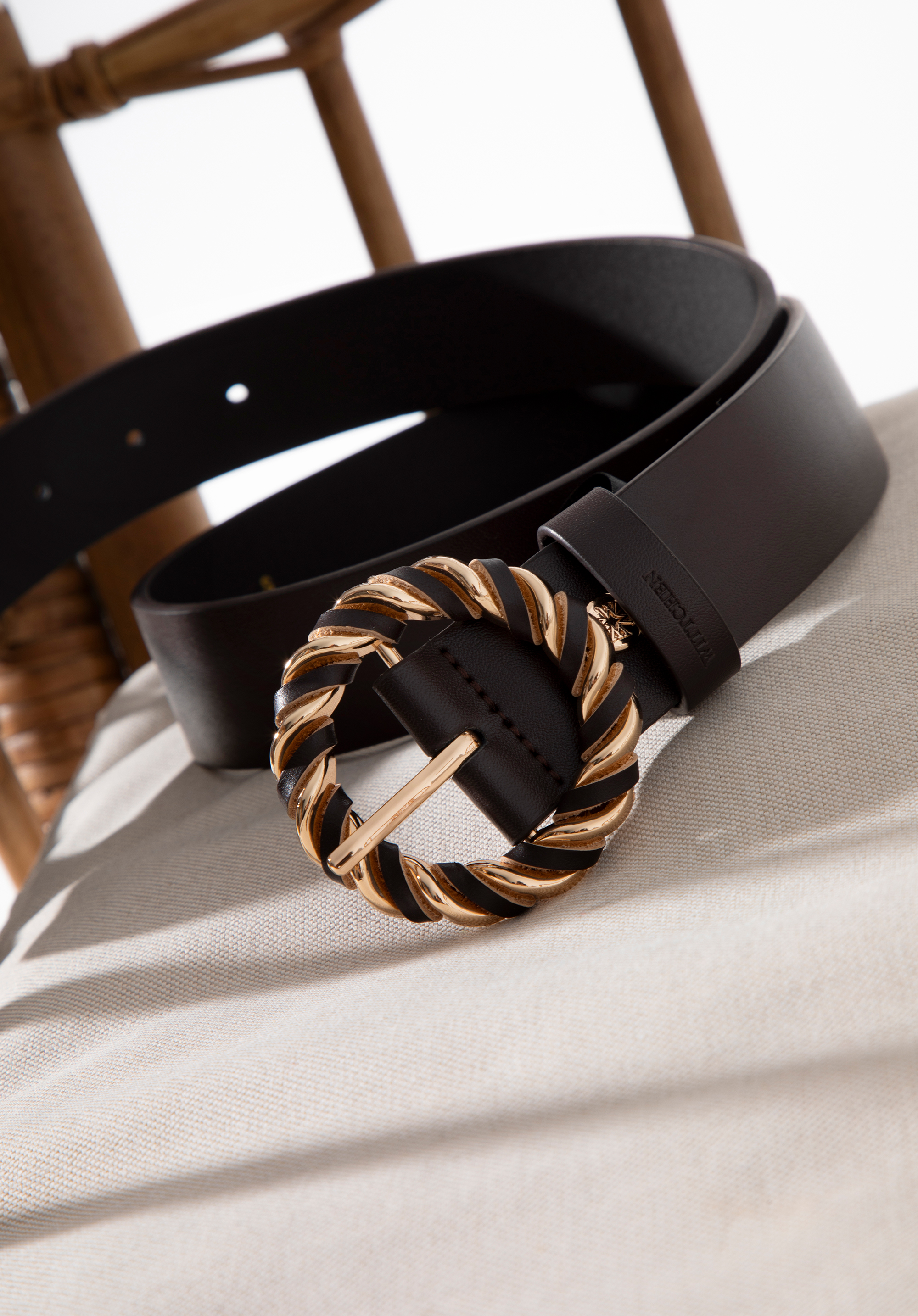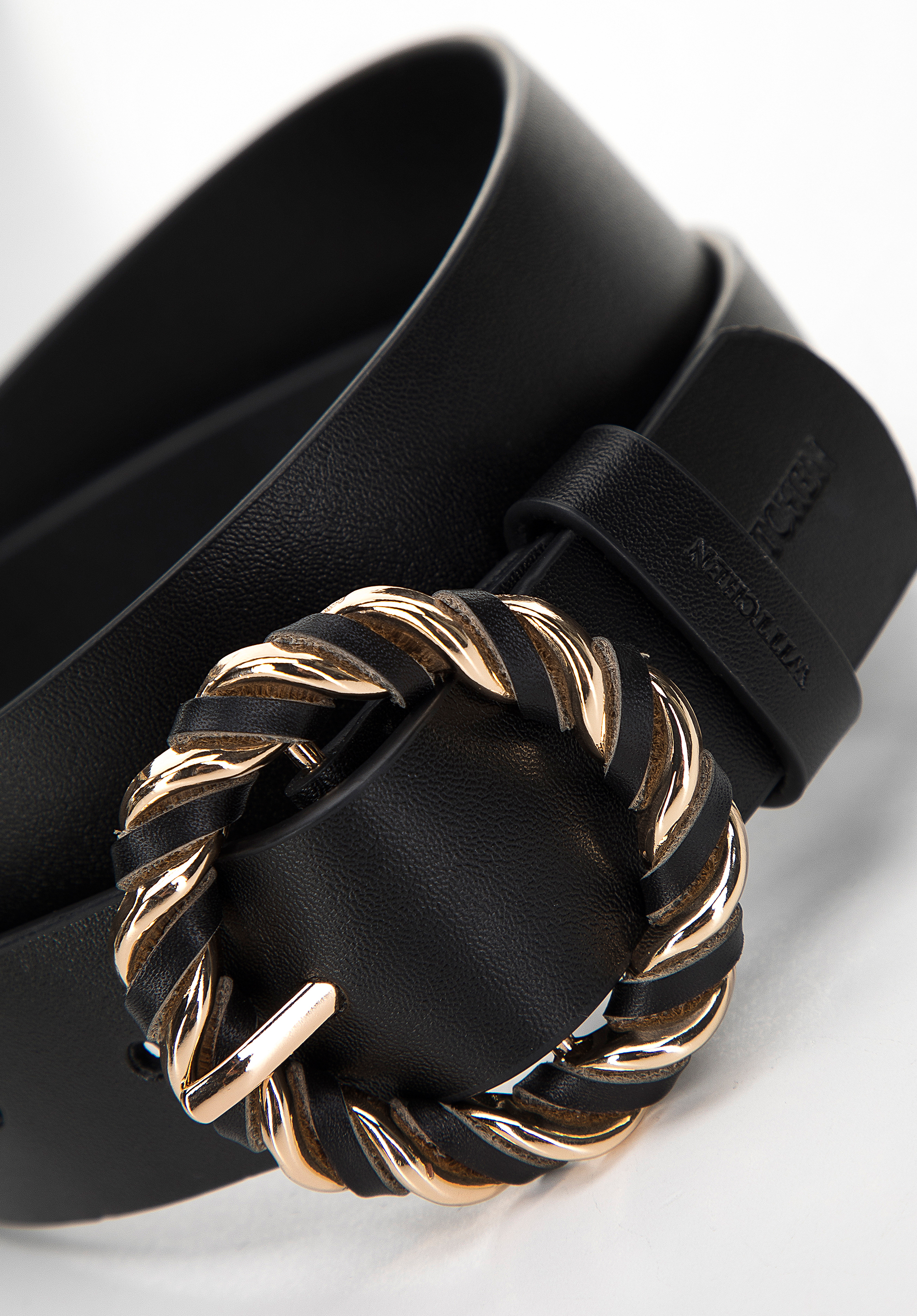 Ein origineller Ledergürtel ist in der Garderobe jeder Frau unverzichtbar. Dieses Modell wird durch eine runde Schnalle mit Schlüsselband vervollständigt, die dem Ganzen einen Boho-Charakter verleiht. Er passt hervorragend zu einem übergroßen Pullover oder zu Ihrer Lieblingsjeans und einem schlichten Hemd. Wenn Sie auffällige Accessoires mögen, ist dieser Damen Ledergürtel mit runder geflochtener Schnalle eine gute Wahl für jeden Tag.