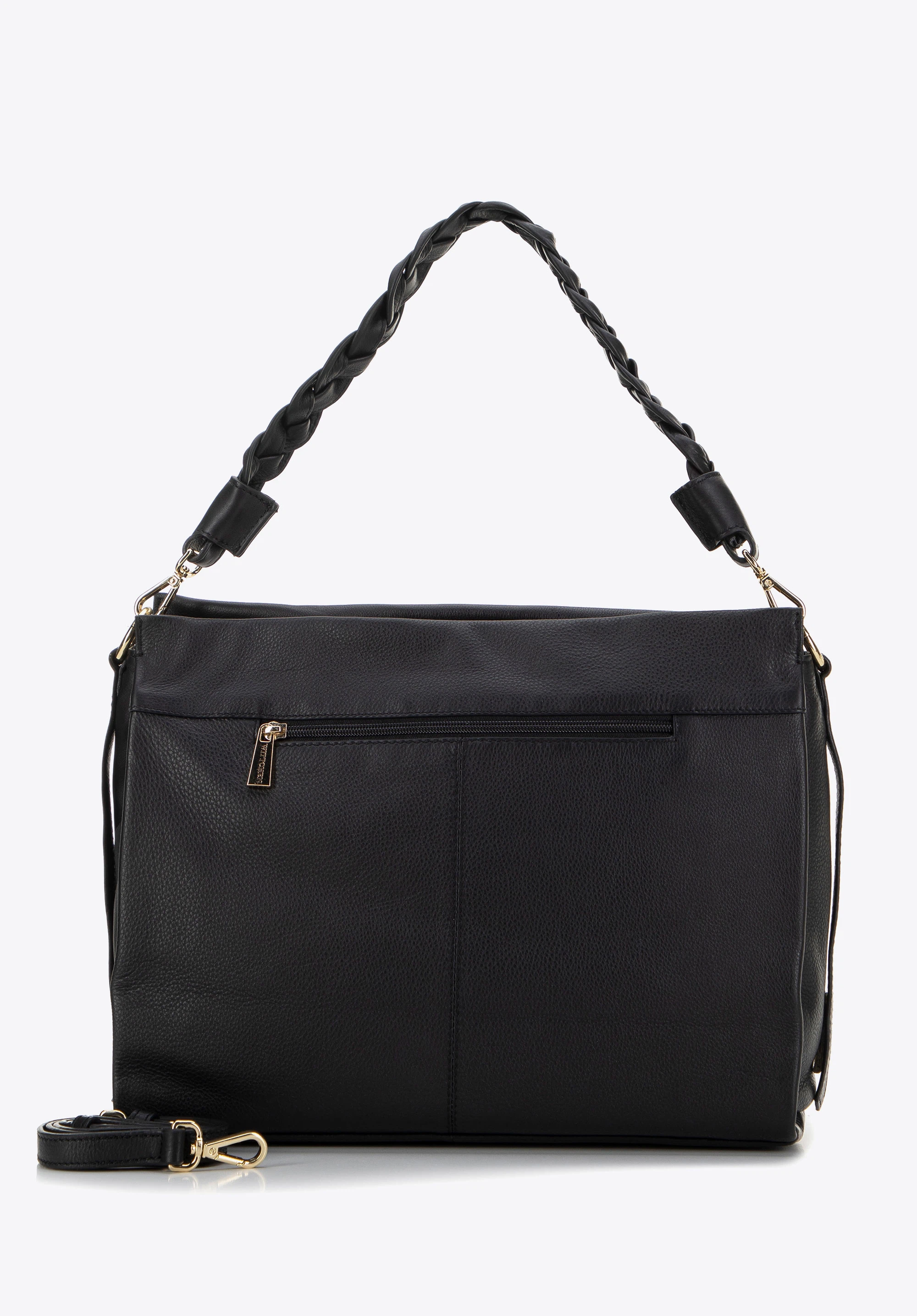 Diese stilvolle Hobo-Tasche aus Naturleder ist die perfekte Wahl für Frauen, die Eleganz und Funktionalität schätzen. Das Hauptfach mit Reißverschluss sorgt für die Sicherheit Ihrer Sachen, während der Innenraum, der in drei gut organisierte Abschnitte (zwei mit Magnetverschluss) unterteilt ist, ein zusätzliches Reißverschlussfach und zwei offene Fächer bietet. Eine Tasche auf der Rückseite bietet einen praktischen und sicheren Platz zum Aufbewahren Ihrer wichtigsten Gegenstände.