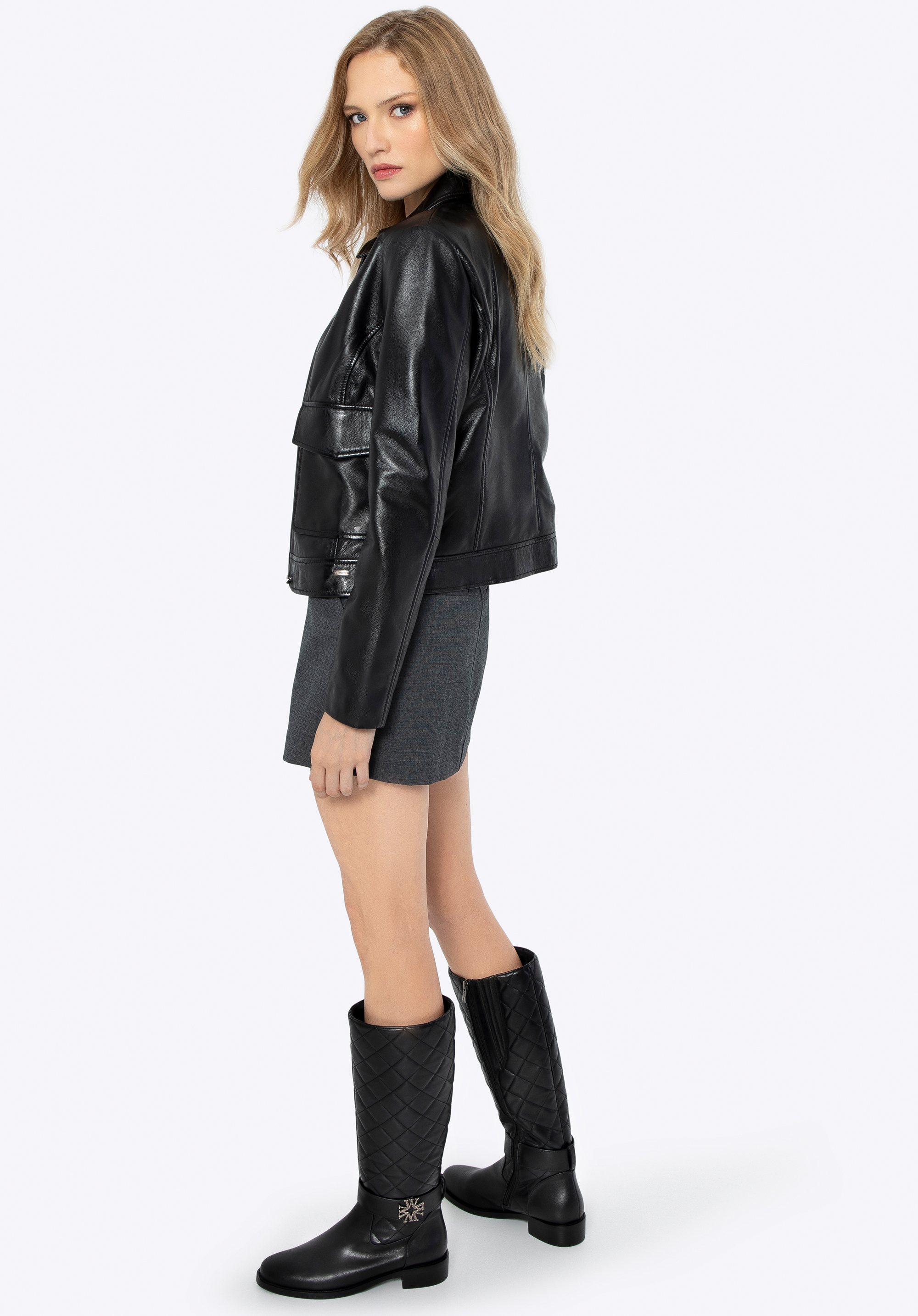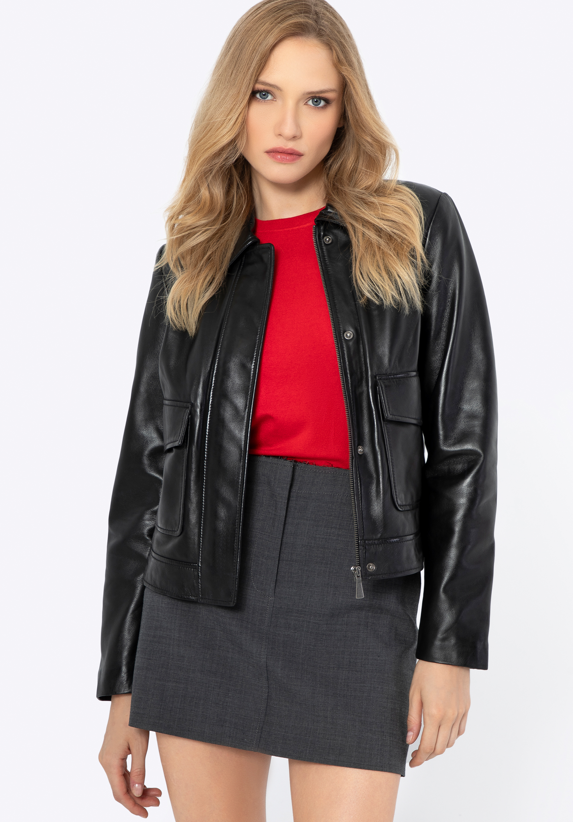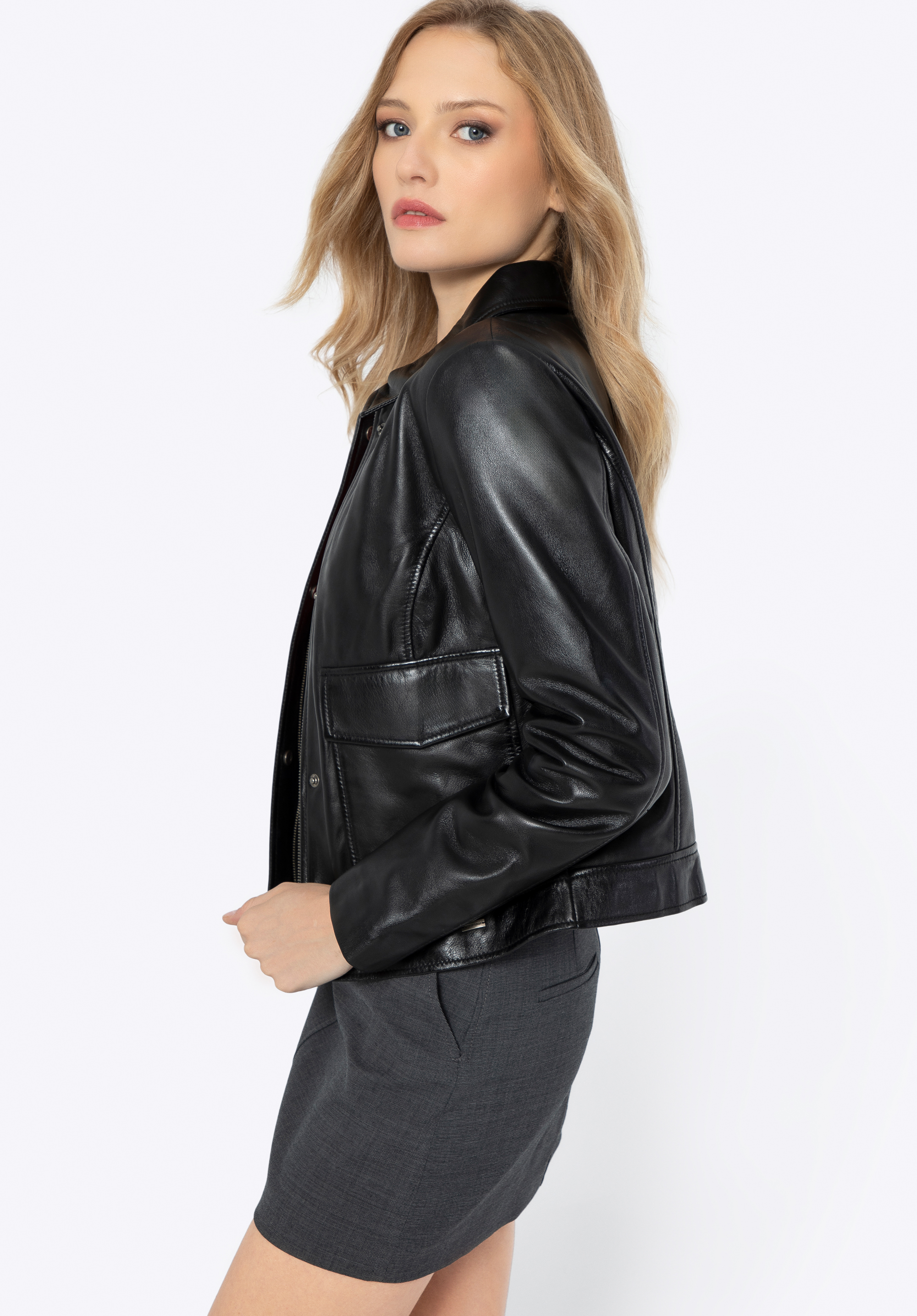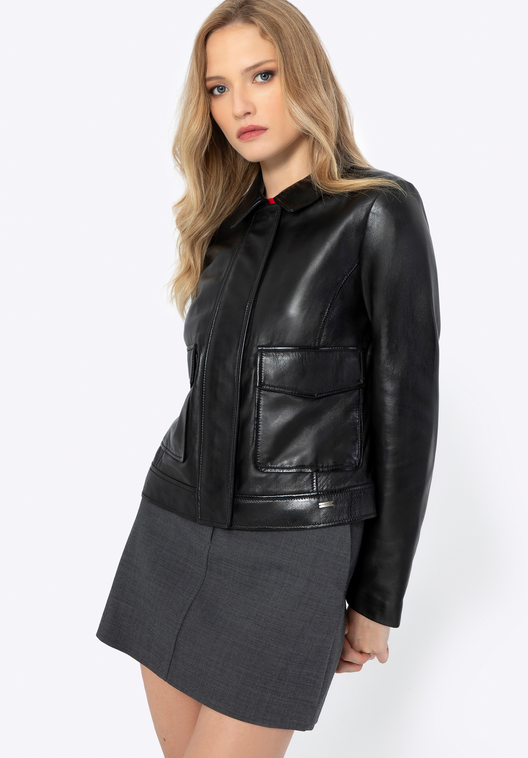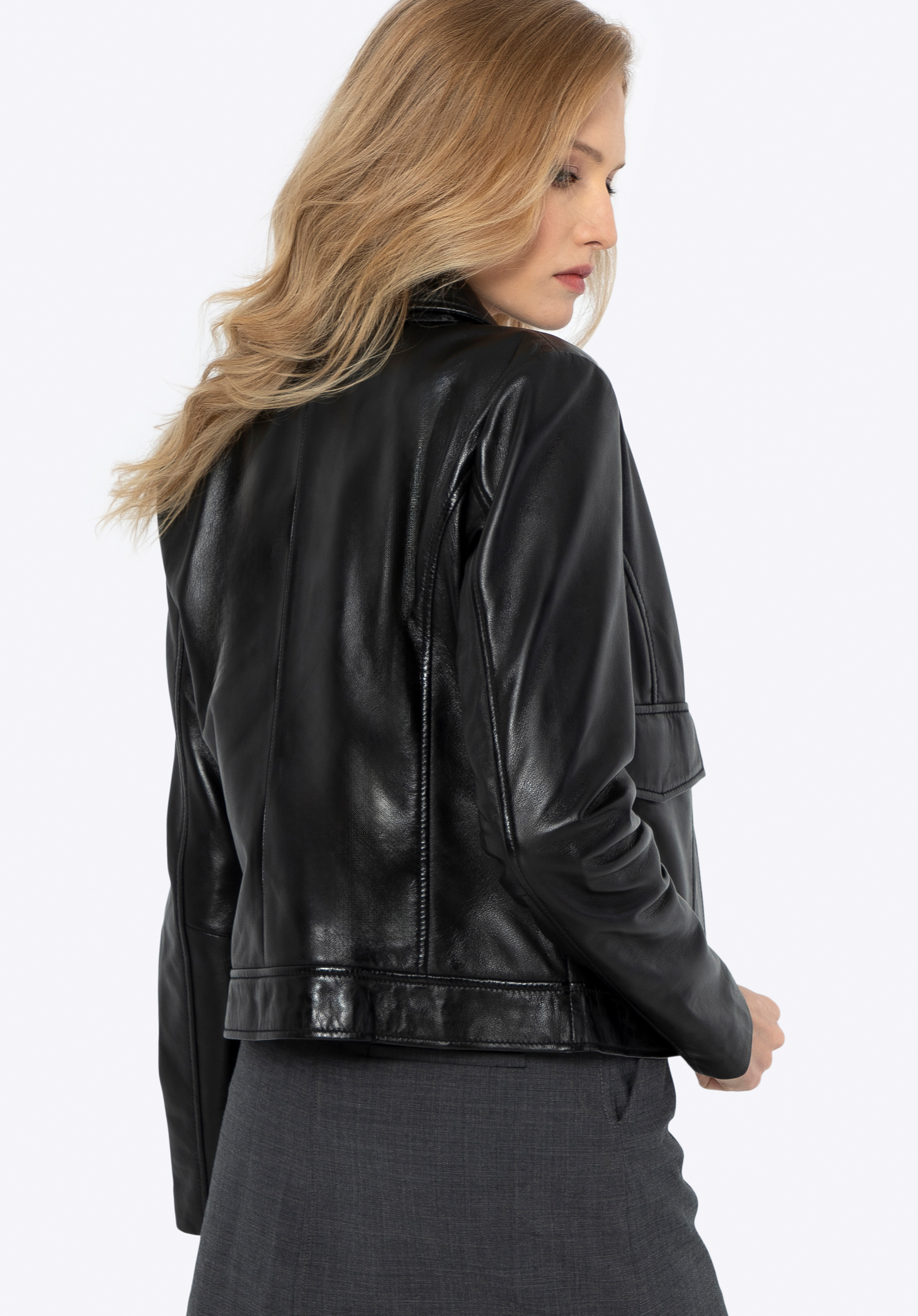 Damen Lederjacke mit rechteckigen Taschen