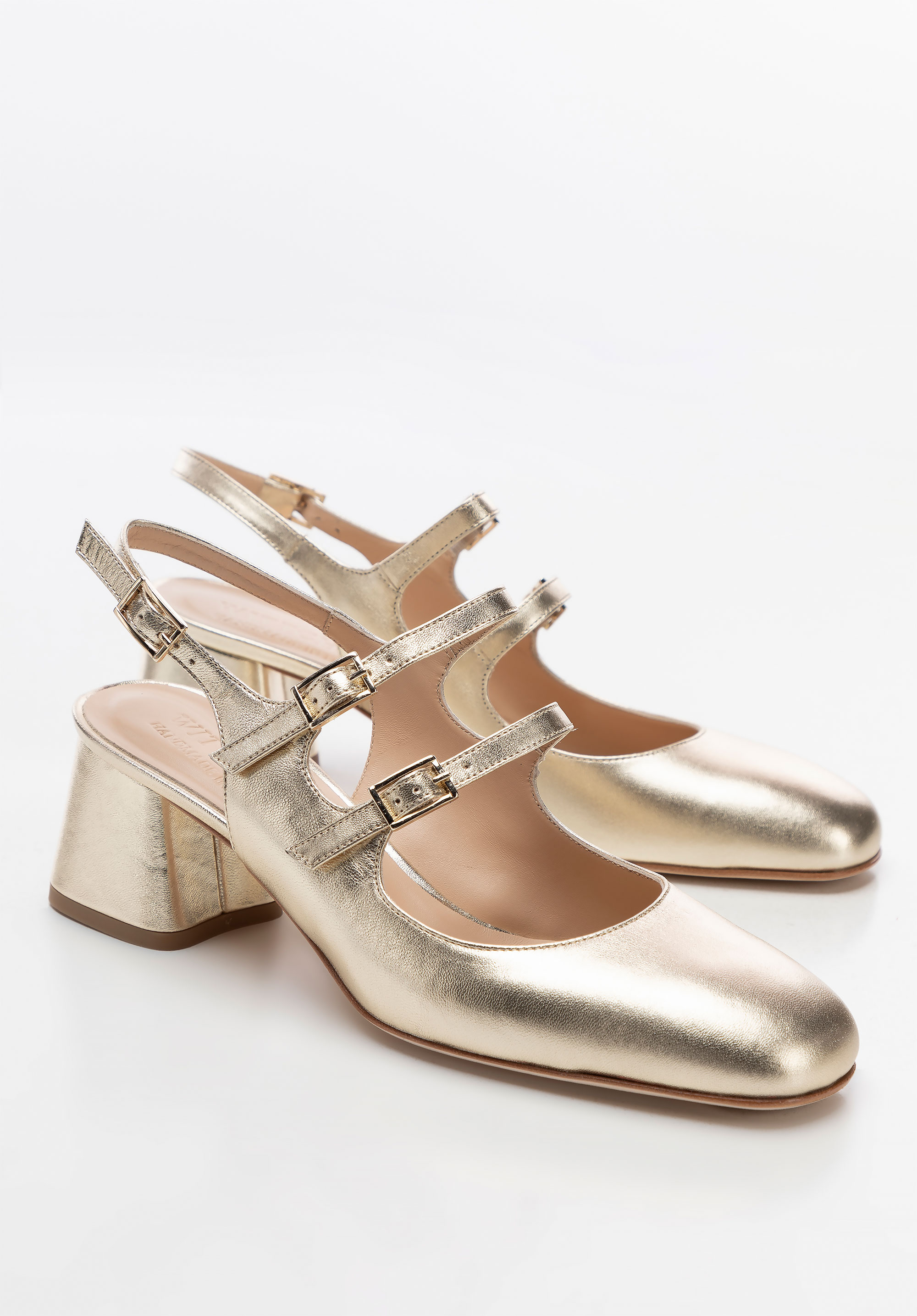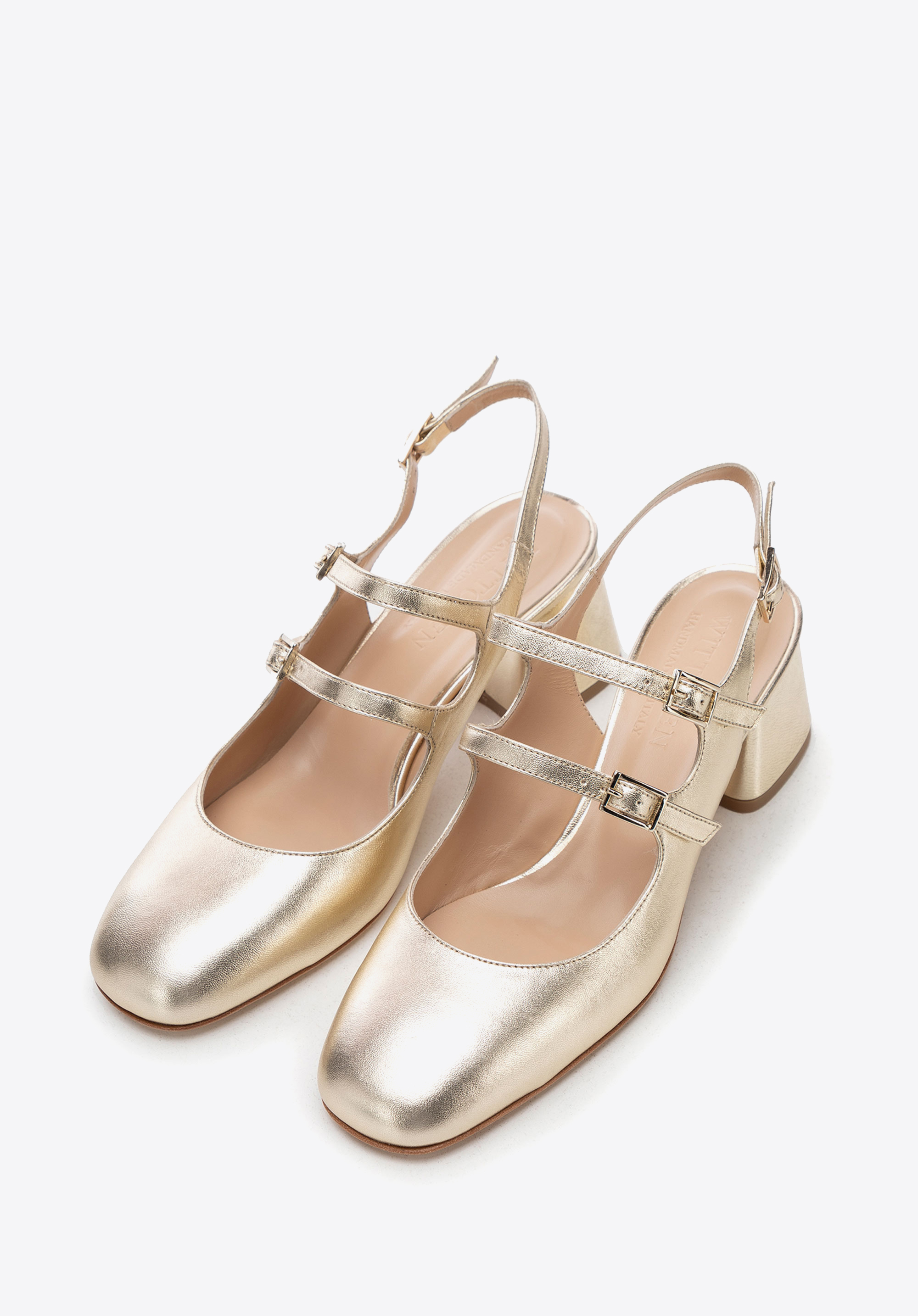 Damen Lederpumps mit Riemen gold