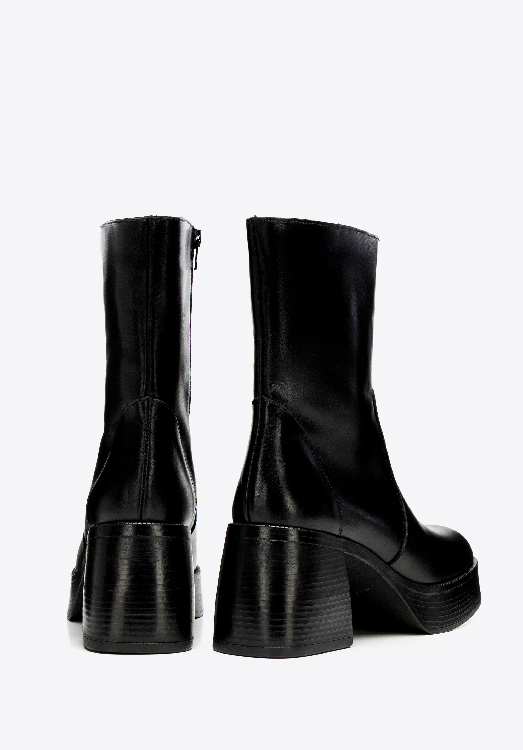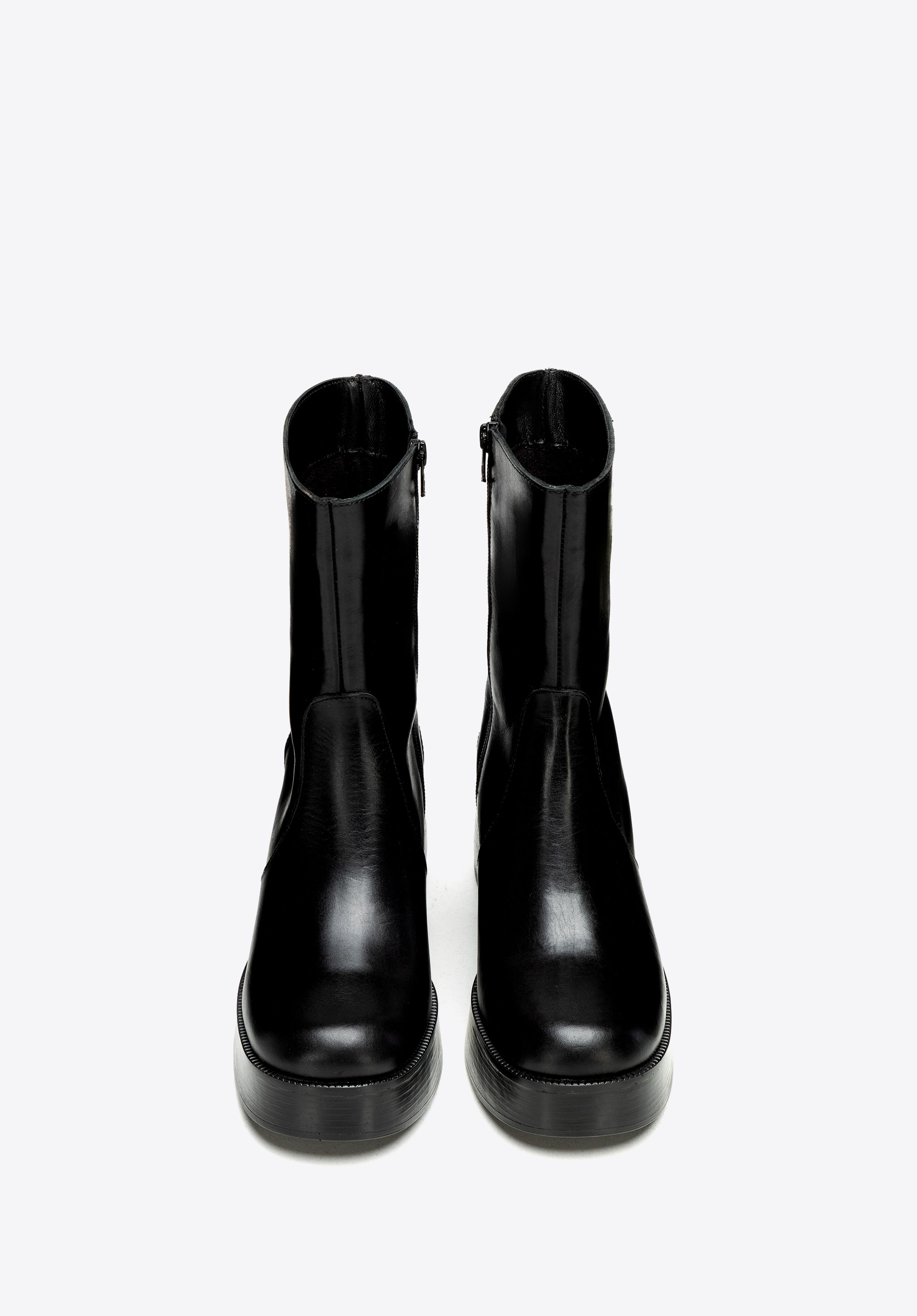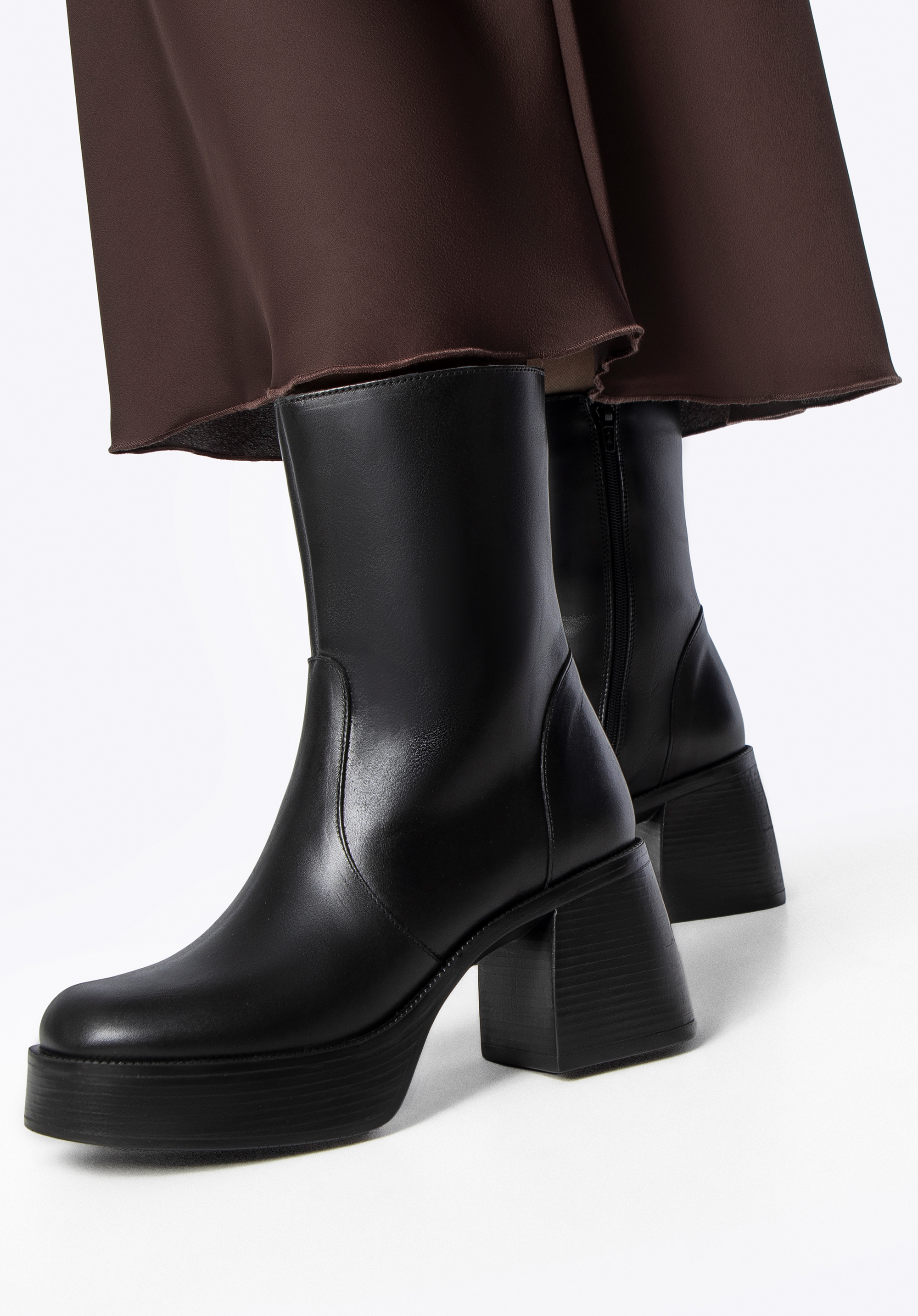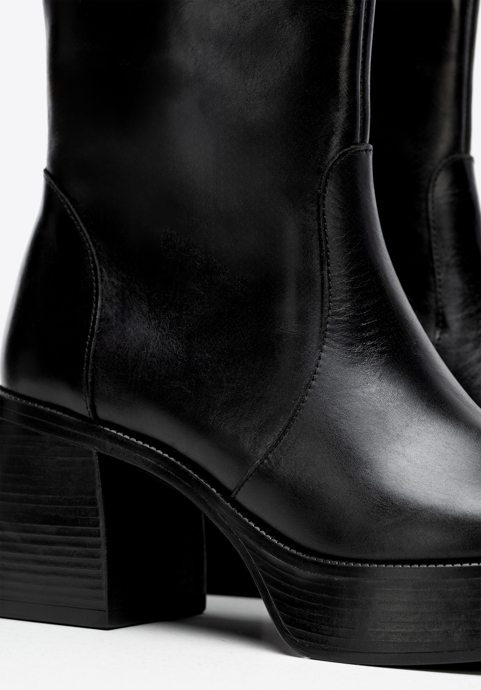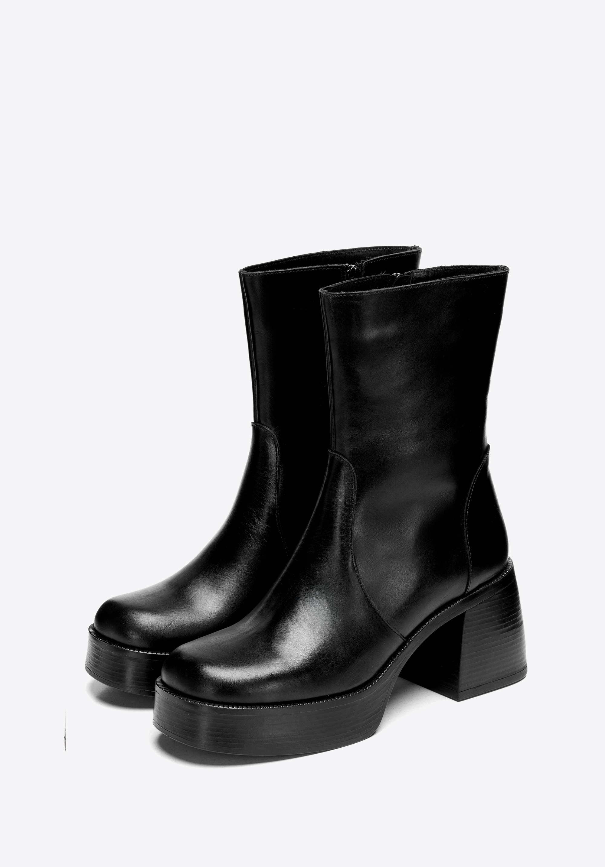 Wenn Sie Stiefel suchen, die Ihren Look nicht nur perfekt abrunden, sind diese genau das Richtige. Gefertigt aus geschmeidigem Naturleder, schmiegt sich der hohe Schaft eng an das Bein und sorgt für eine schlanke, selbstbewusste Silhouette. Das klobige Plateau und der robuste Blockabsatz heben Ihre Haltung dezent hervor und verleihen Ihnen mit jedem Schritt mehr Stil und Selbstbewusstsein. Ein verdeckter seitlicher Reißverschluss sorgt für müheloses Tragen, während das weiche Futter Ihren Fuß bequem umschließt. Diese Stiefel brauchen keine große Einführung – einfach reinschlüpfen und ein Statement setzen.